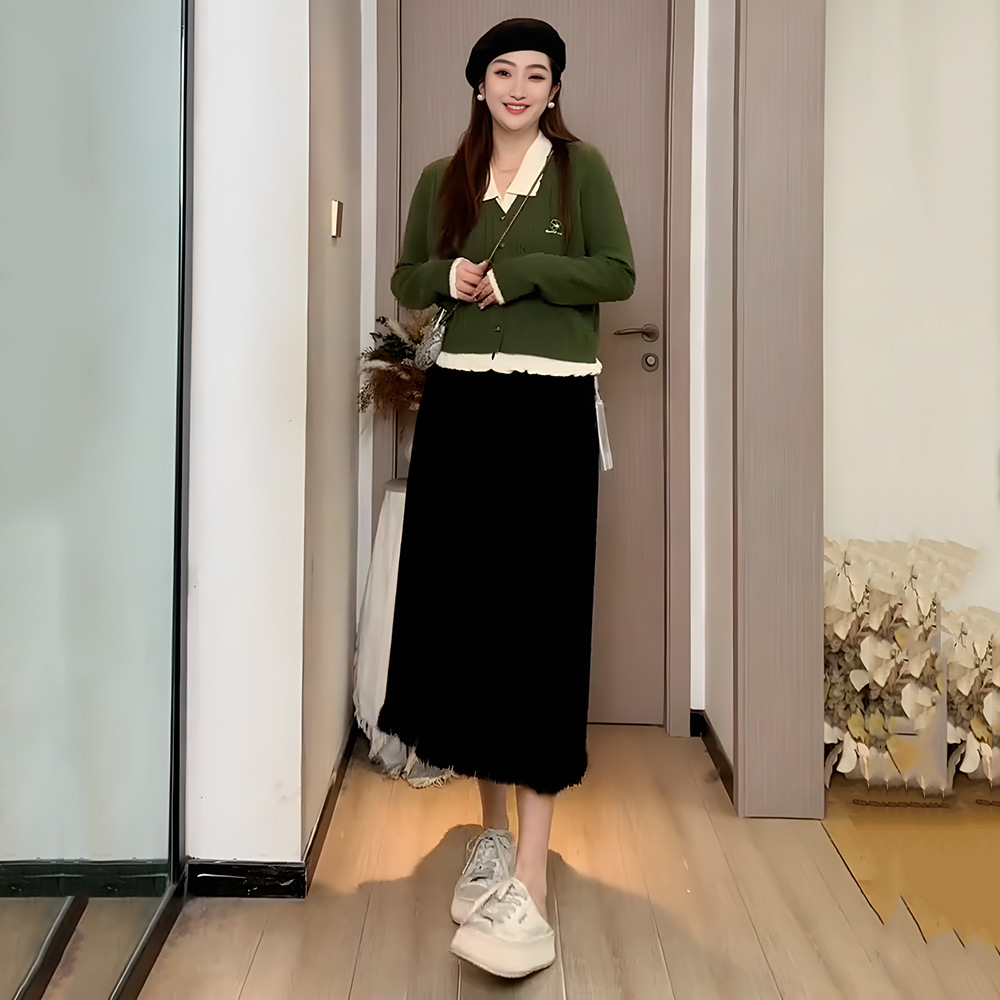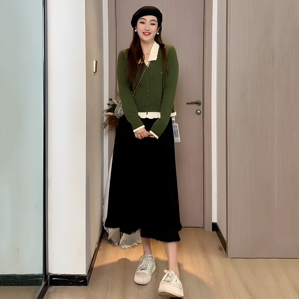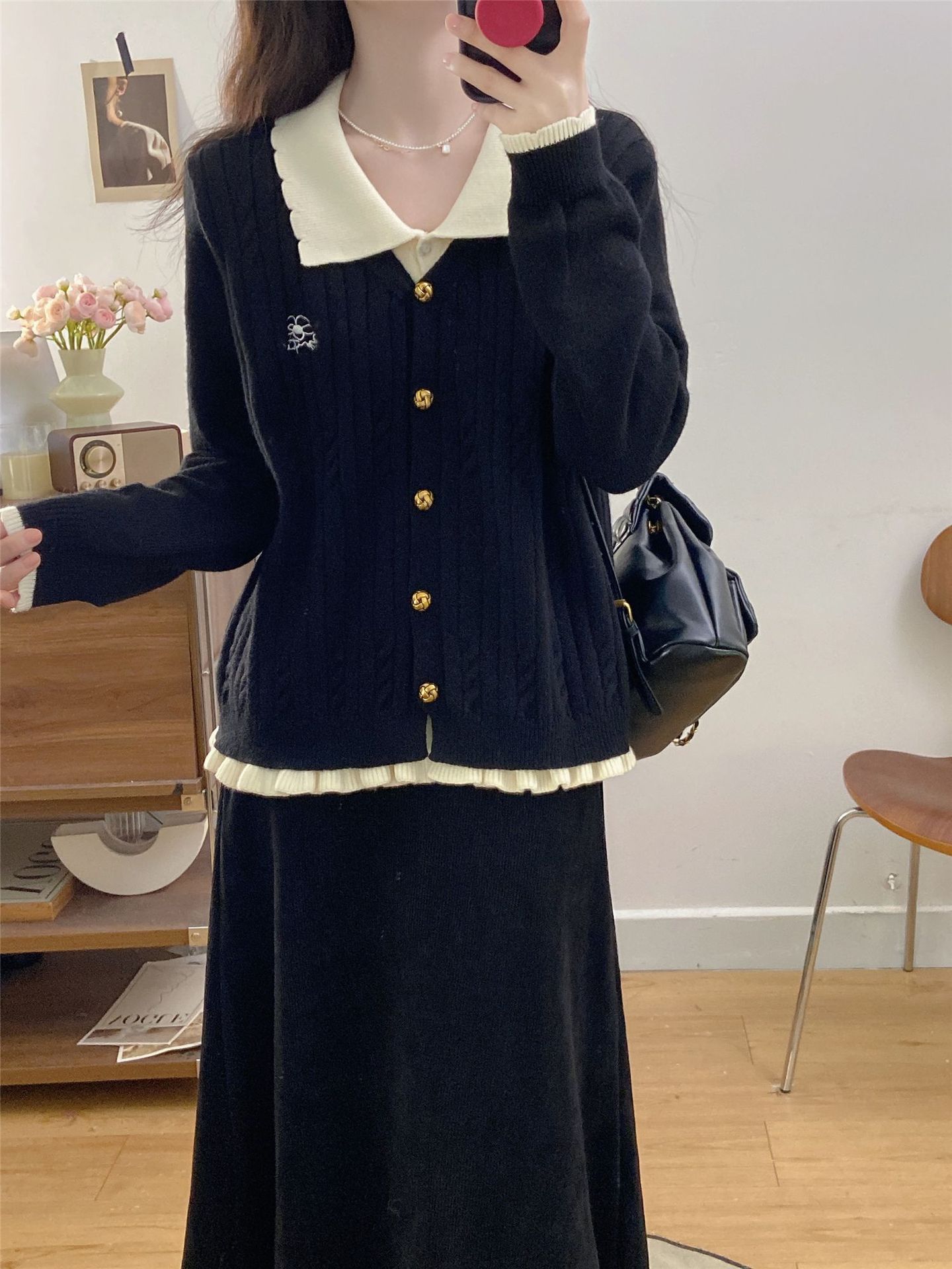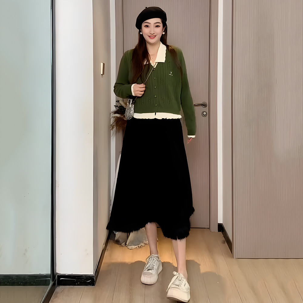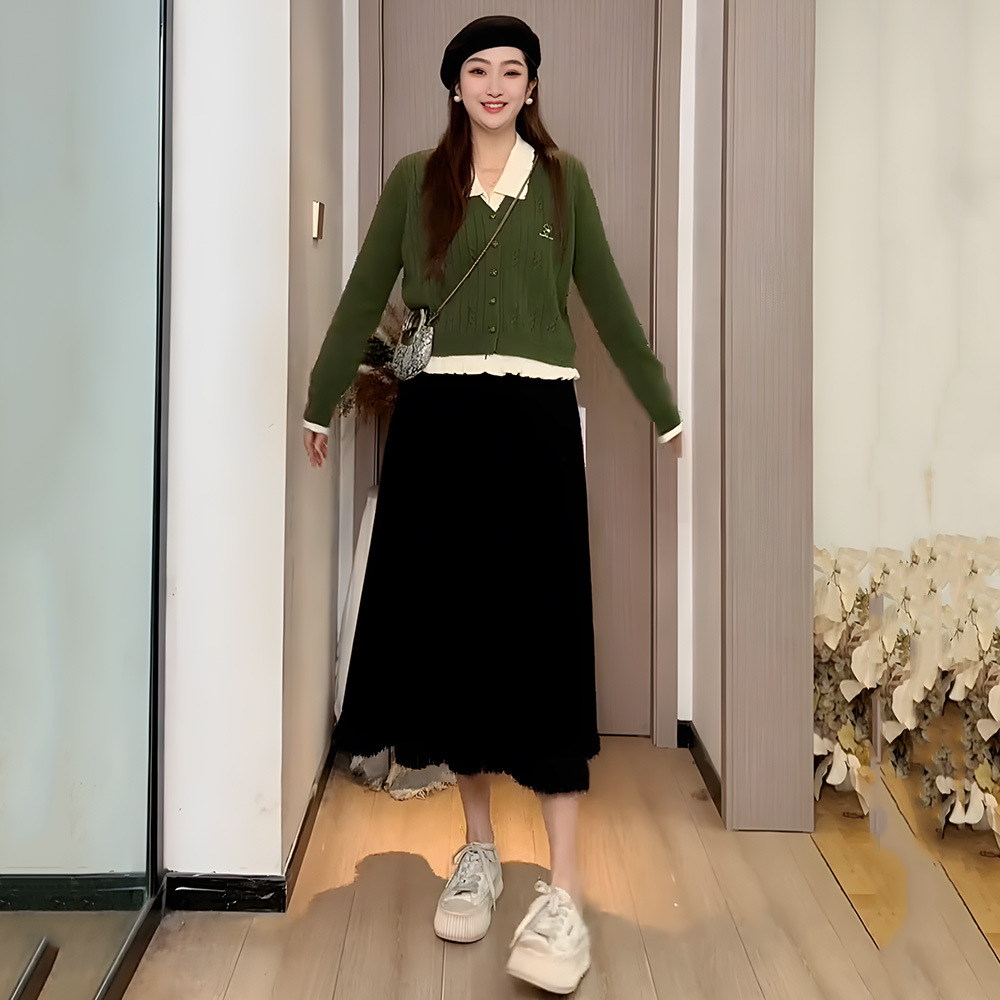 Женский вязаный свитер большого размера «под две части» свободного кроя, весна-осень 2025, новый стиль, топ с лоскутным дизайном