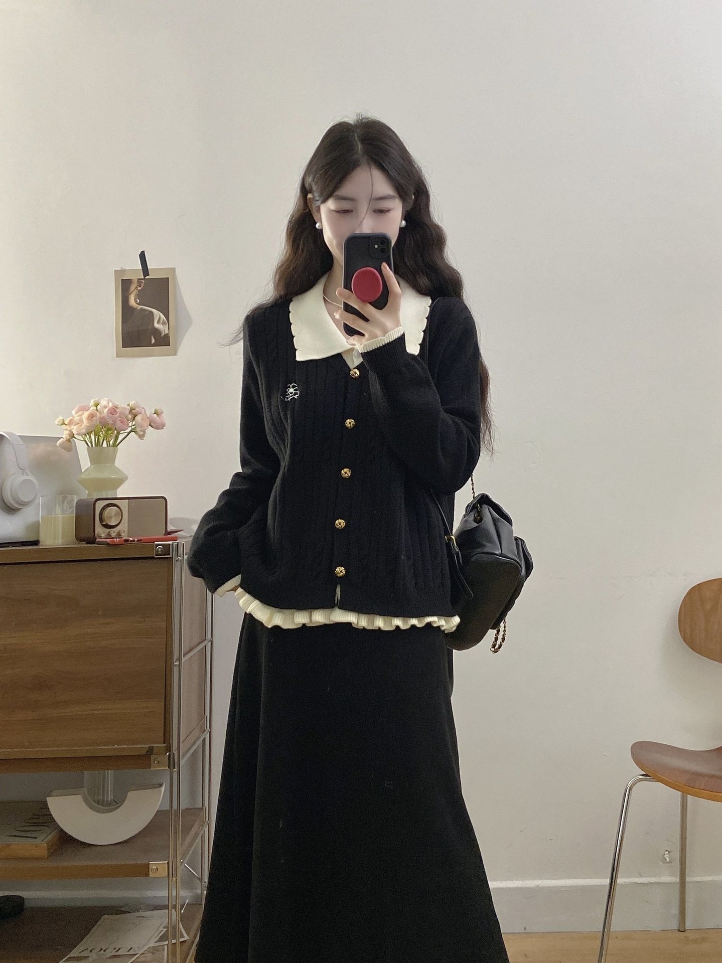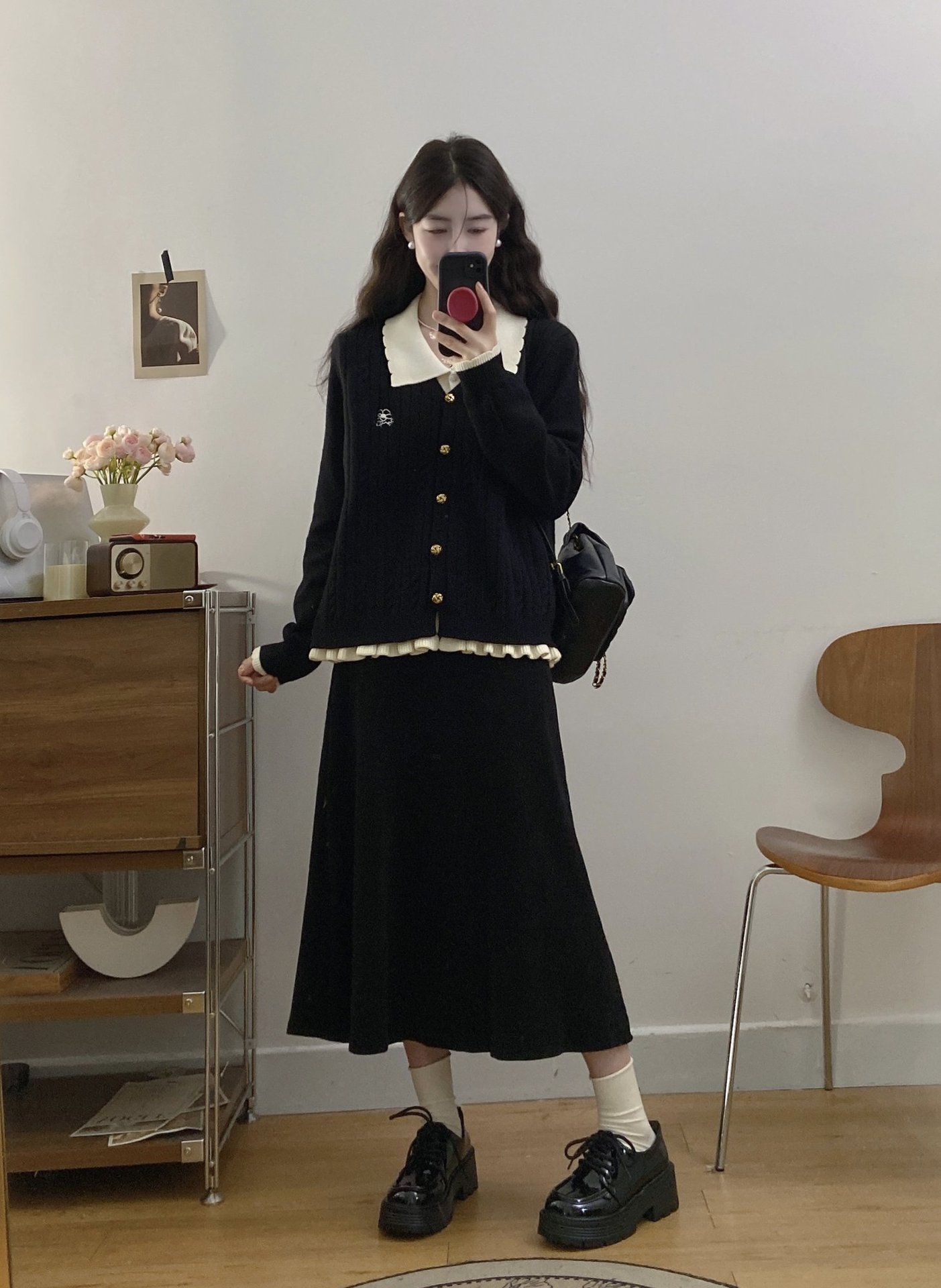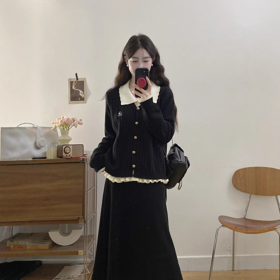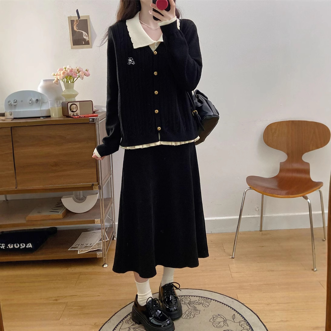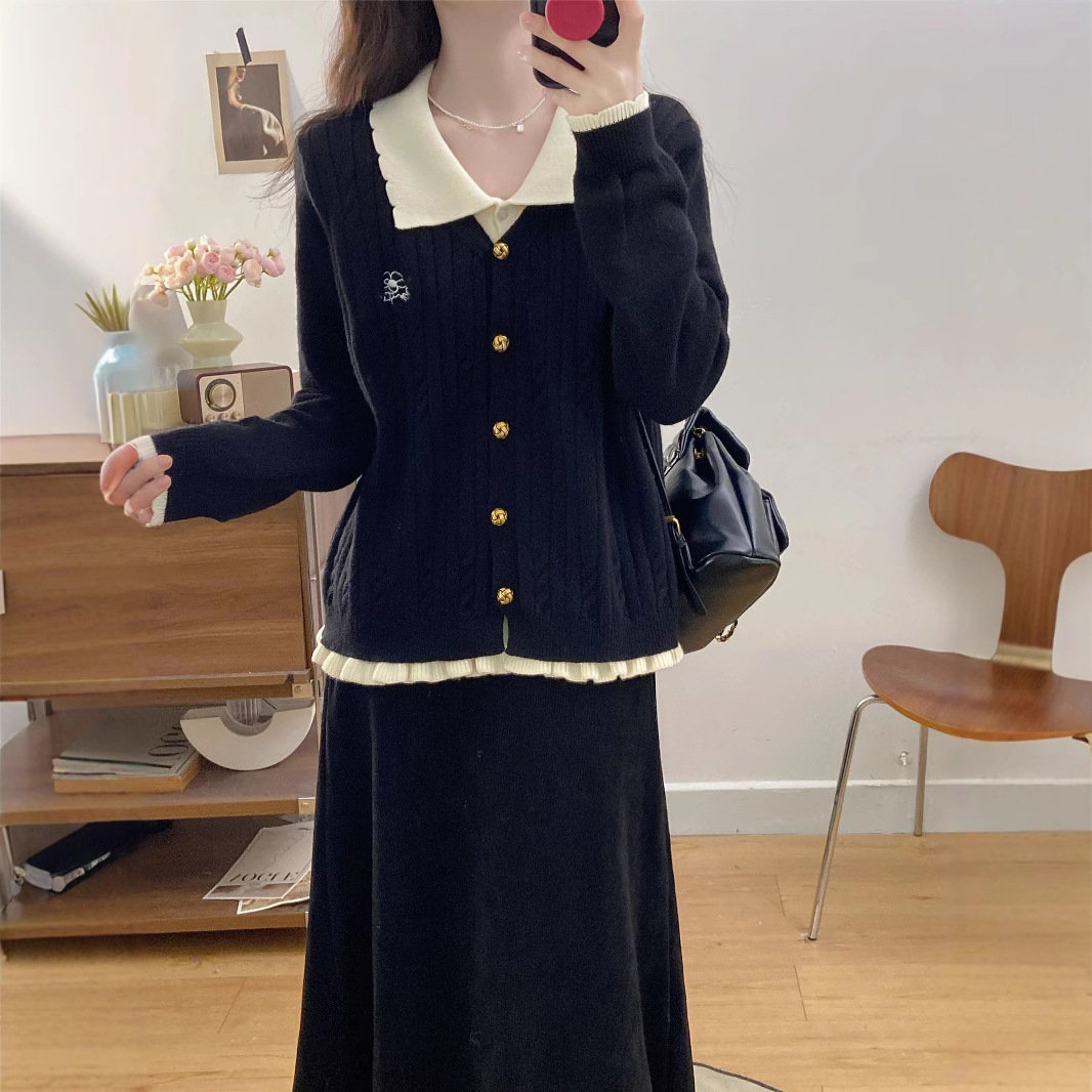 Женский вязаный свитер большого размера «под две части» свободного кроя, весна-осень 2025, новый стиль, топ с лоскутным дизайном