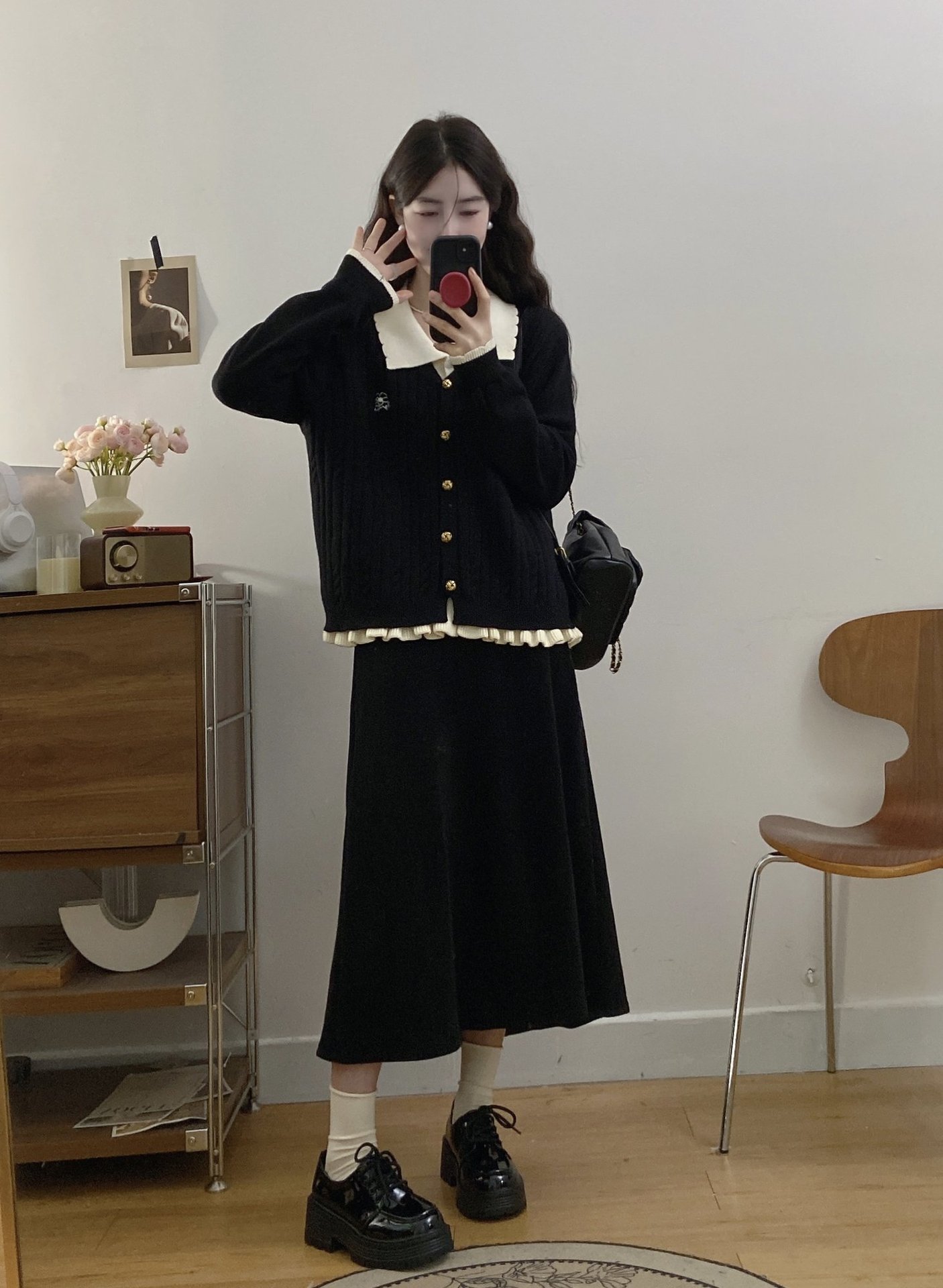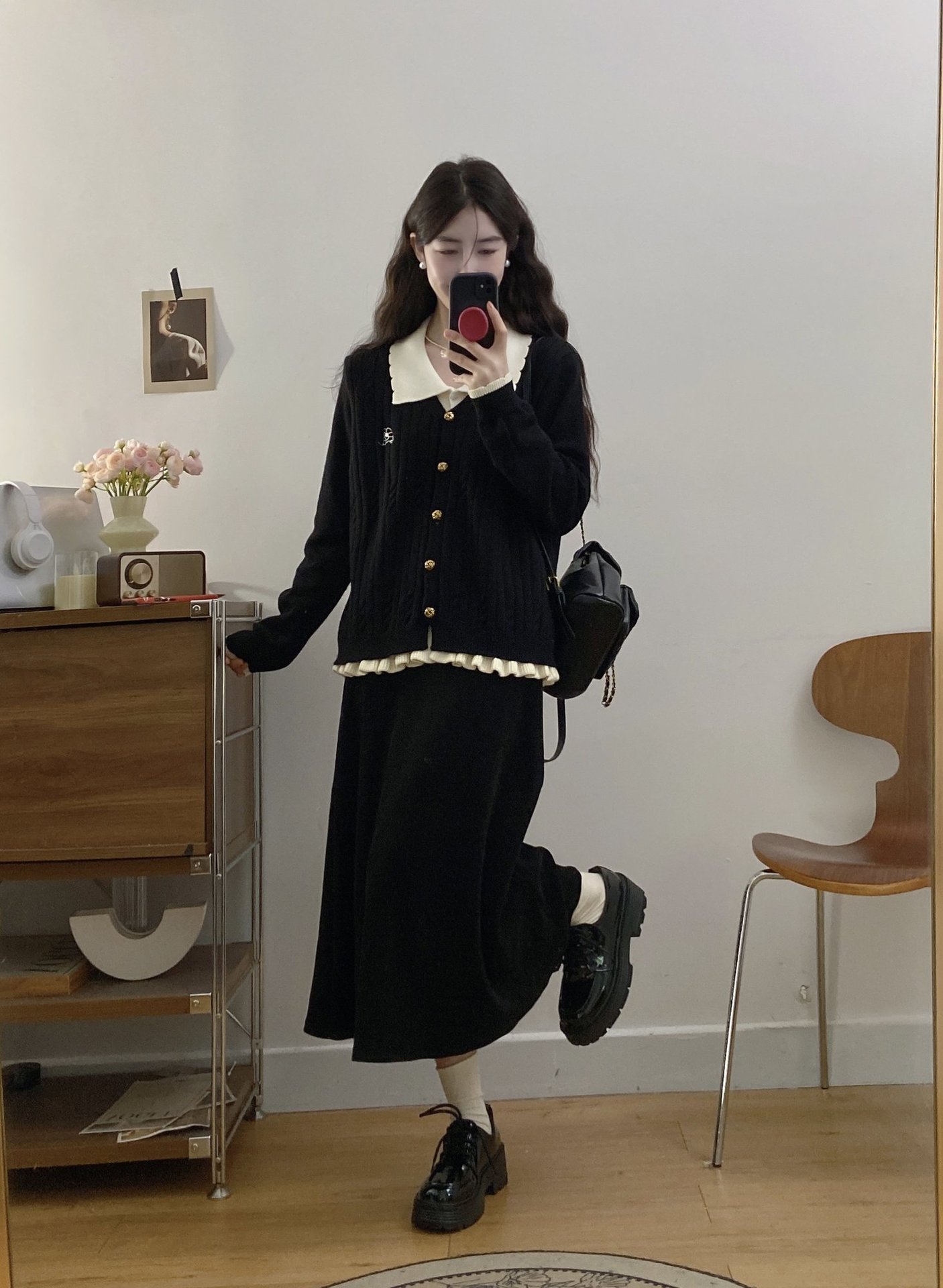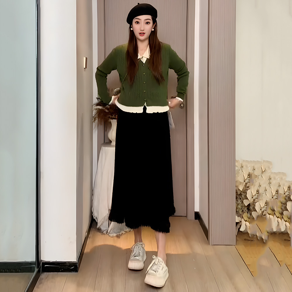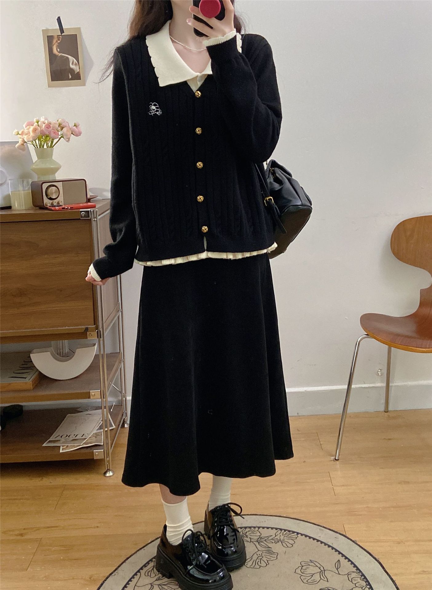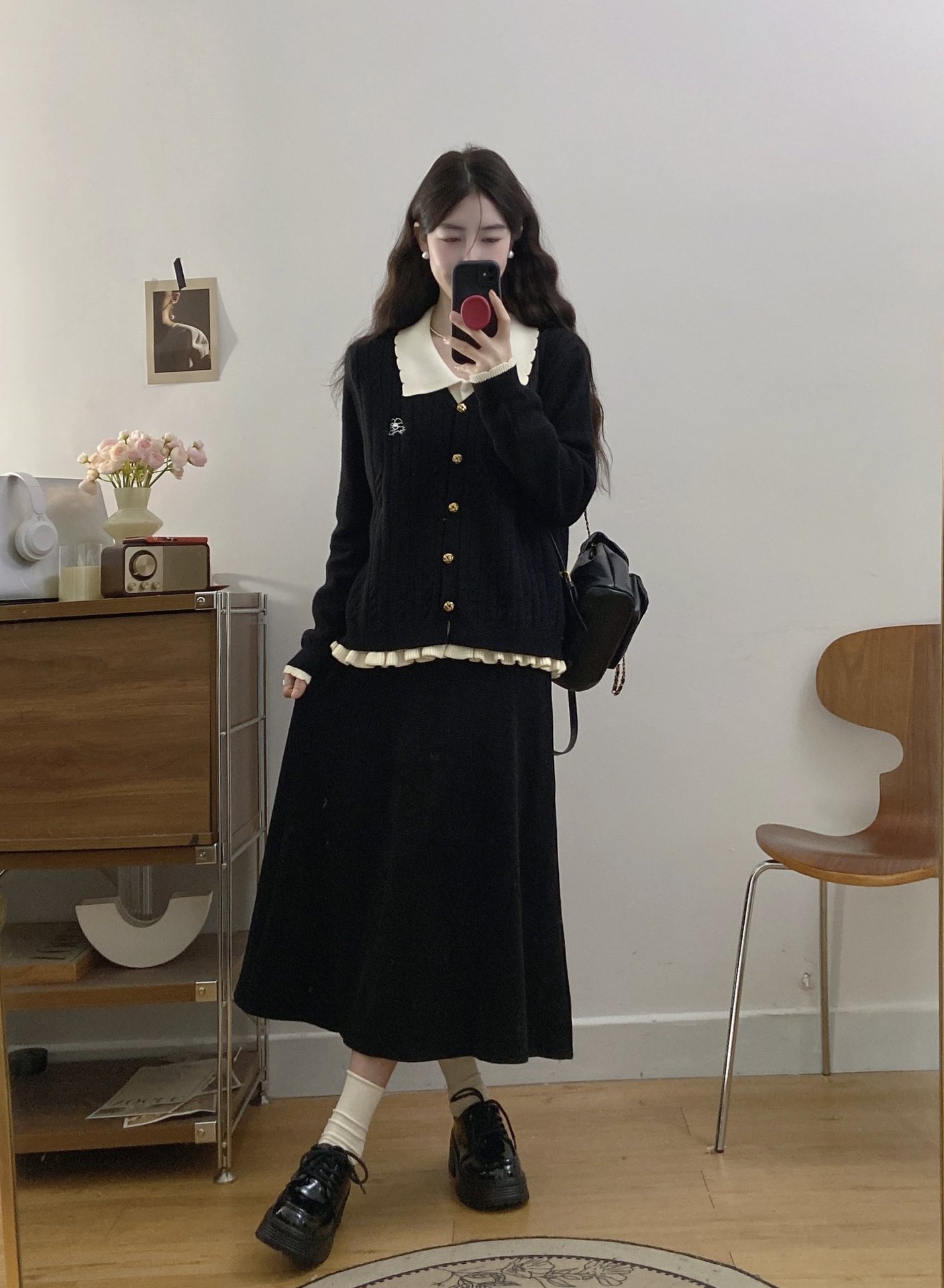 Женский вязаный свитер большого размера «под две части» свободного кроя, весна-осень 2025, новый стиль, топ с лоскутным дизайном