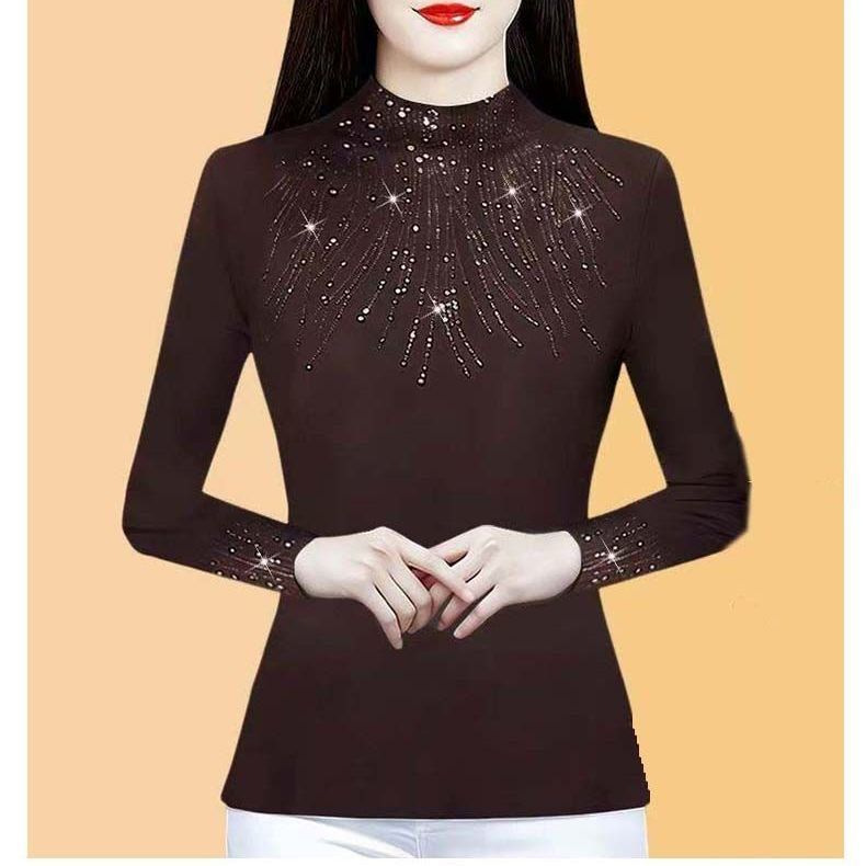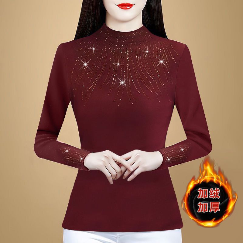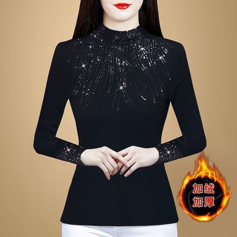 Осенняя и зимняя новая мода с половинным вырезом сплошной цвет с горячими бриллиантами