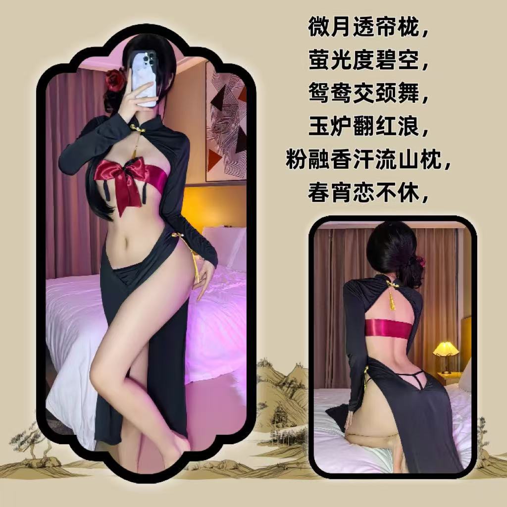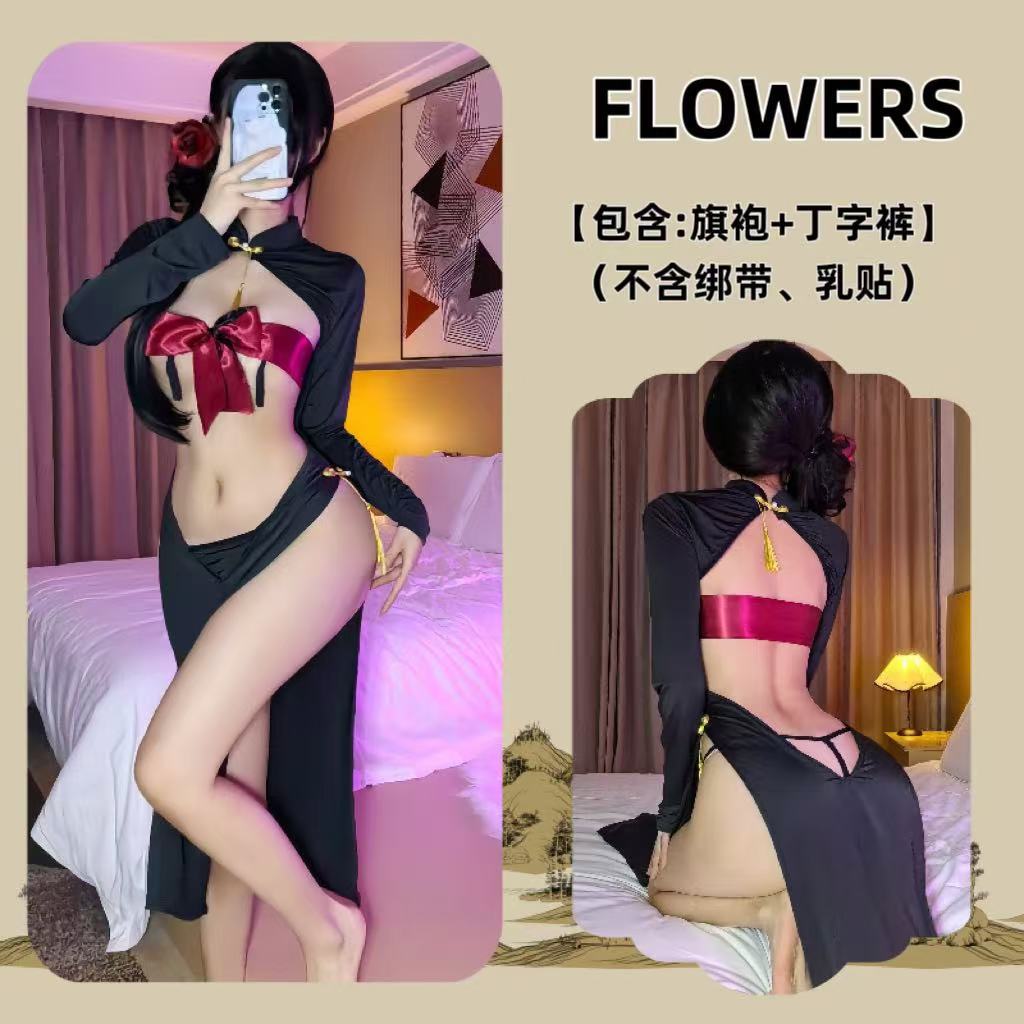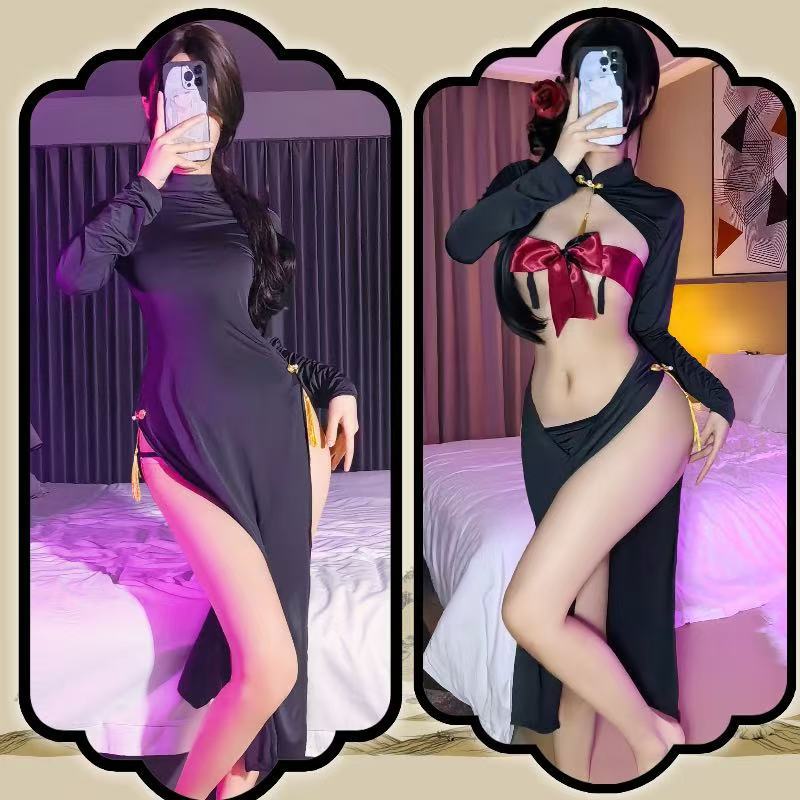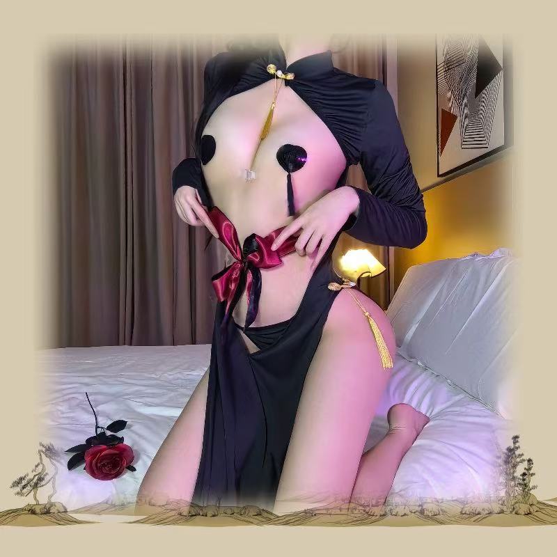 Платье горничной чистой юбки Cheongsam Униформа соблазнительная эротическое белье набор бикини с сосками