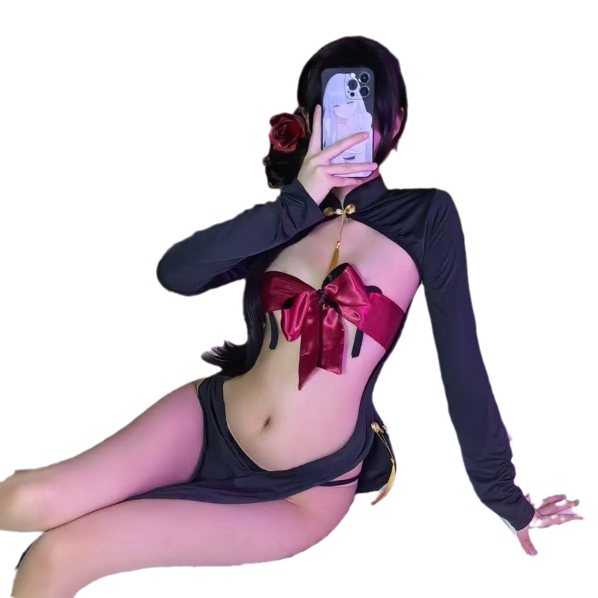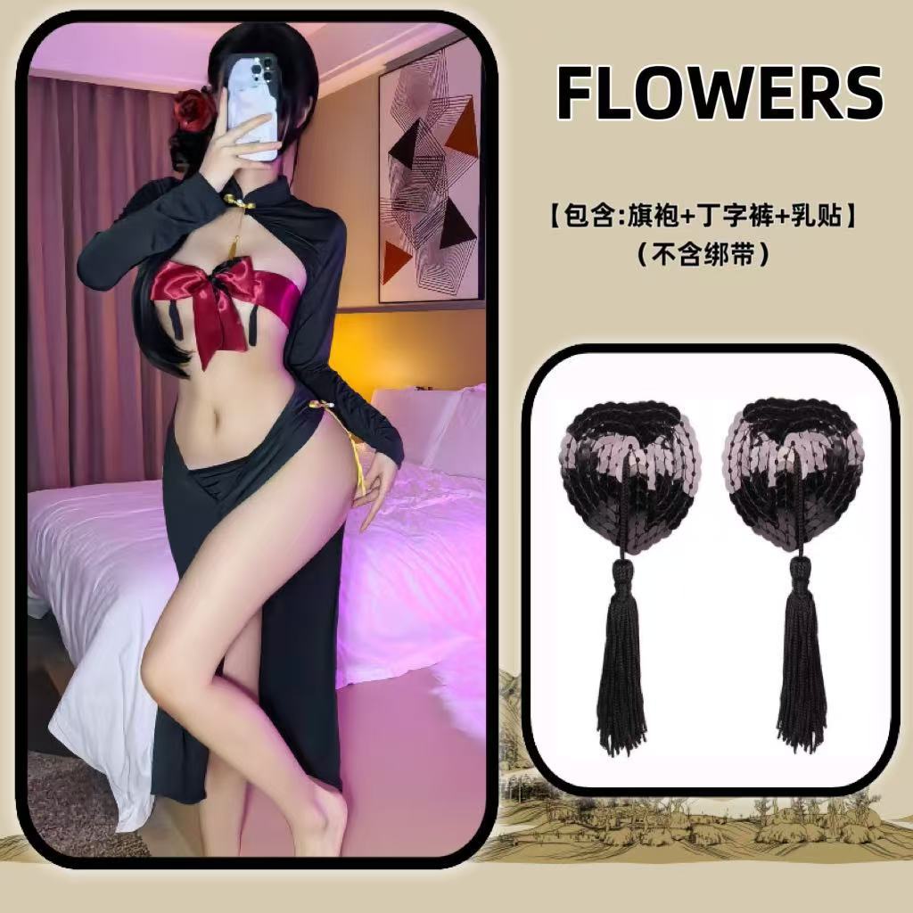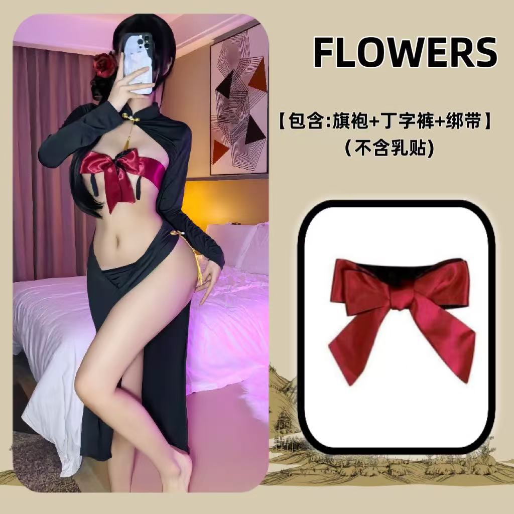 Платье горничной чистой юбки Cheongsam Униформа соблазнительная эротическое белье набор бикини с сосками