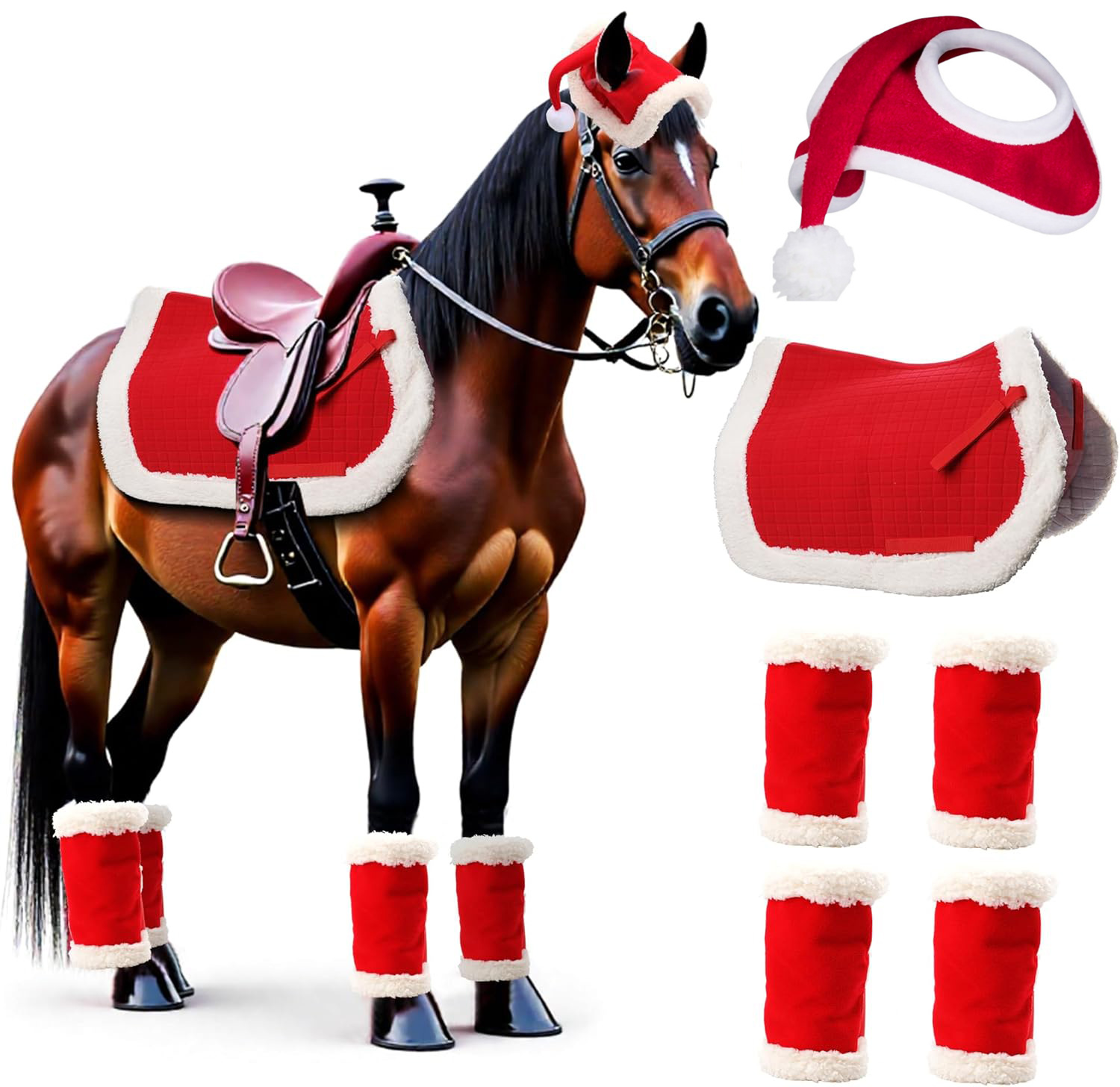 Рождественская праздничная красная шляпа для лошадей липучка конский леггинс конский плащ утолщенный трансграничная вечеринка Рождественская шляпа украшения шляпа