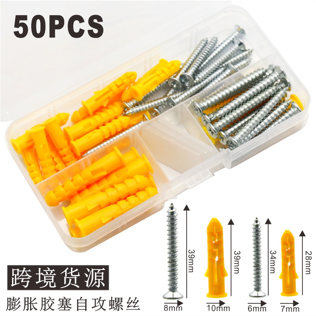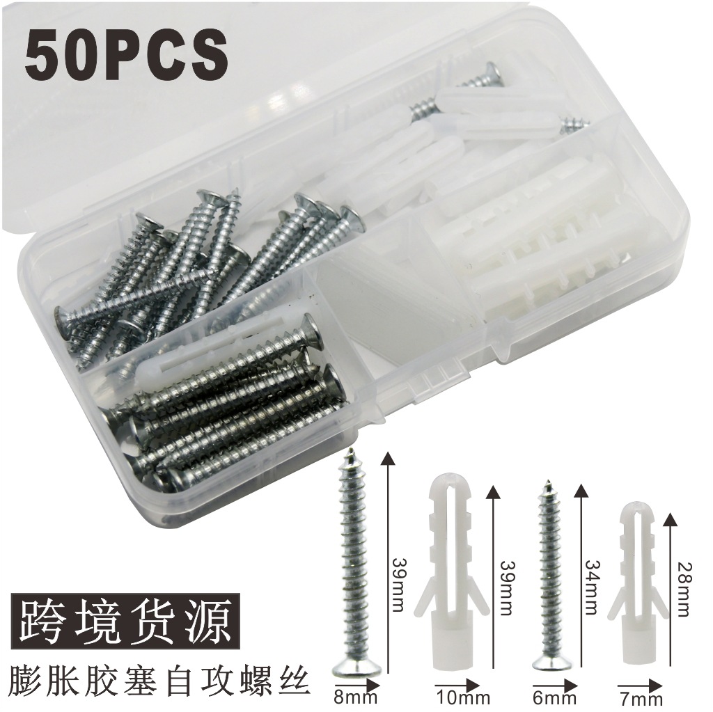 膨胀胶塞自攻螺丝组合膨胀螺丝套装25只50PCS盒装相框安装配件包