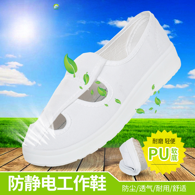 Антистатическая обувь для мужчин и женщин с четырьмя отверстиями ПУ утолщенная мягкая подошва белая чистая мастерская чистая обувь для очистки защитная пищевая обувь
