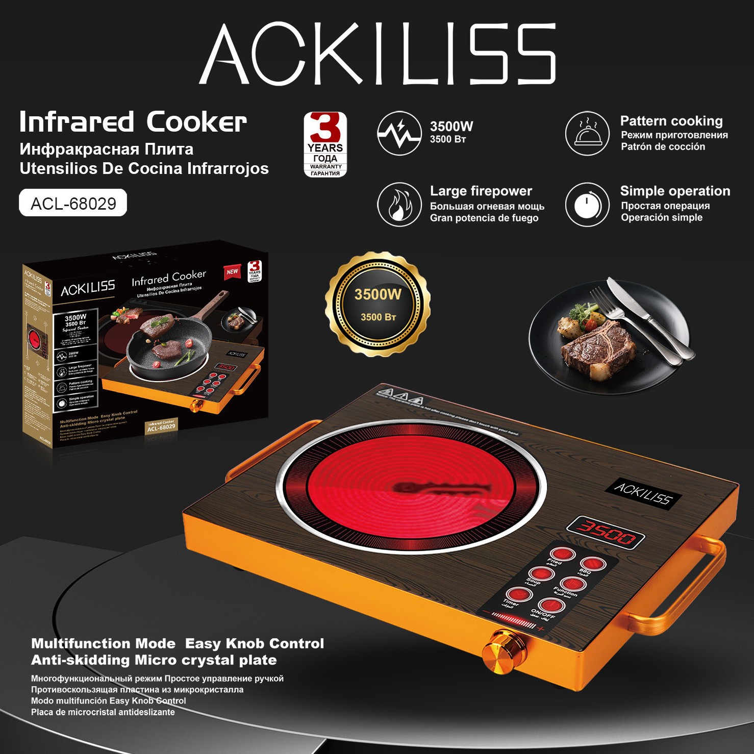 ACKILISS Трансграничная электрическая глиняная плита для домашнего использования высокой мощности многофункциональный жареный горячий горшок световая волна индукционная плита настольная электрическая плита