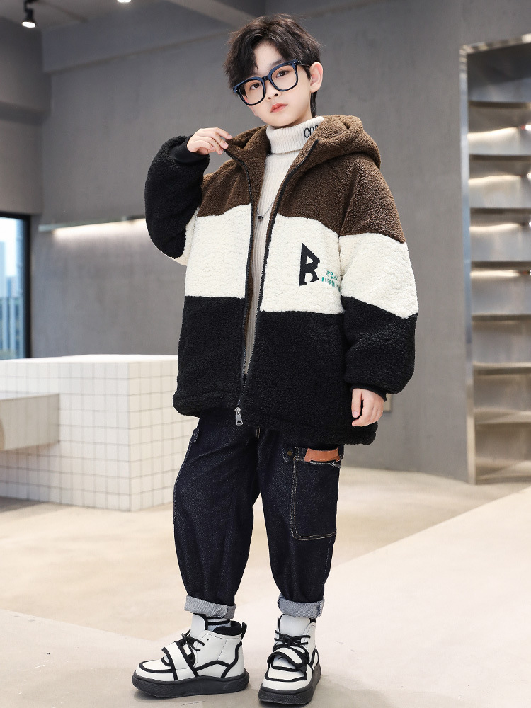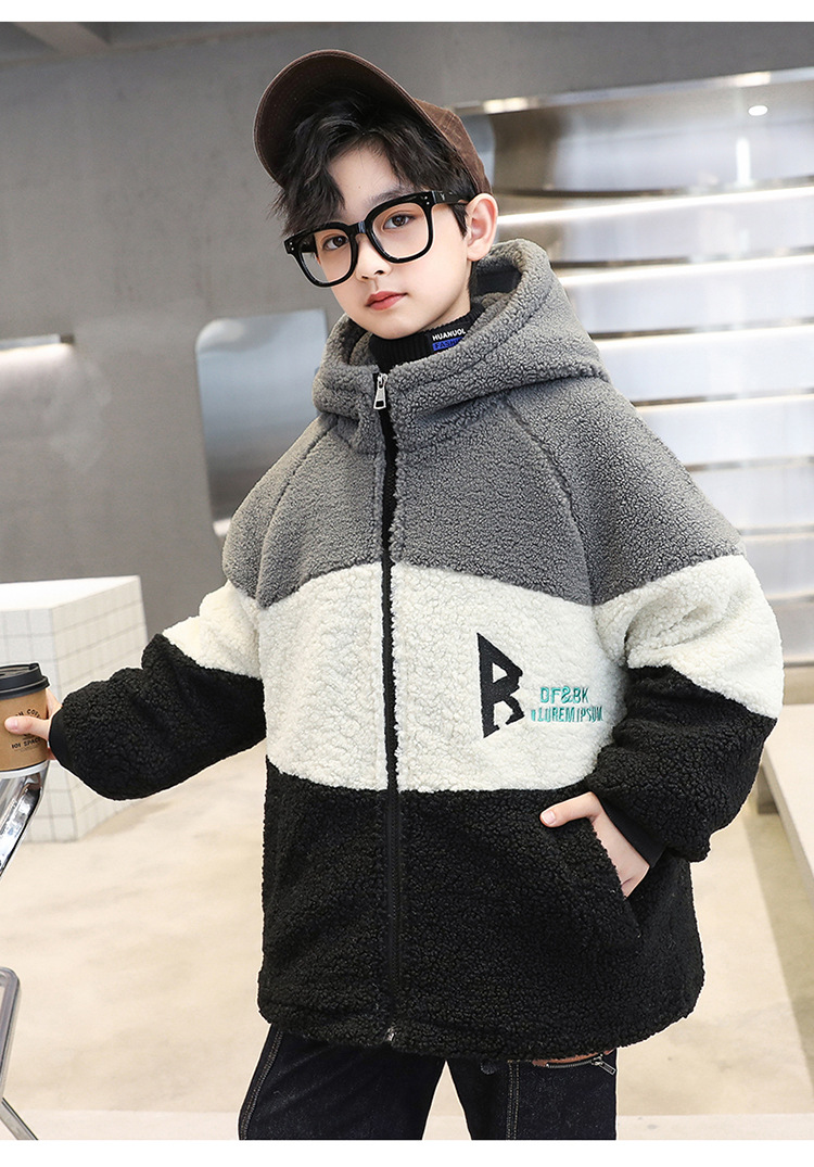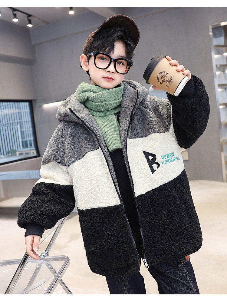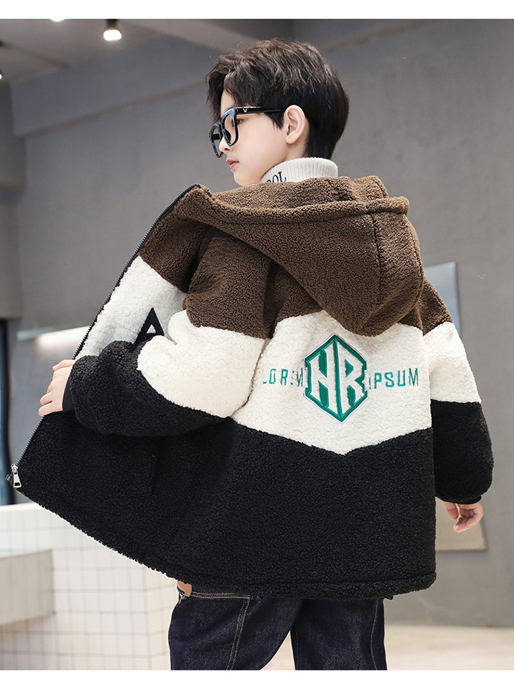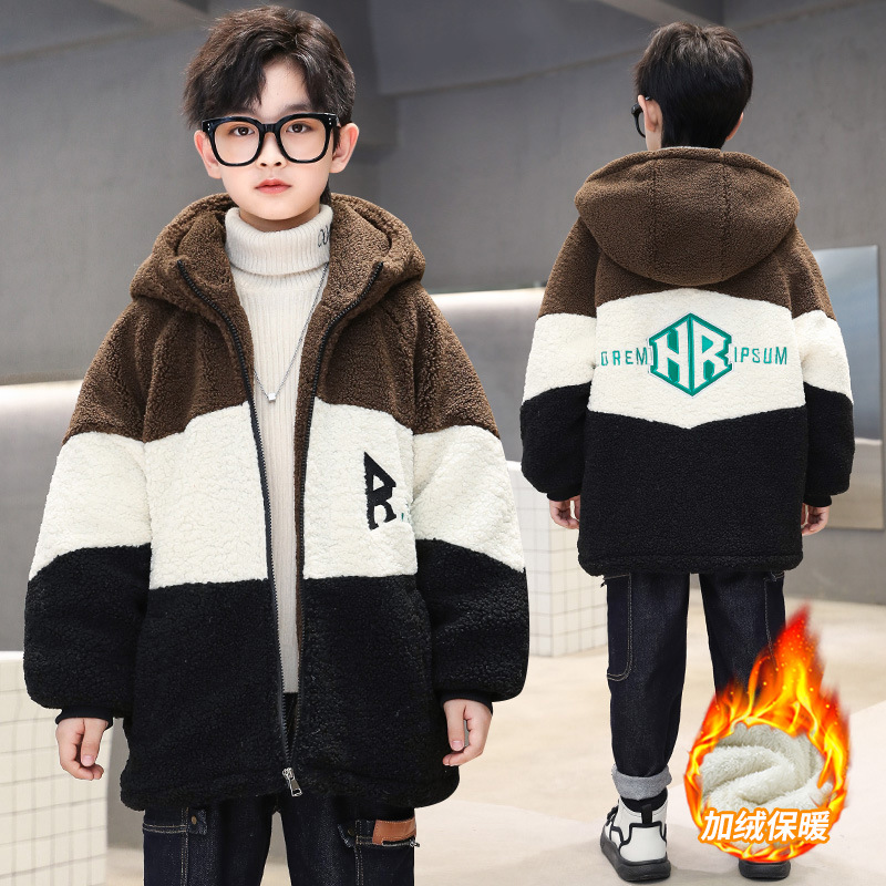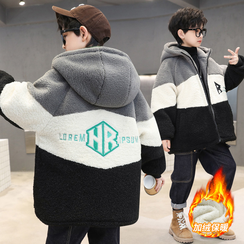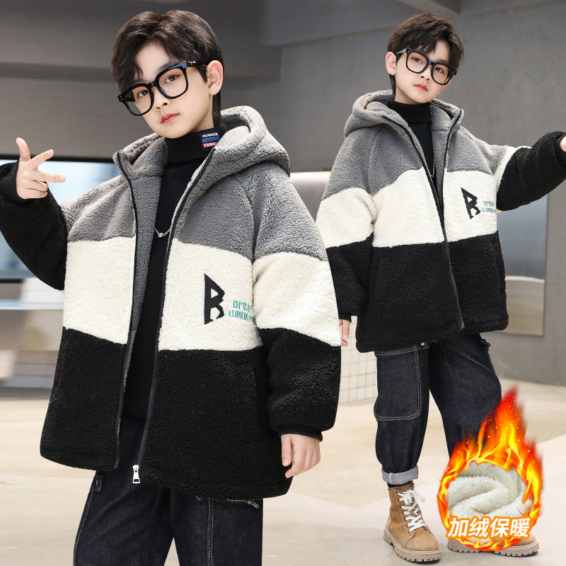 Детская осенне-зимняя куртка 2025 года, новая модель, для детей среднего и старшего возраста, на флисовой подкладке, утолщенная, из овечьей шерсти, стильный и модный зимний свитер для детей.