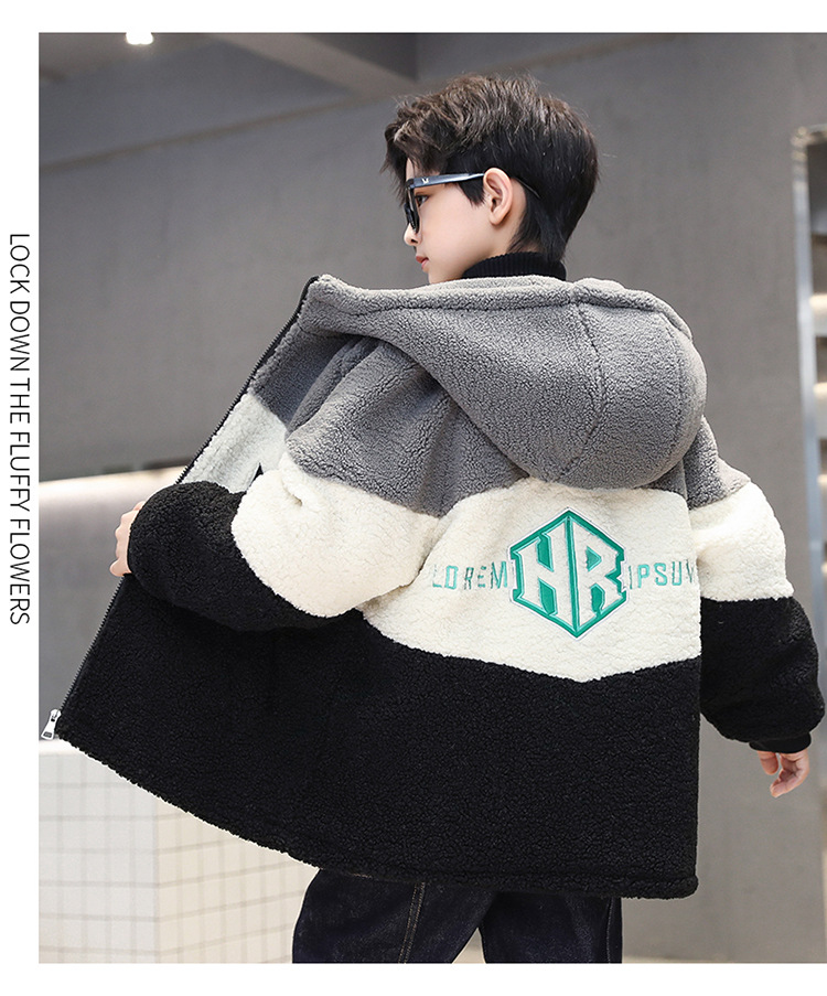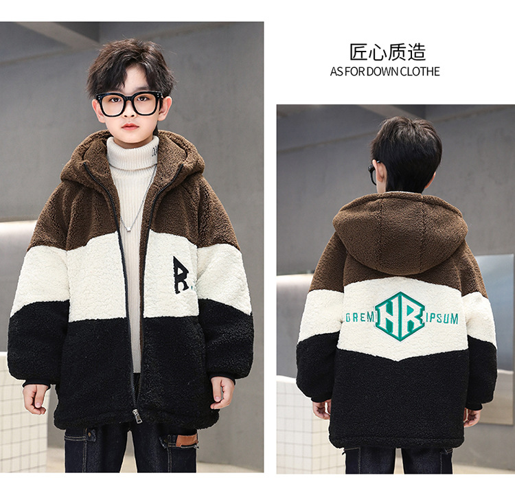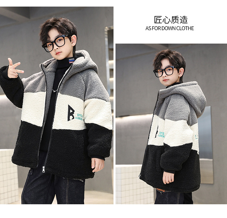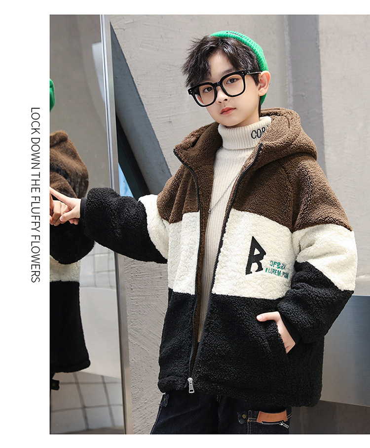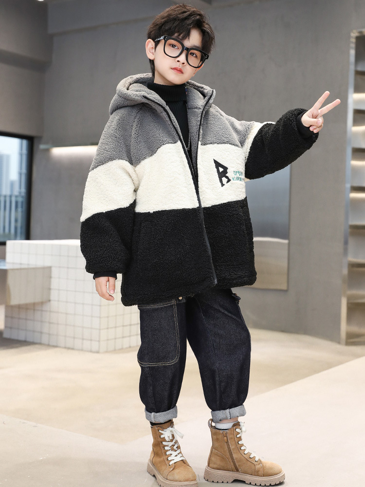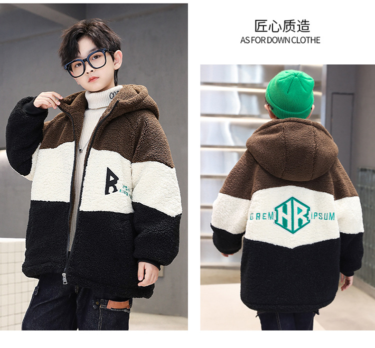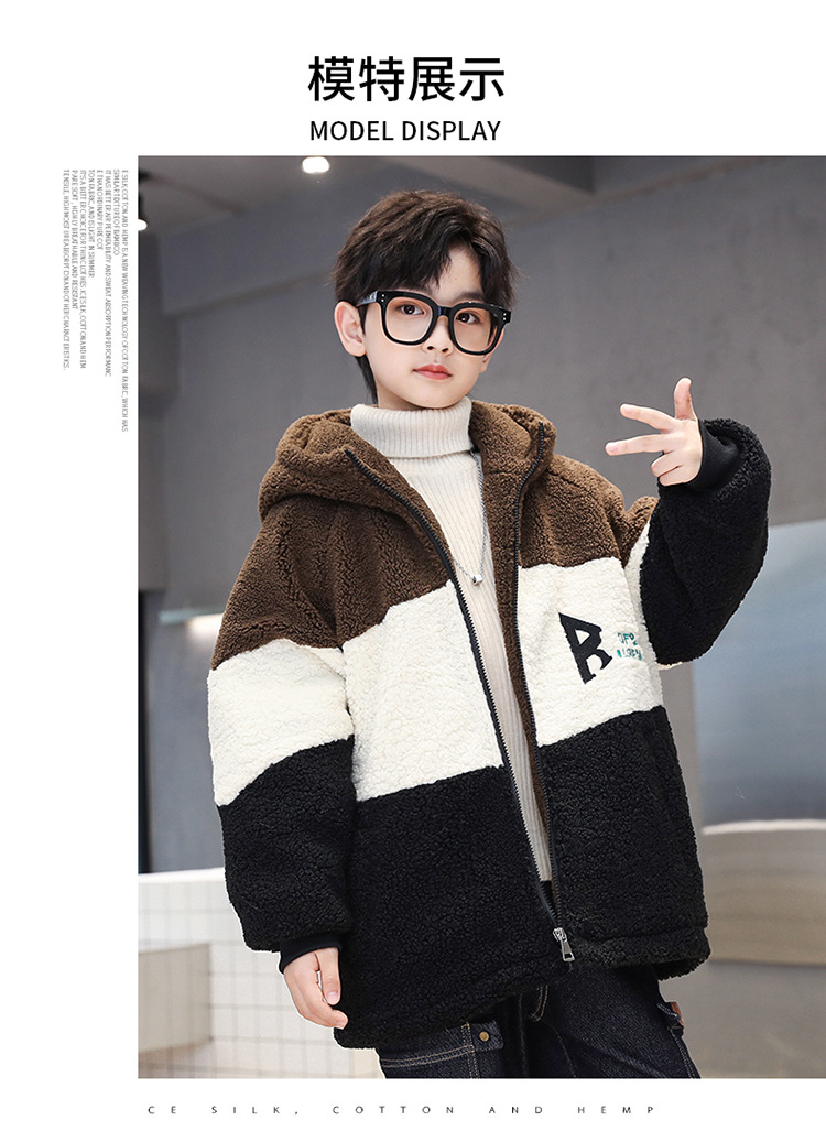 Детская осенне-зимняя куртка 2025 года, новая модель, для детей среднего и старшего возраста, на флисовой подкладке, утолщенная, из овечьей шерсти, стильный и модный зимний свитер для детей.