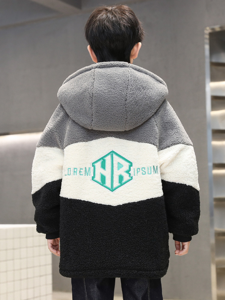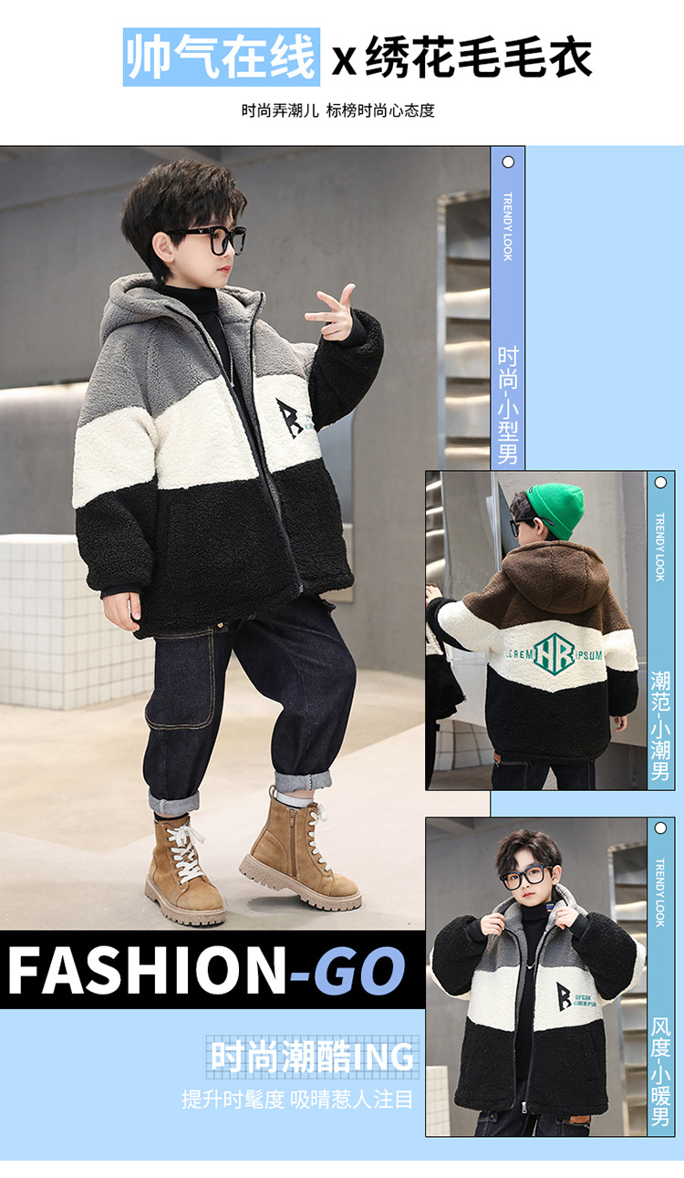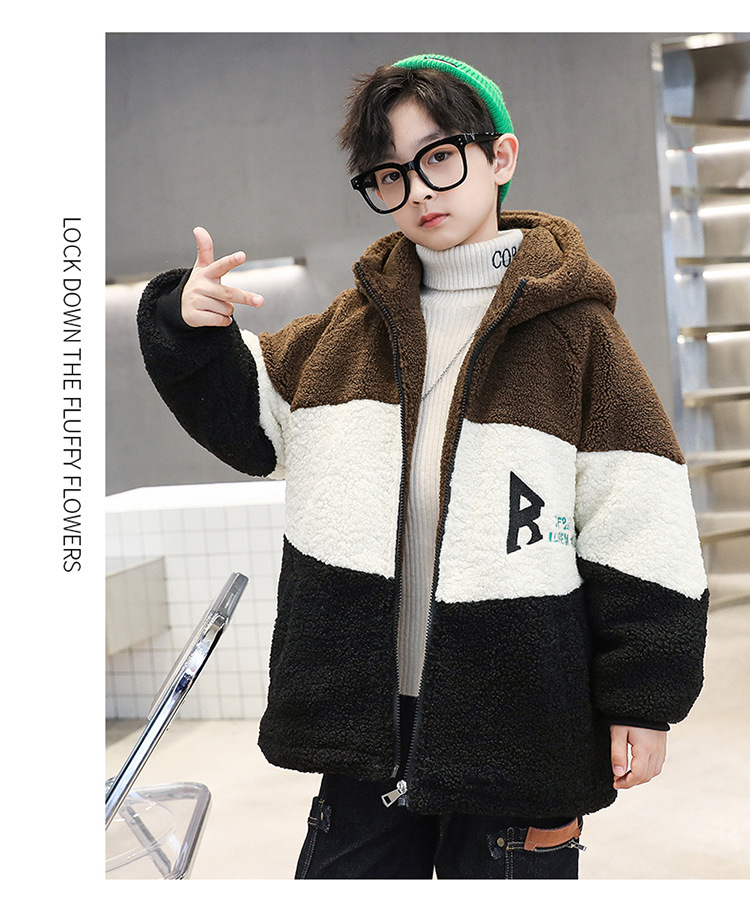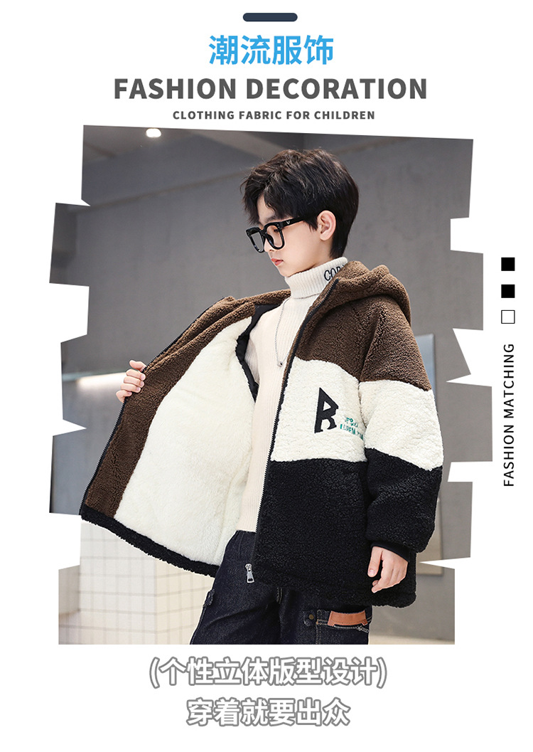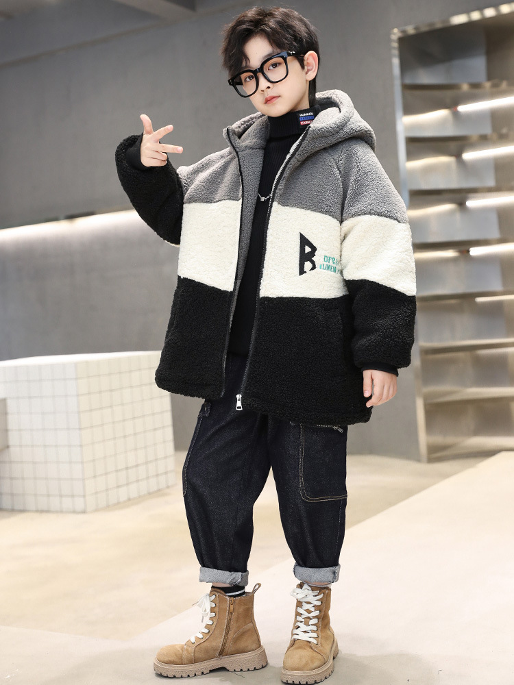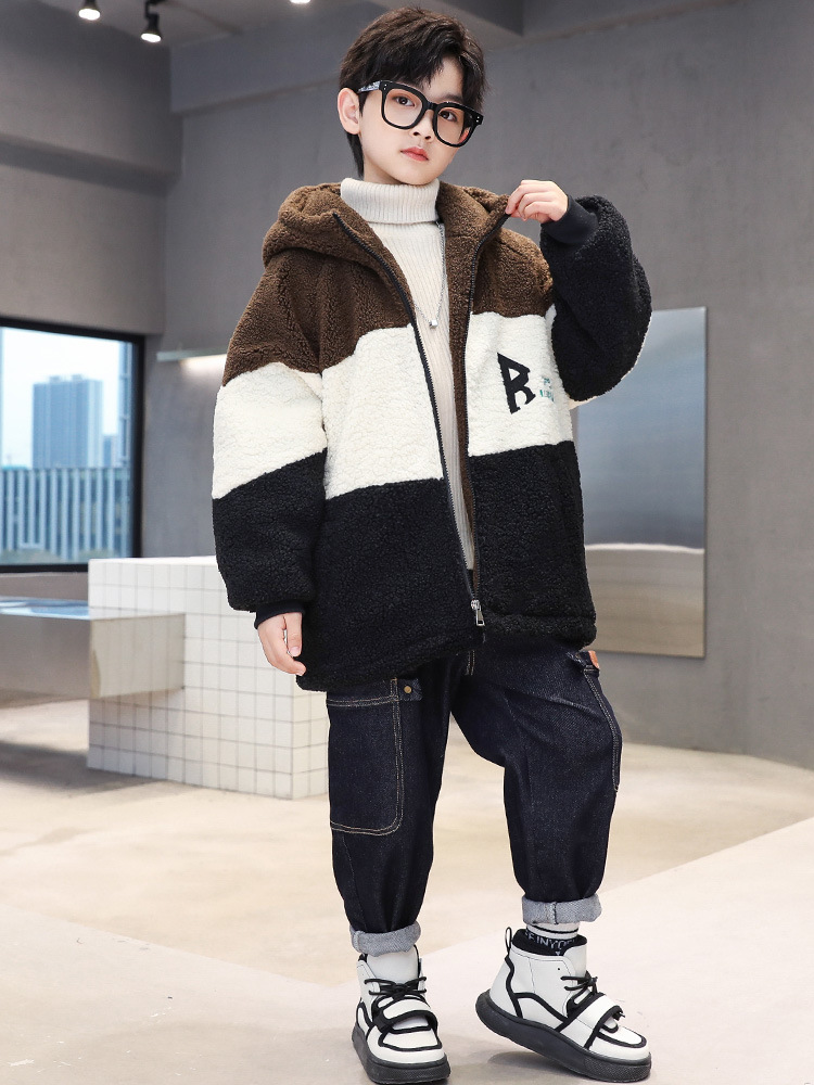 Детская осенне-зимняя куртка 2025 года, новая модель, для детей среднего и старшего возраста, на флисовой подкладке, утолщенная, из овечьей шерсти, стильный и модный зимний свитер для детей.