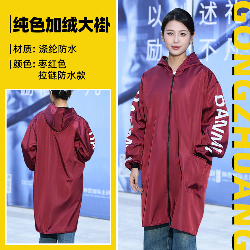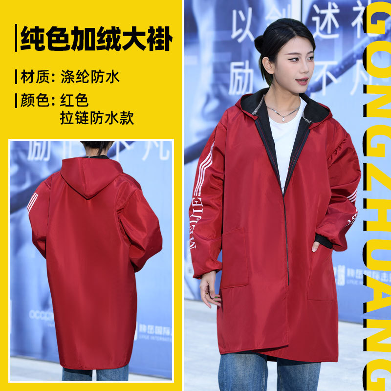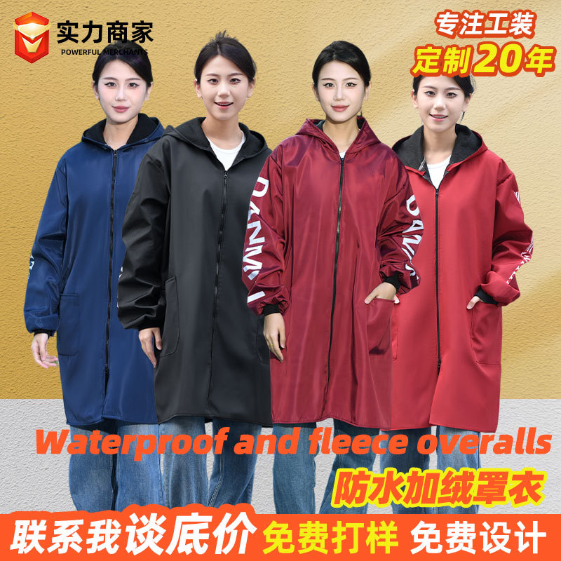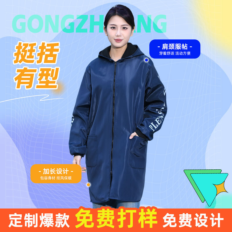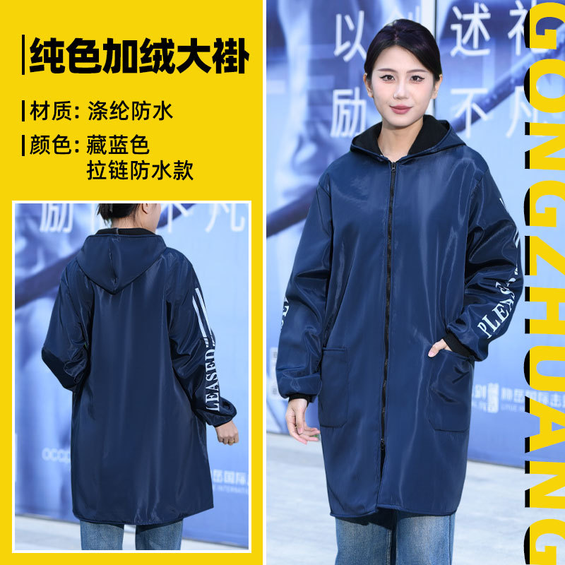 Длинное водонепроницаемое пальто на флисовой подкладке, флисовый комбинезон, зимняя утепленная рабочая одежда, удлиненное утепленное синее пальто с капюшоном.
