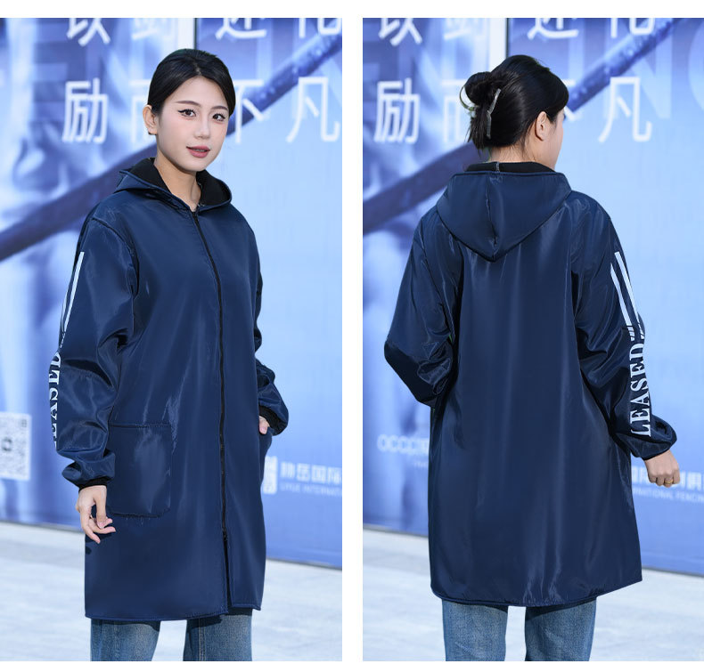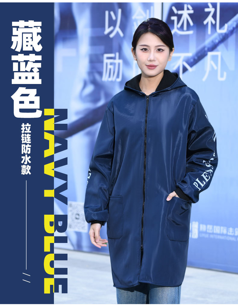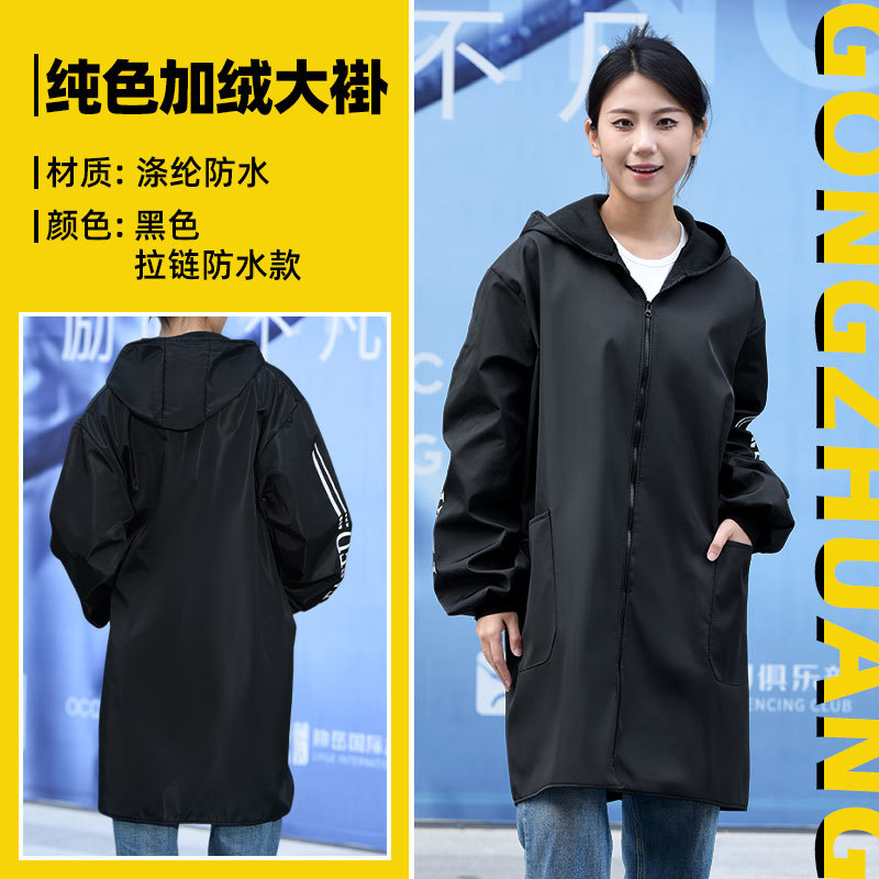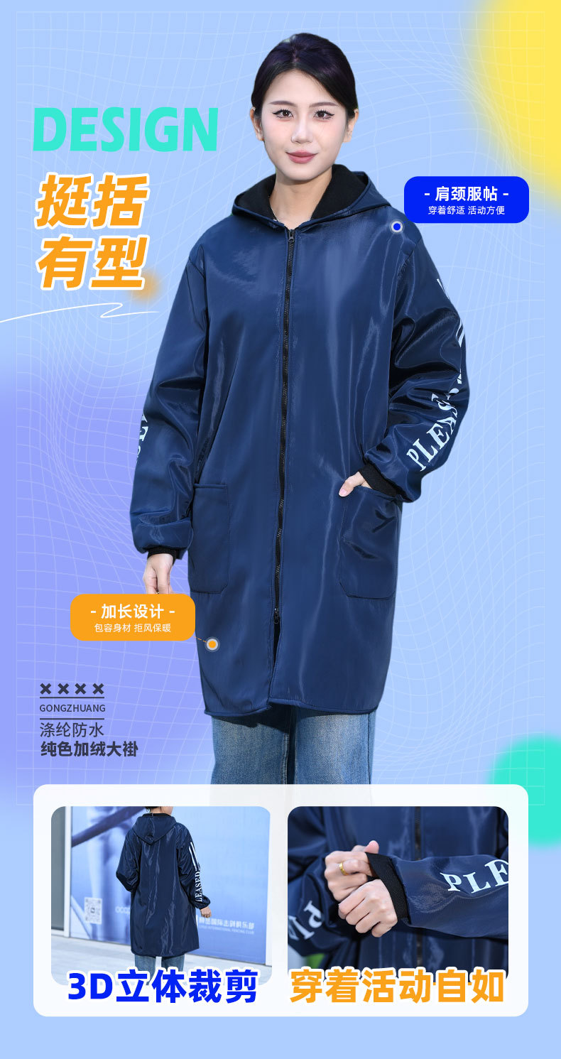 Длинное водонепроницаемое пальто на флисовой подкладке, флисовый комбинезон, зимняя утепленная рабочая одежда, удлиненное утепленное синее пальто с капюшоном.
