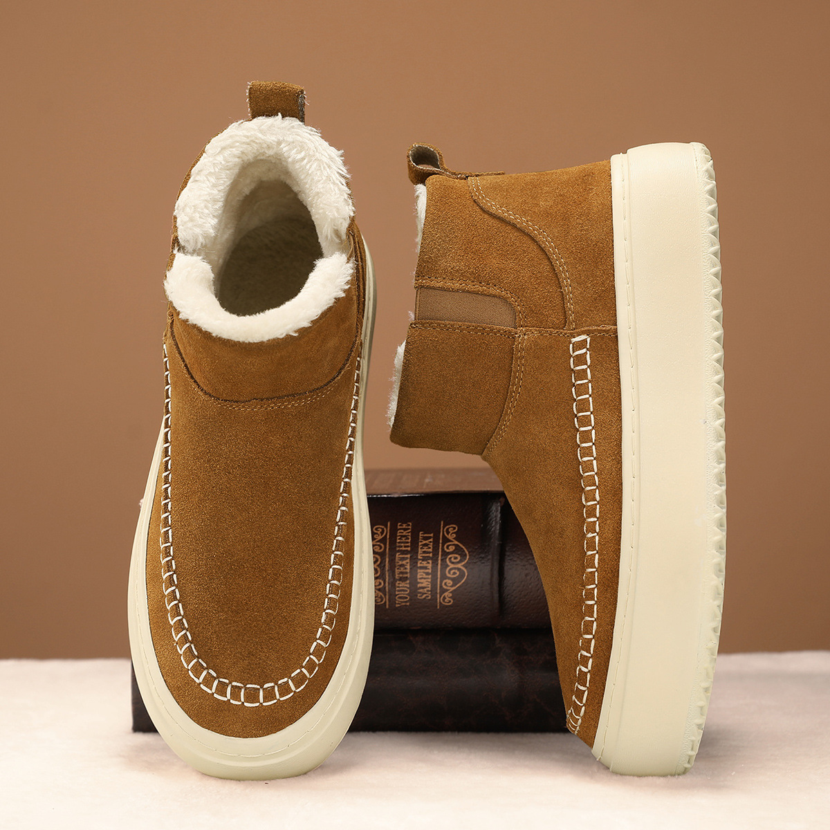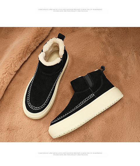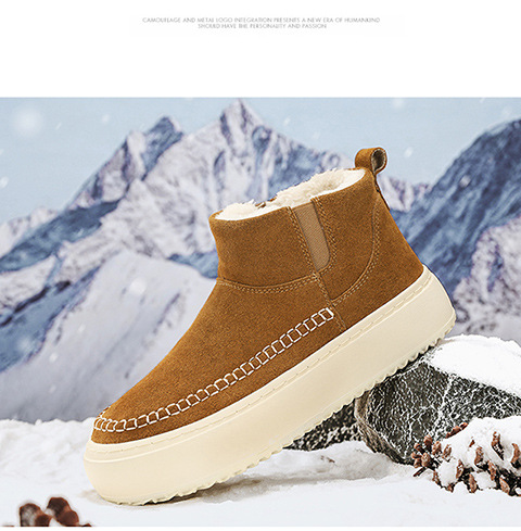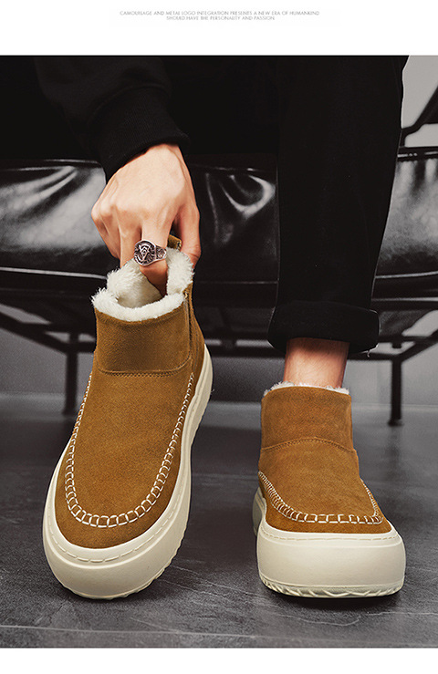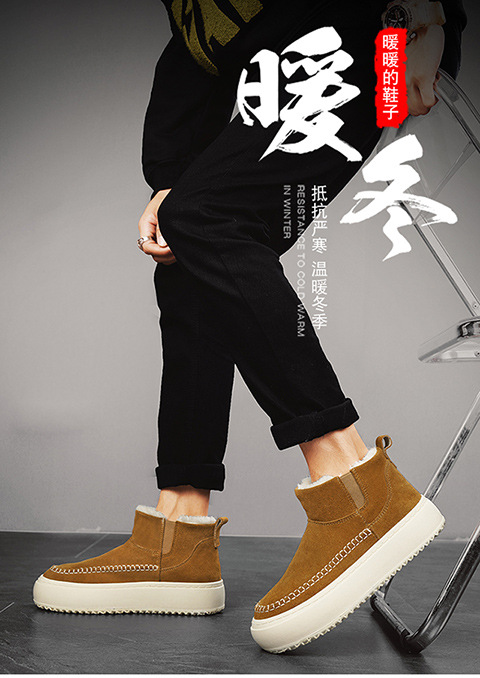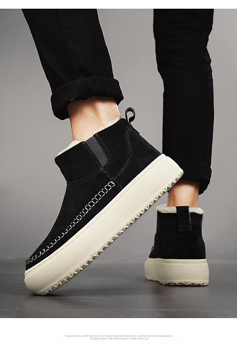 Мужские ботинки зима 2025, новые мужские ботинки на толстой подошве с флисовой подкладкой, утепленные хлопковые ботинки, молодежные, теплые, короткие, на одной ноге.