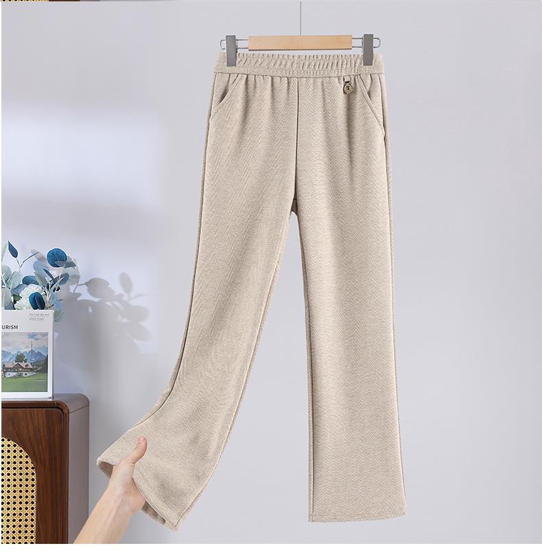 Женские брюки среднего и пожилого возраста мама бархатные брюки осень-зима новые прямые брюки эластические брюки с высокой талией свободные повседневные шерстяные брюки