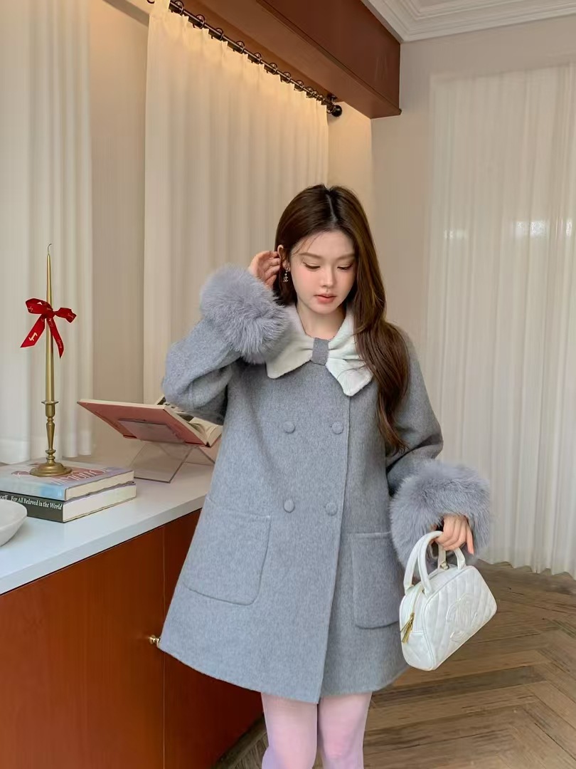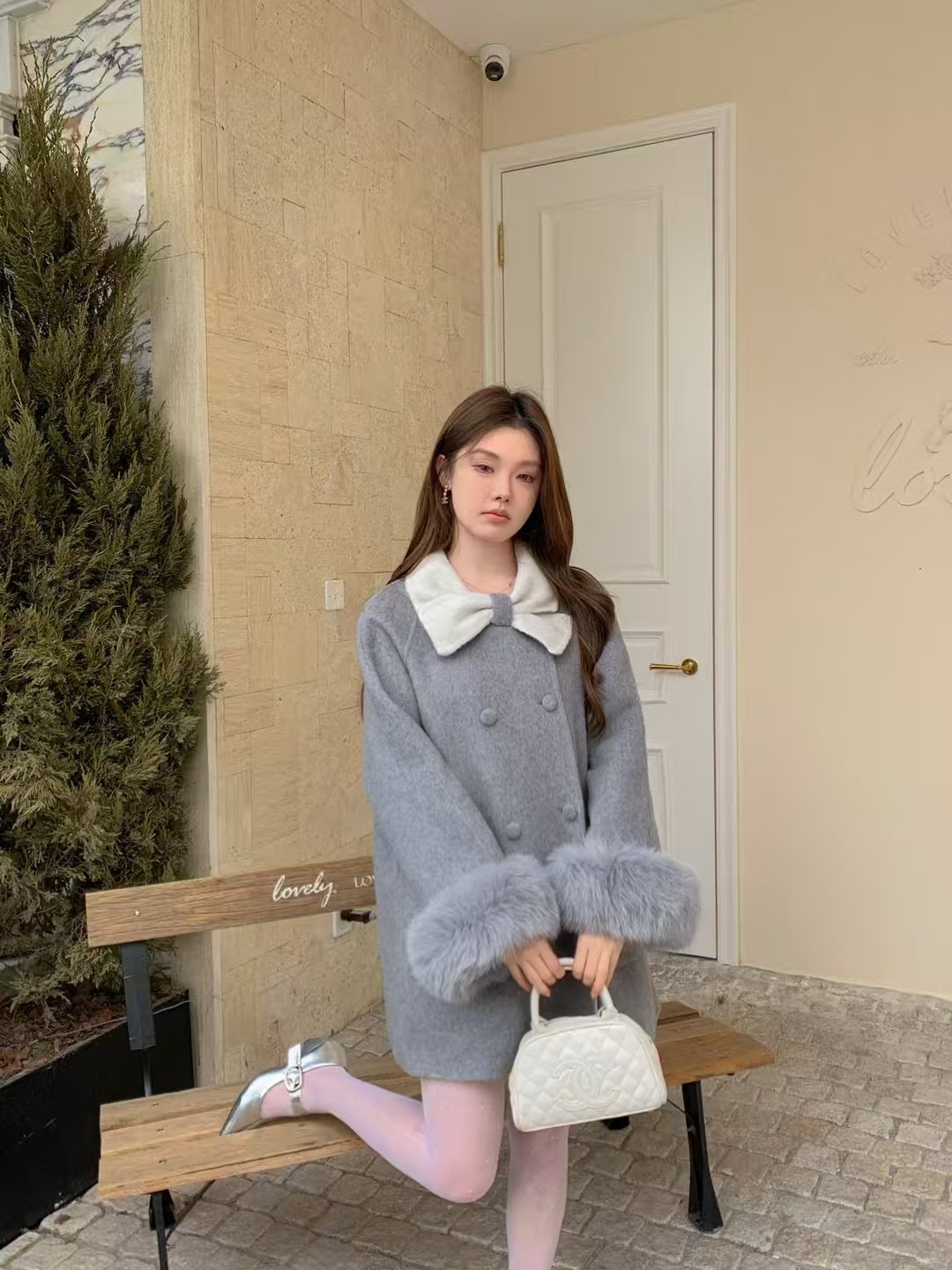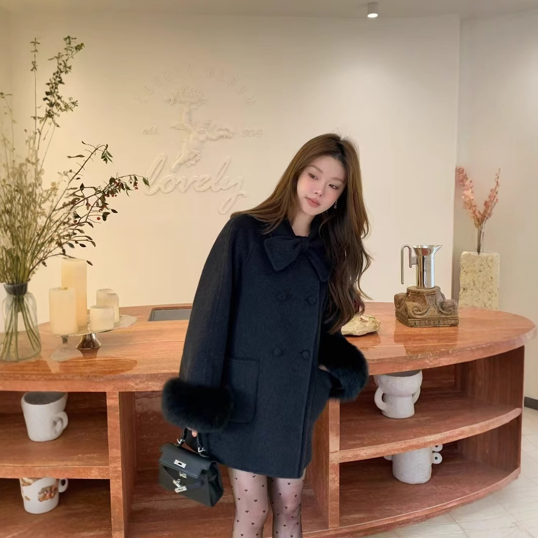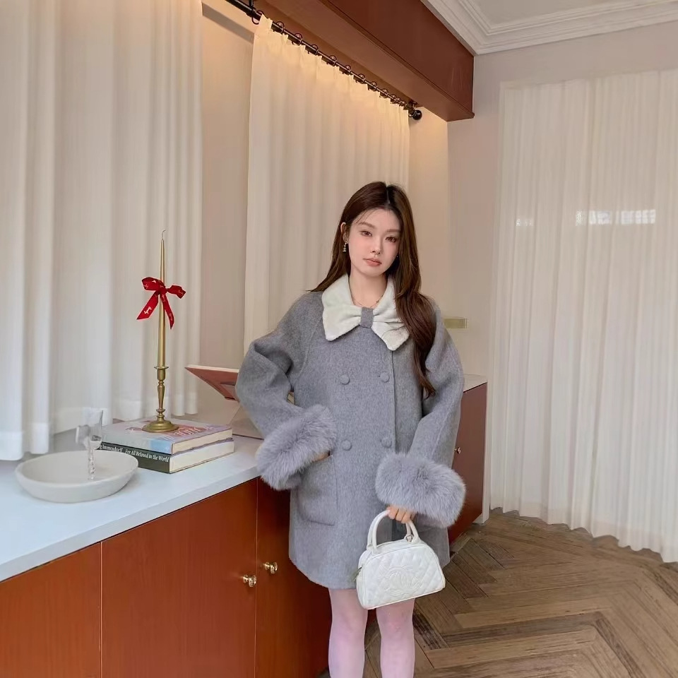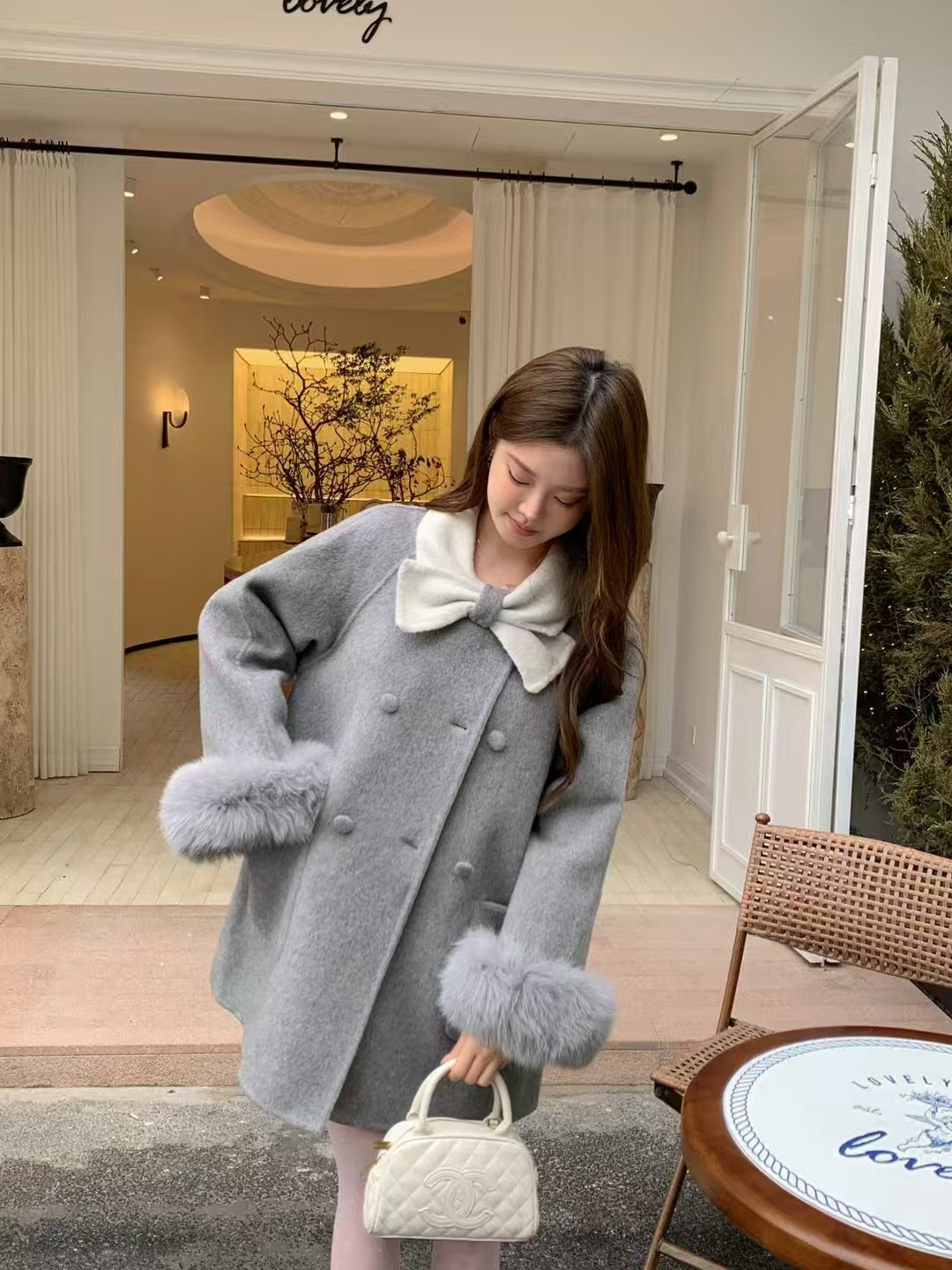 Европейский вокзал новый двухсторонний шерстяной пальто с бантом
