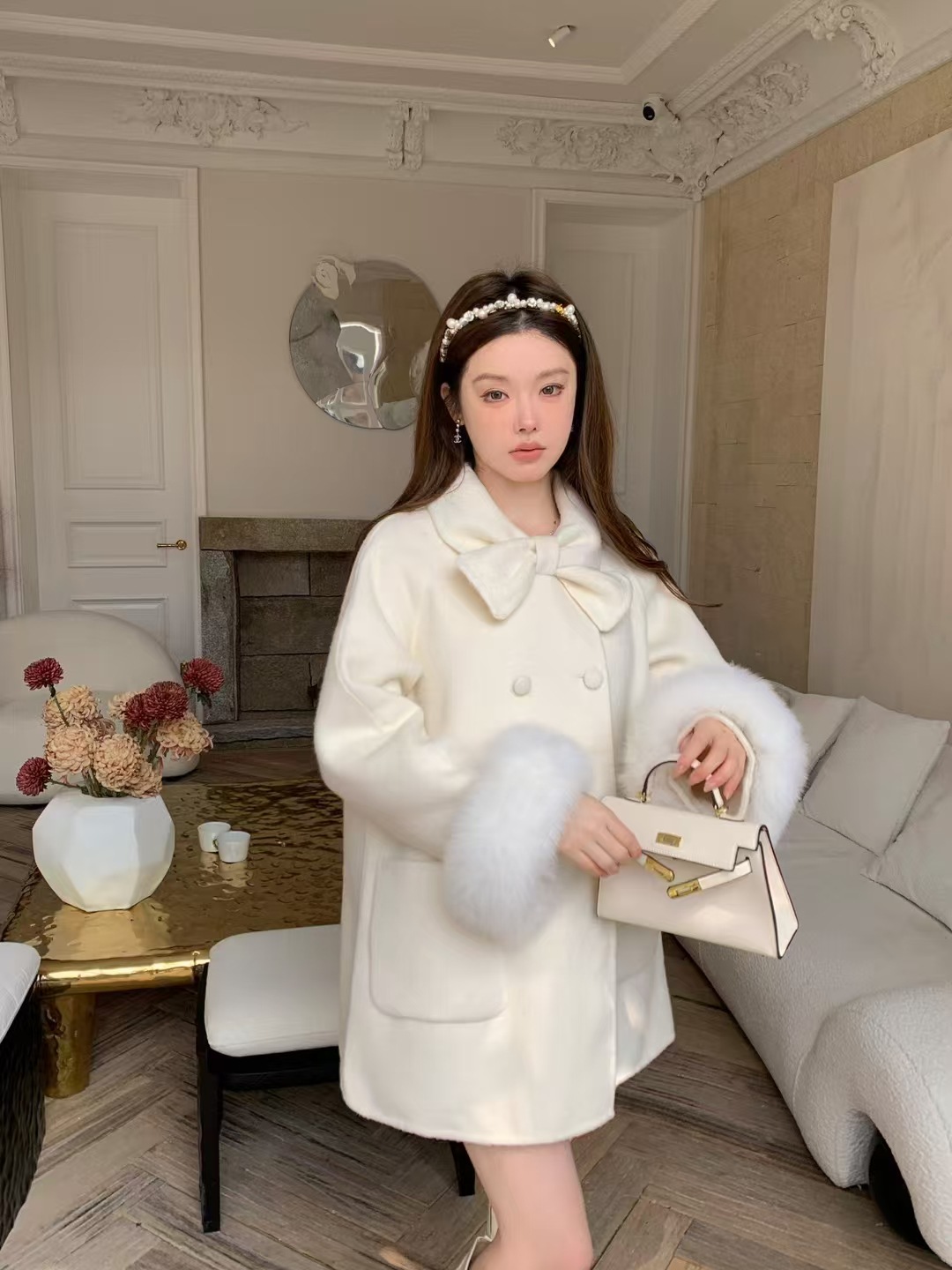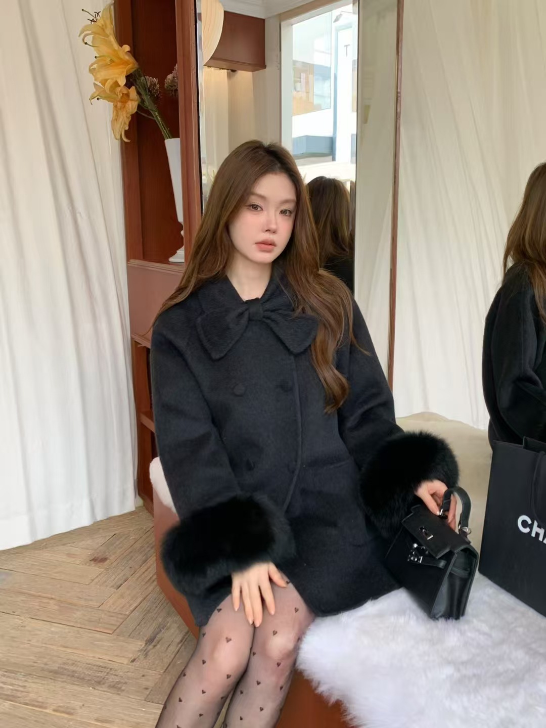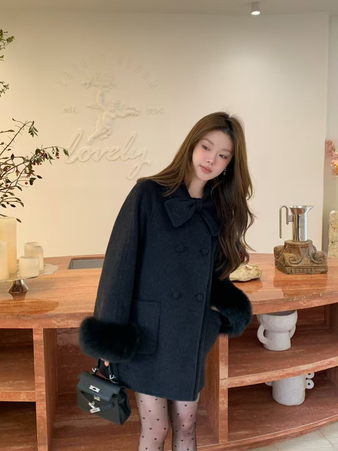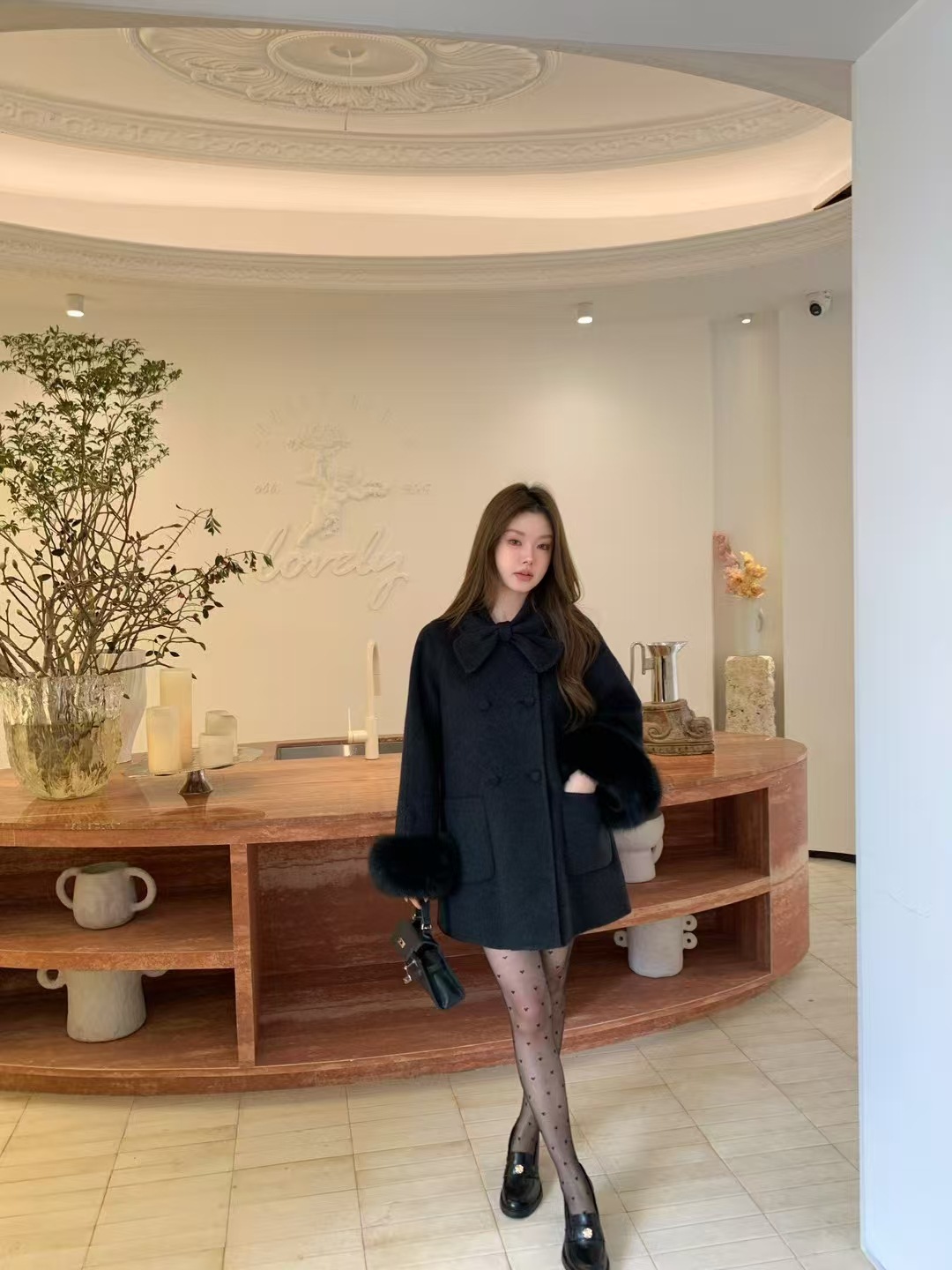 Европейский вокзал новый двухсторонний шерстяной пальто с бантом