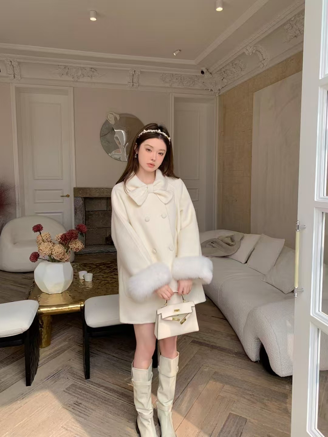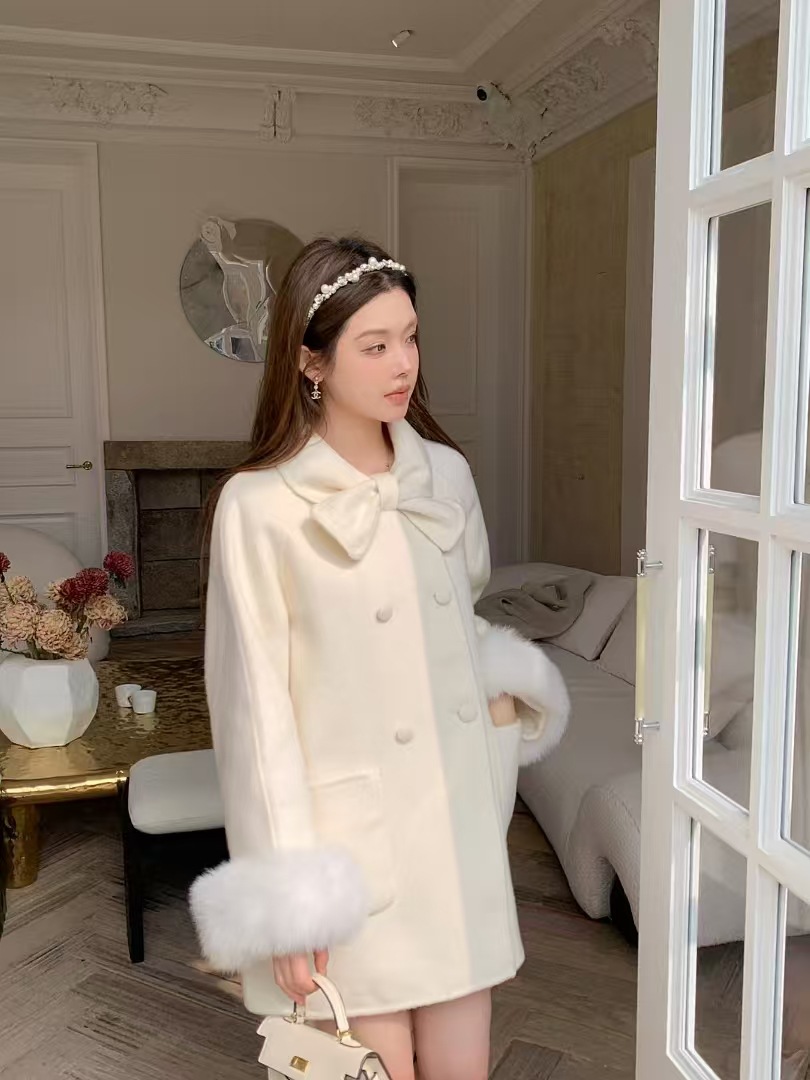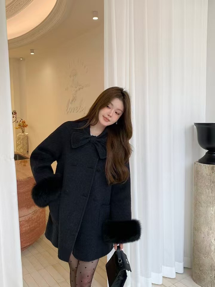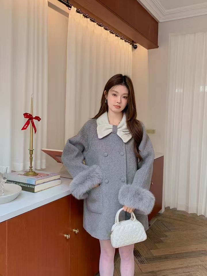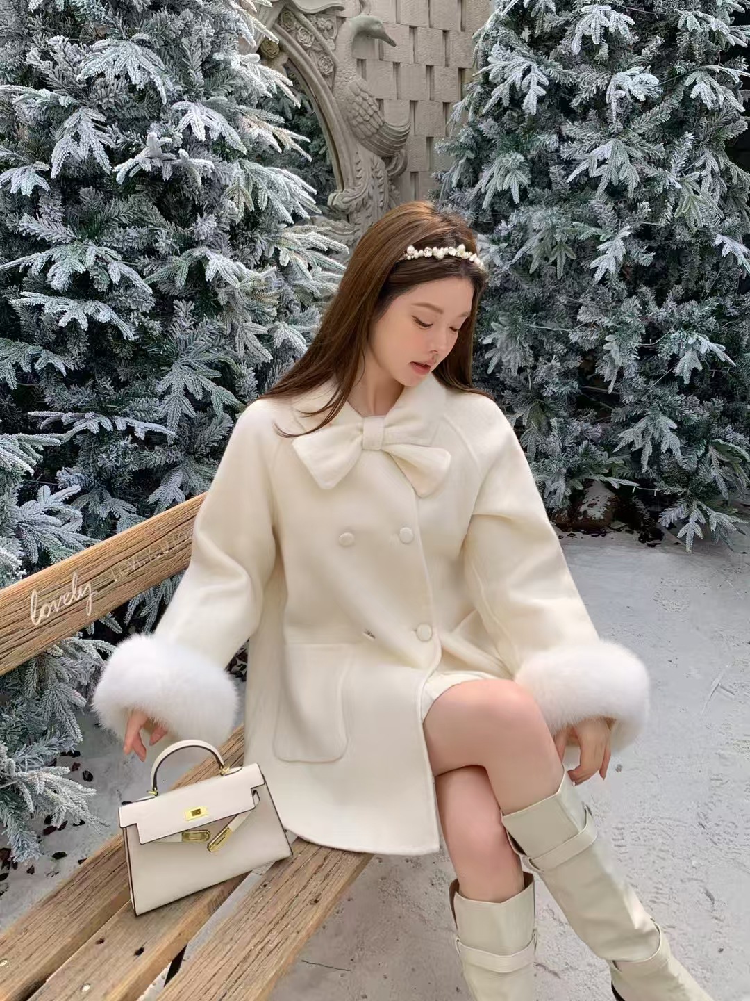 Европейский вокзал новый двухсторонний шерстяной пальто с бантом