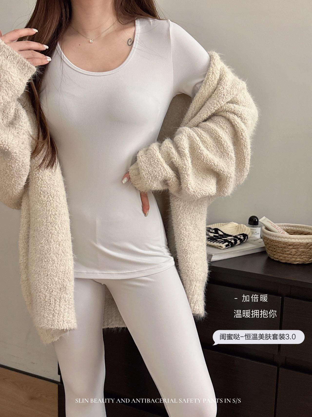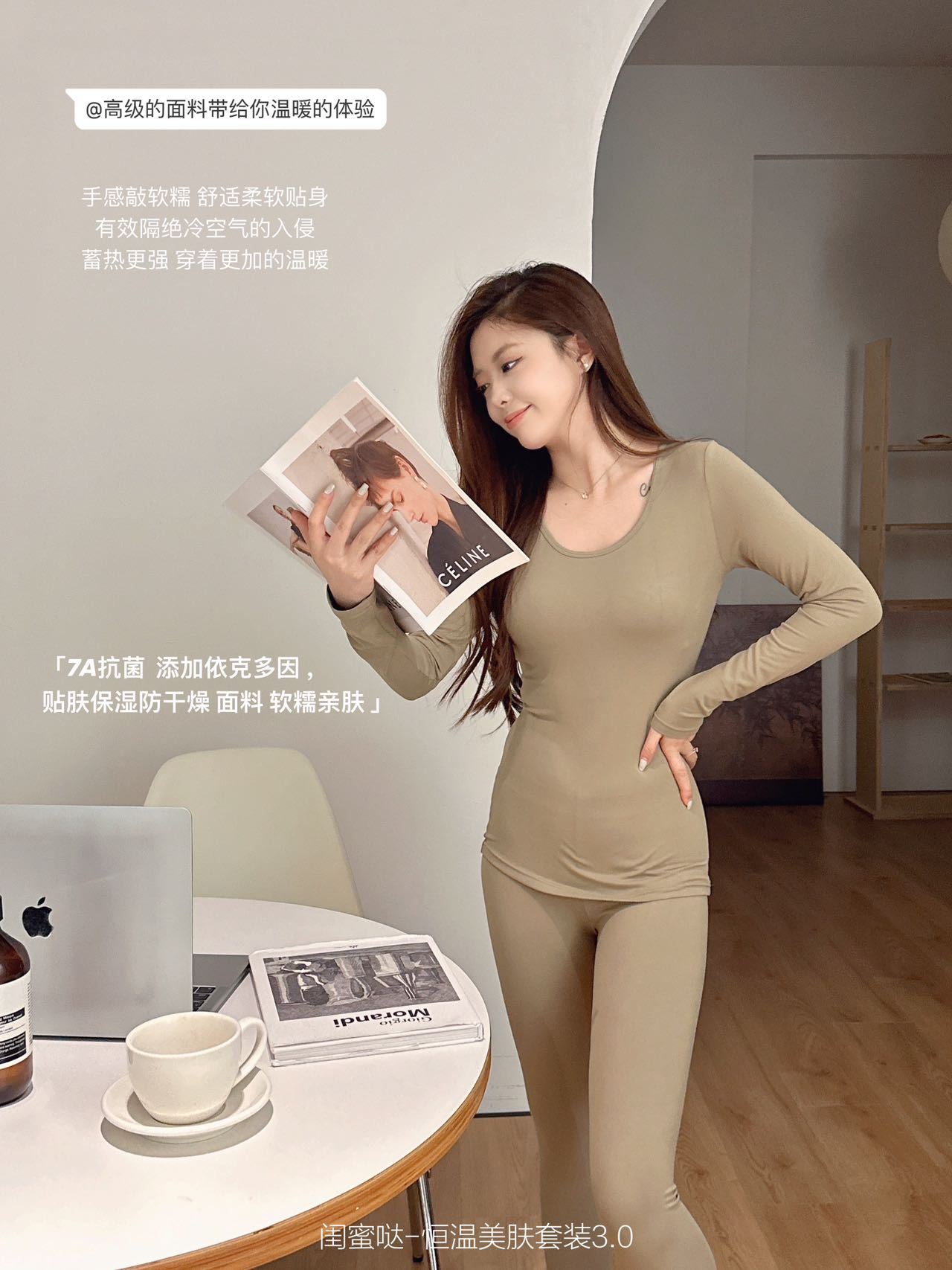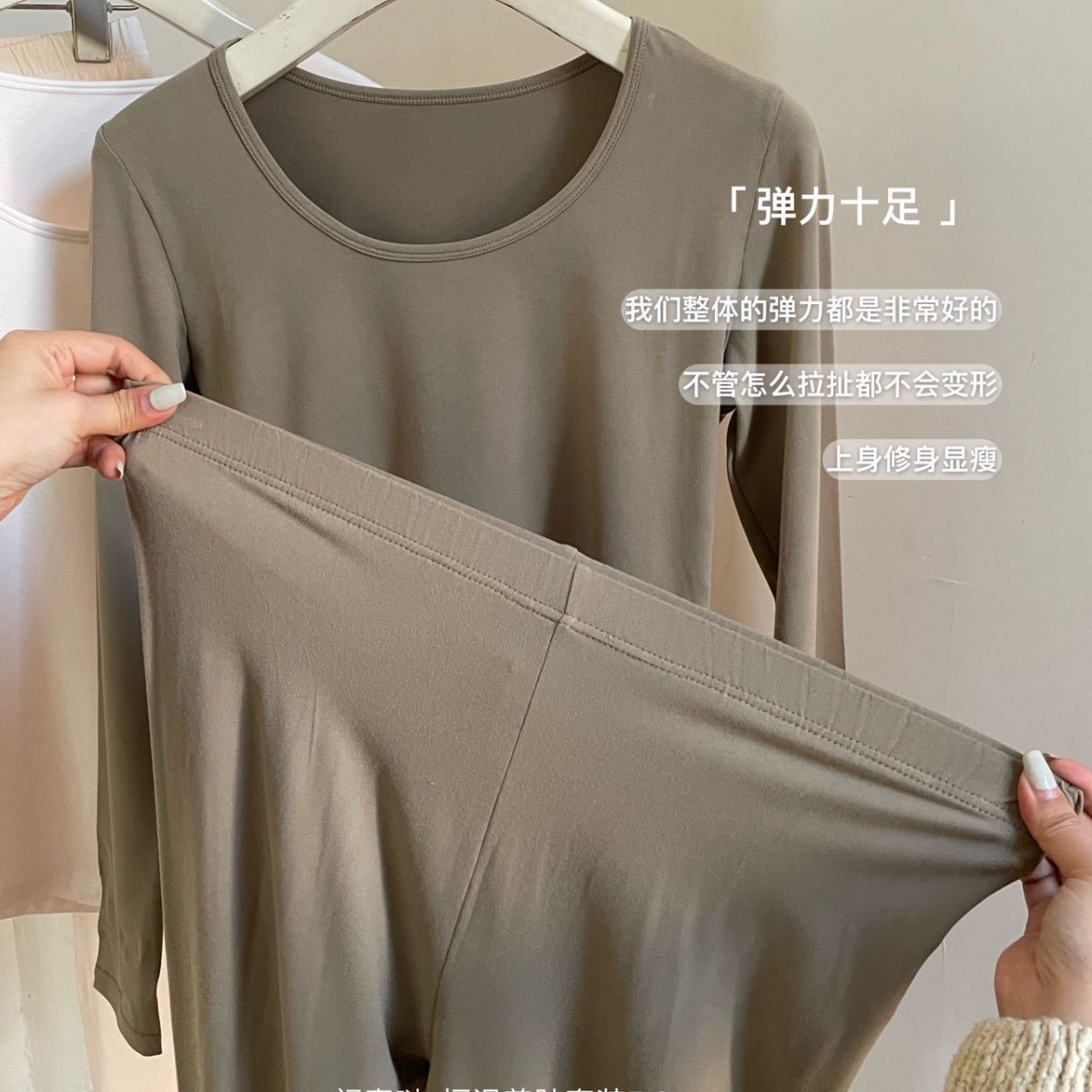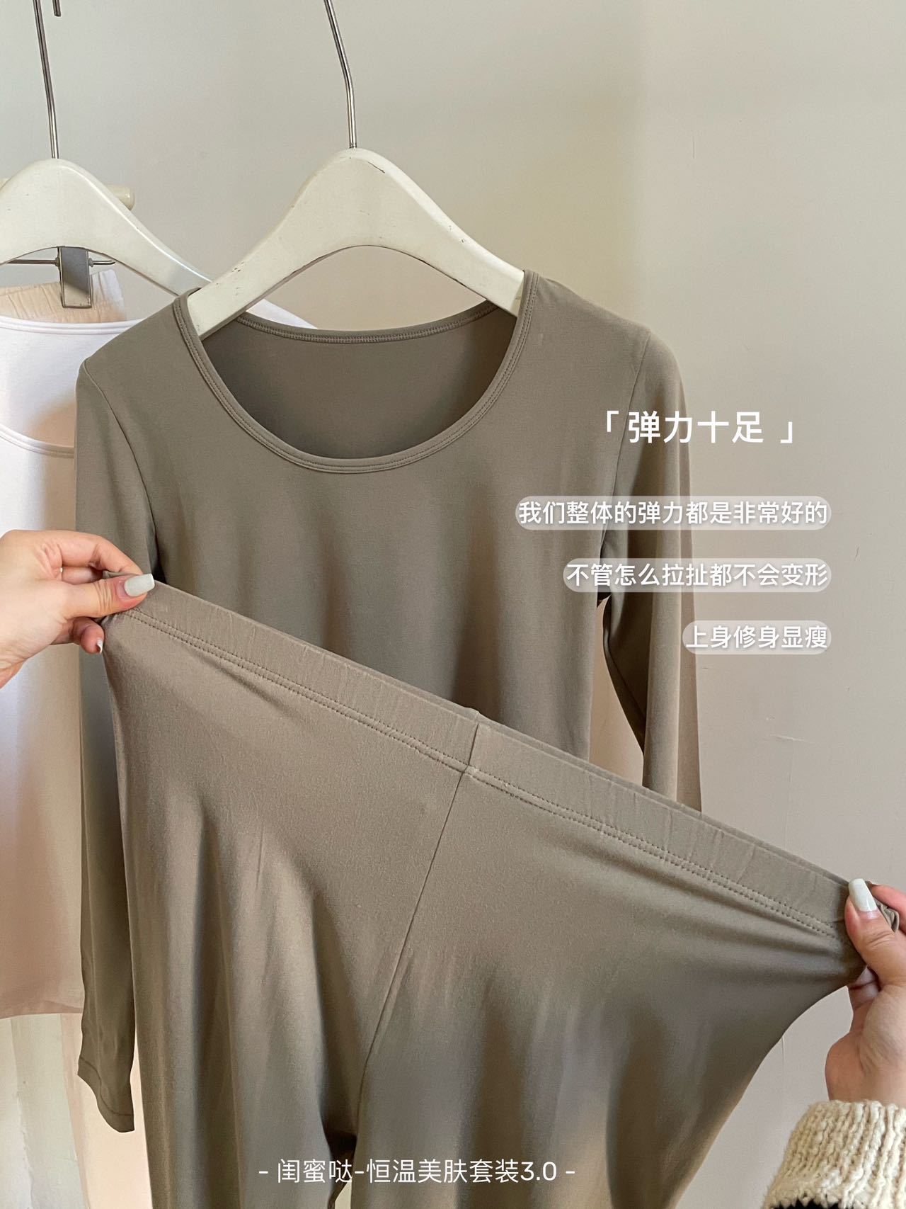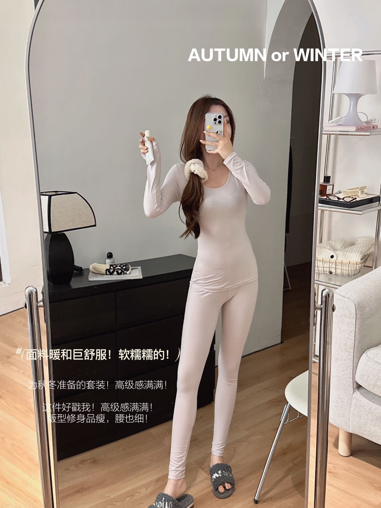 Подруга Da 3.0 Осенняя и зимняя температура Осенняя одежда Осенние брюки Женский костюм Нижний стройный костюм красоты кожи с круглым вырезом