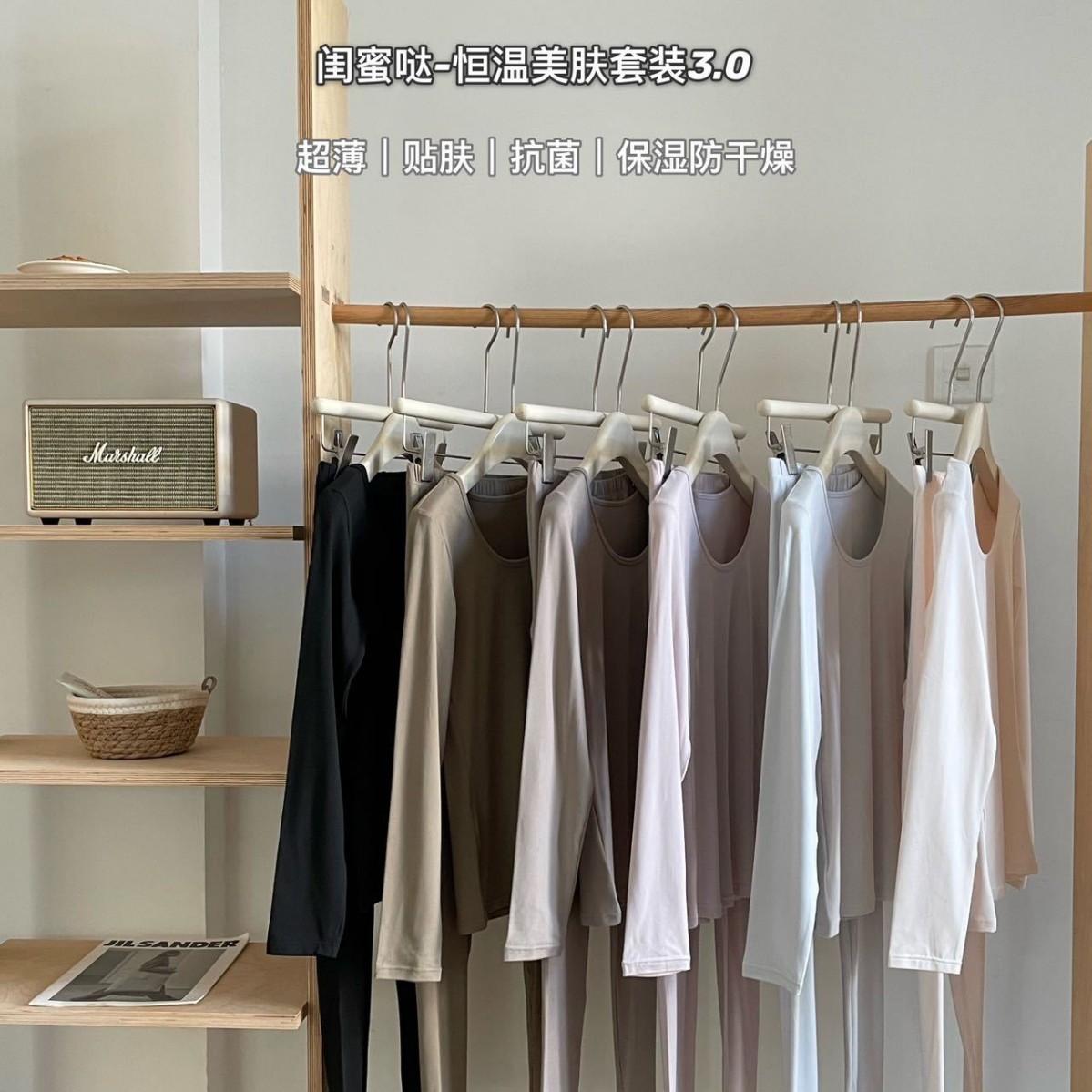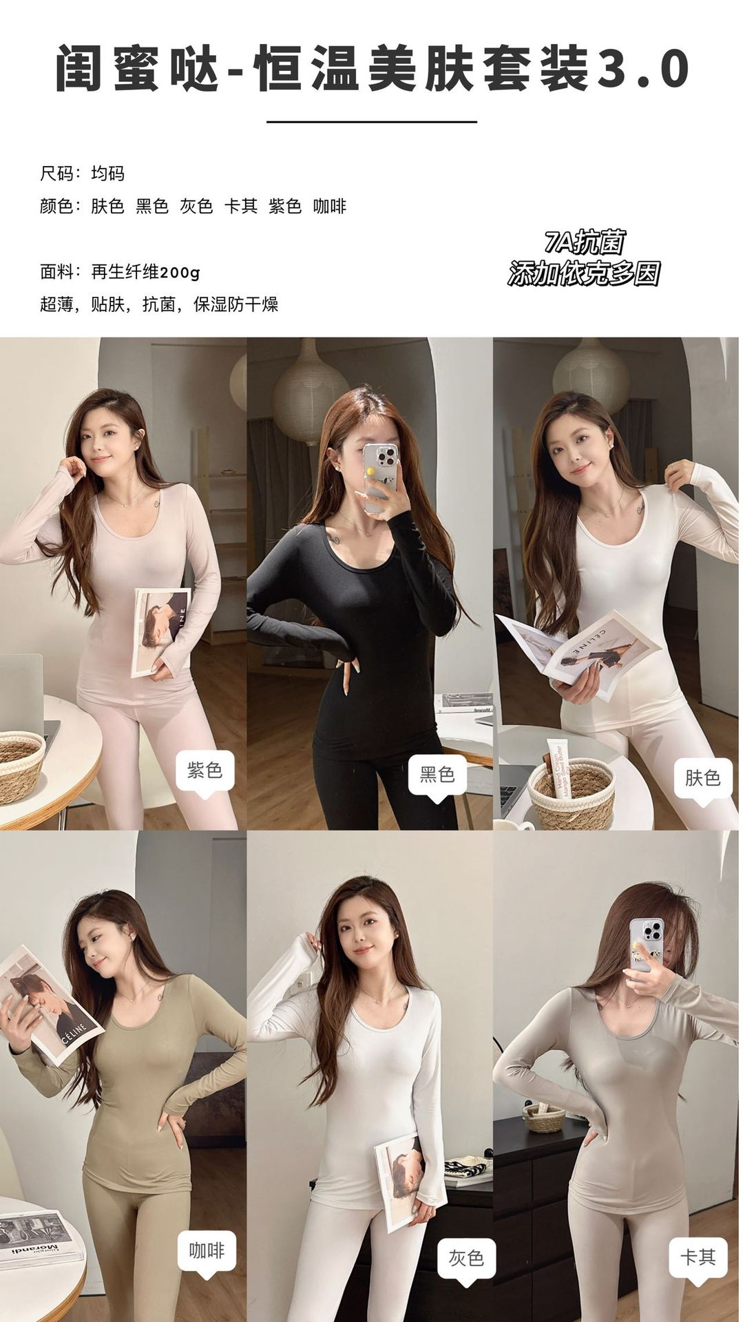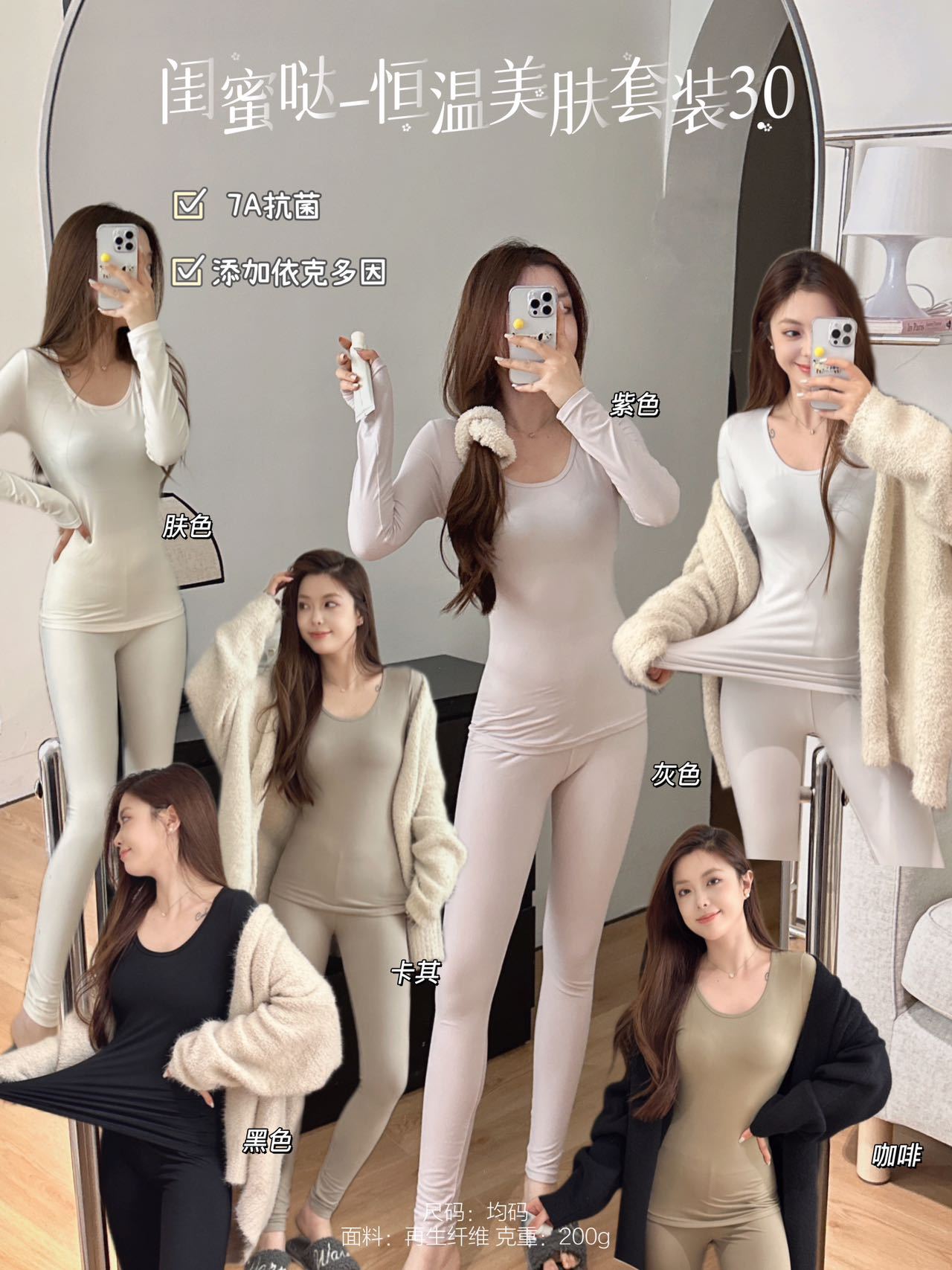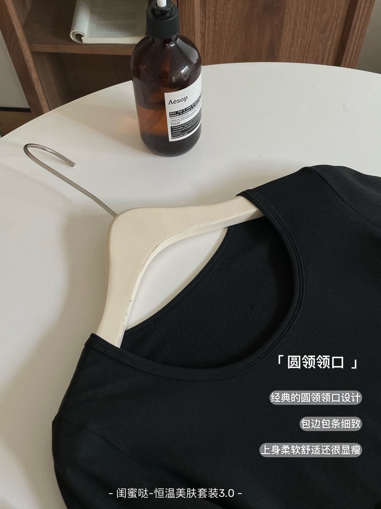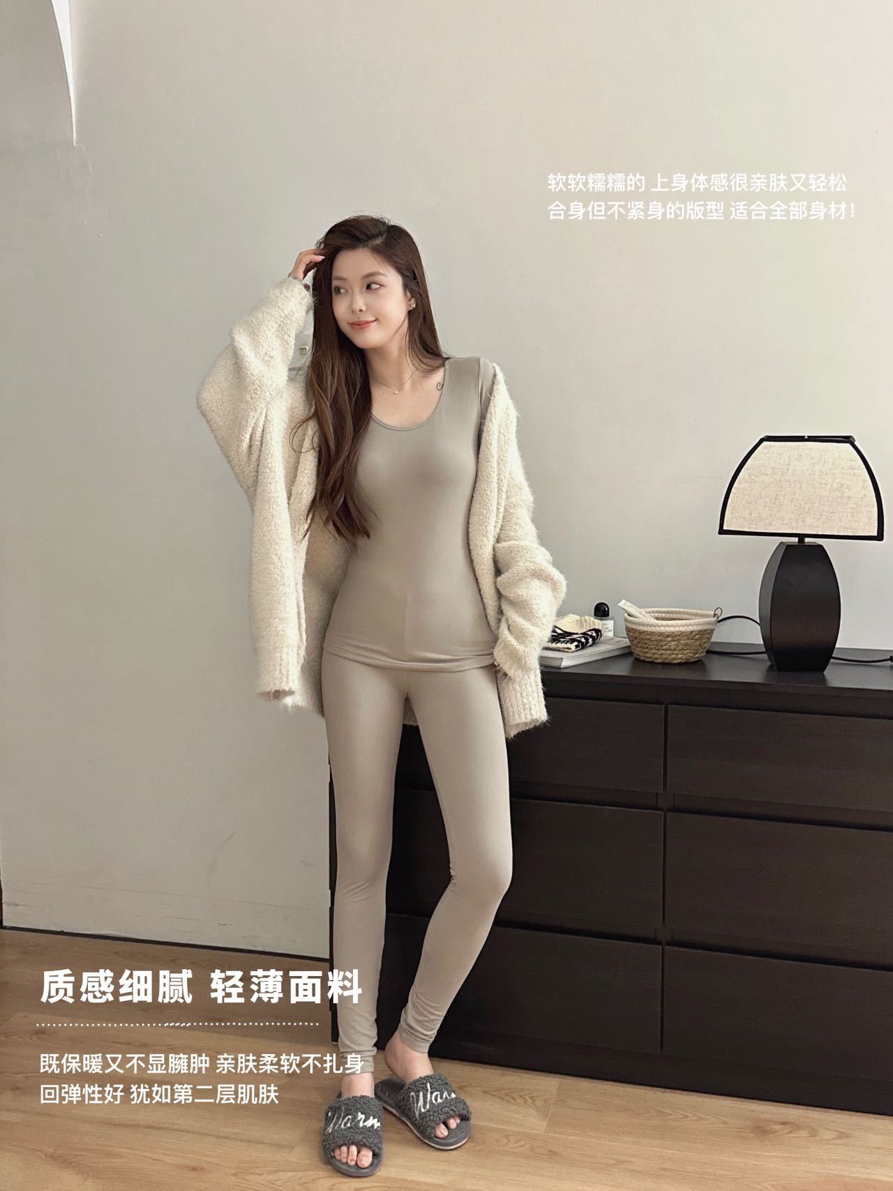 Подруга Da 3.0 Осенняя и зимняя температура Осенняя одежда Осенние брюки Женский костюм Нижний стройный костюм красоты кожи с круглым вырезом