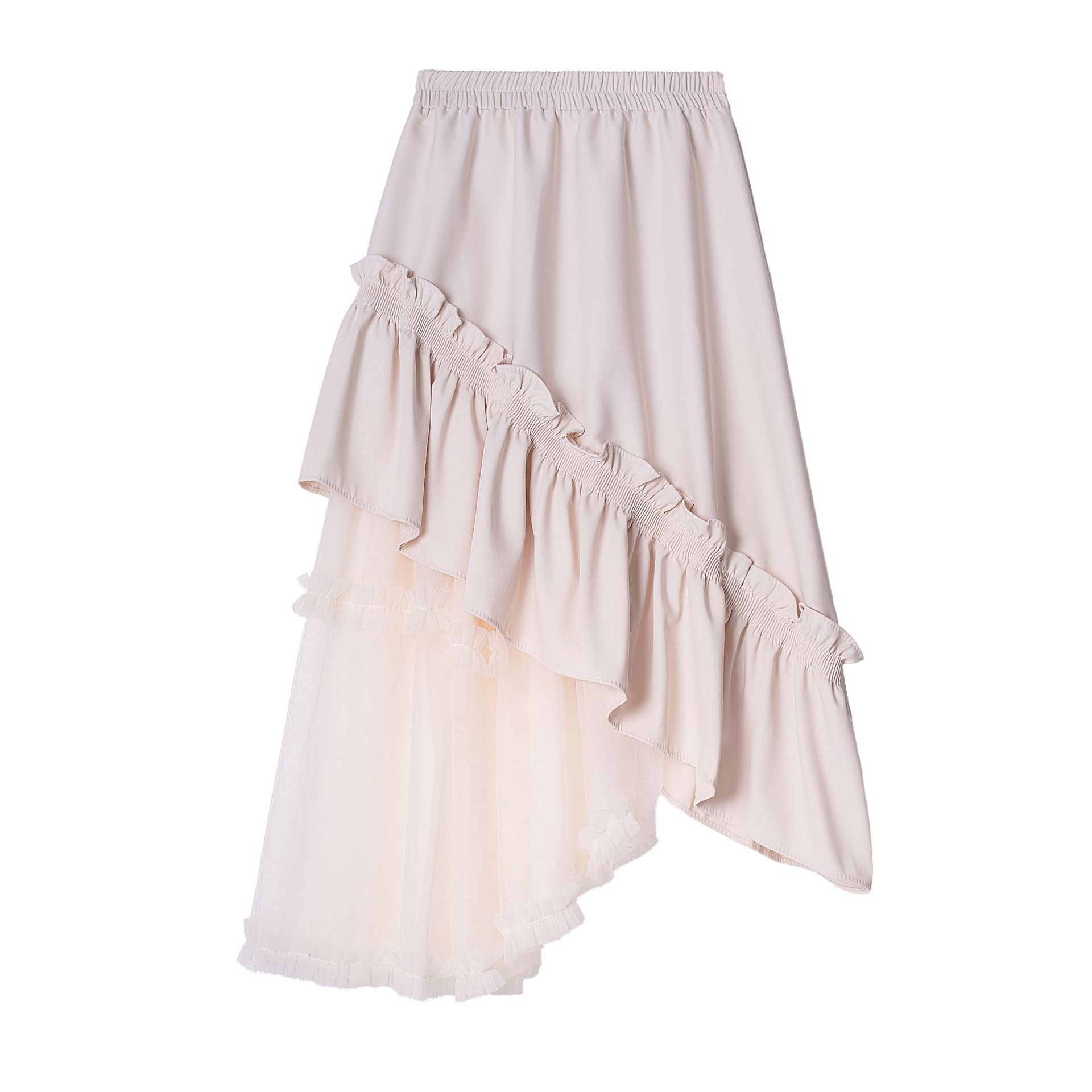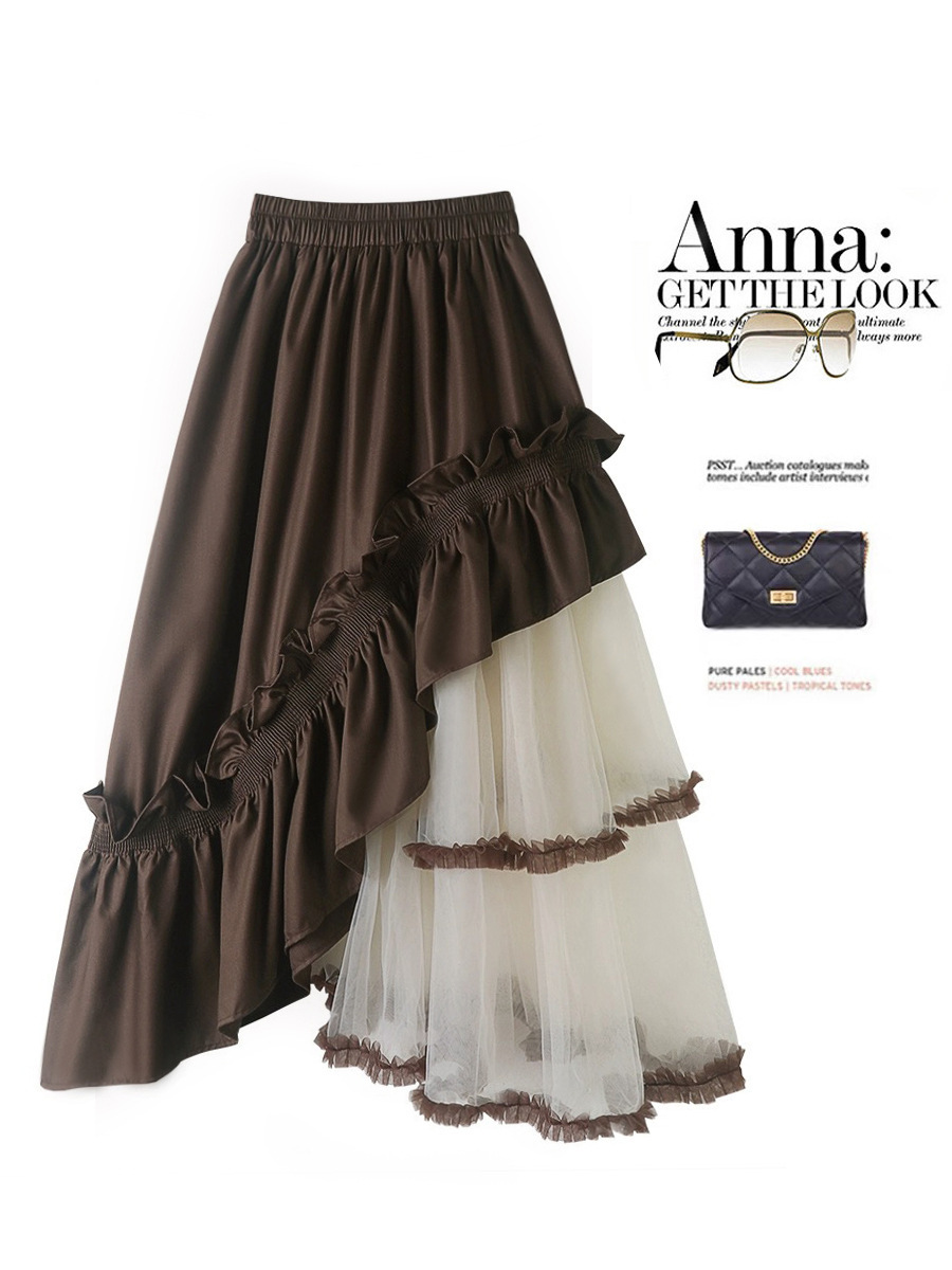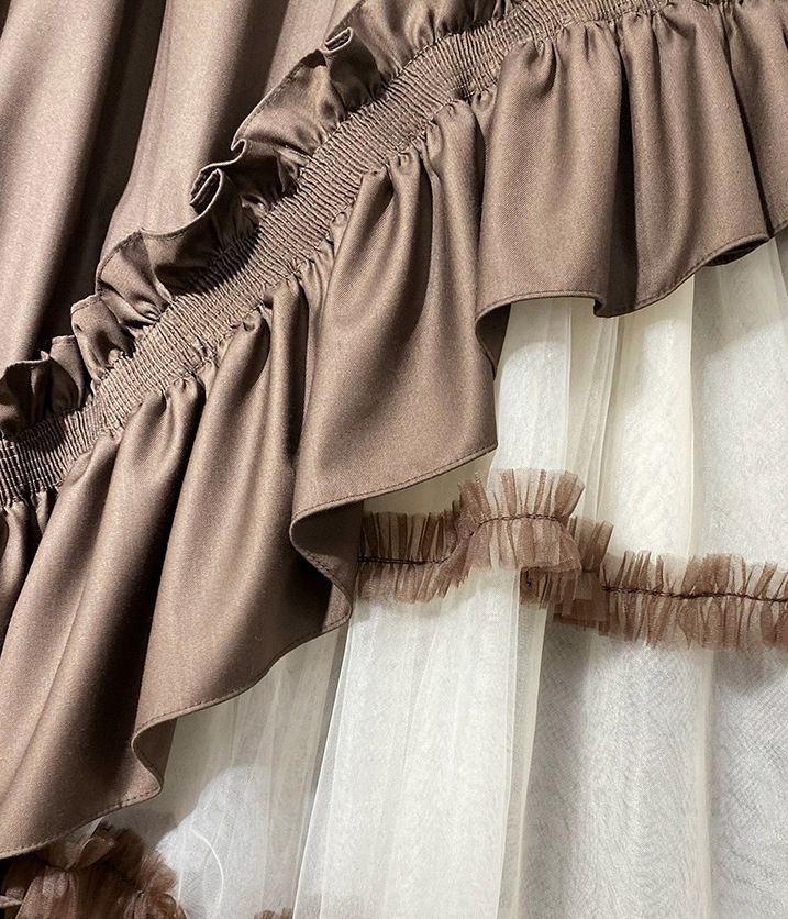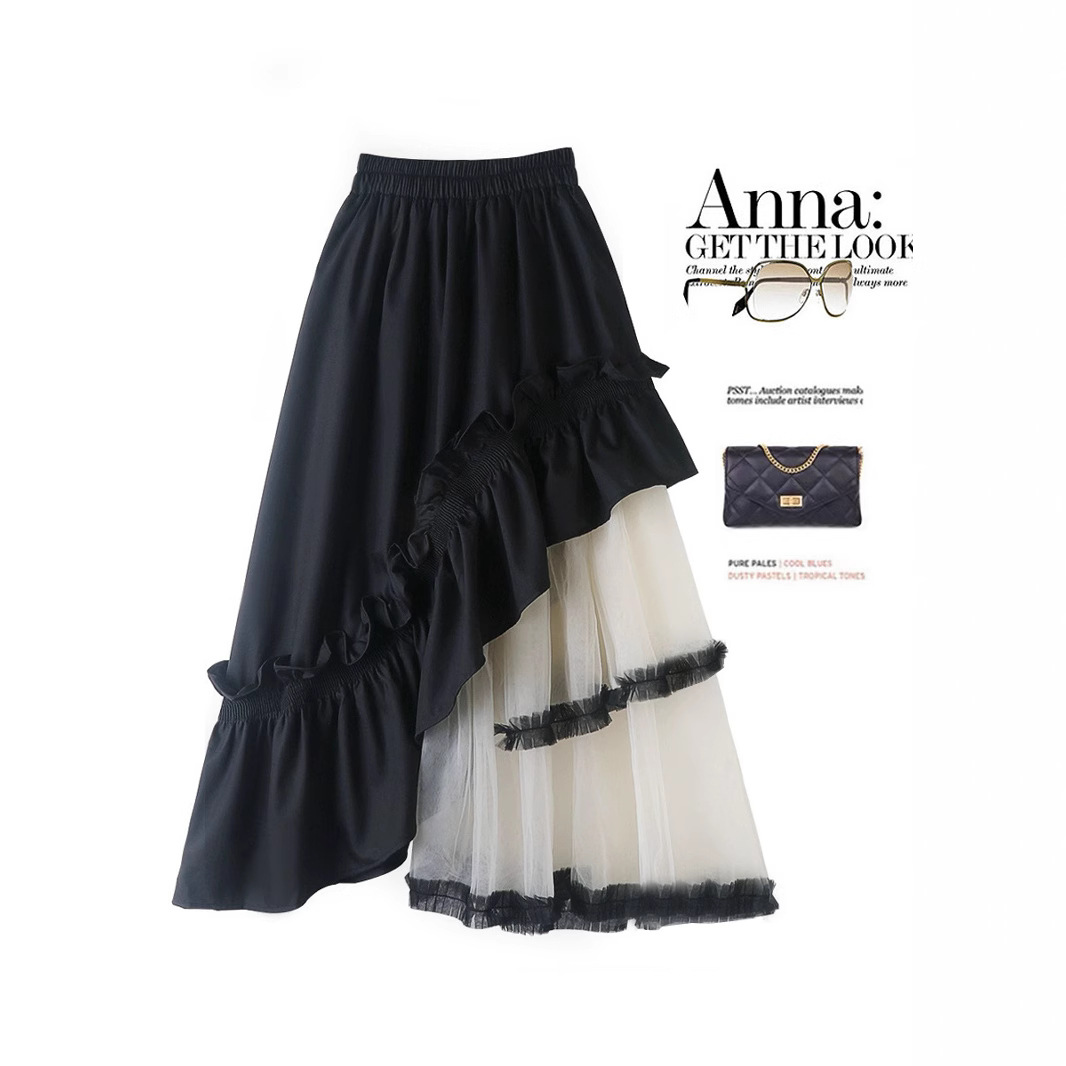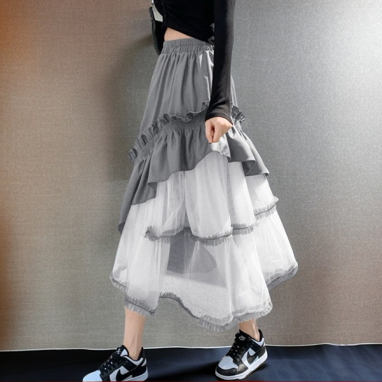 Французский стиль уличного ветра контактный цвет деревянный грибок, сшитая юбка из сетки, юбка, летняя новая ниша дизайн, модная юбка среднего и длинного