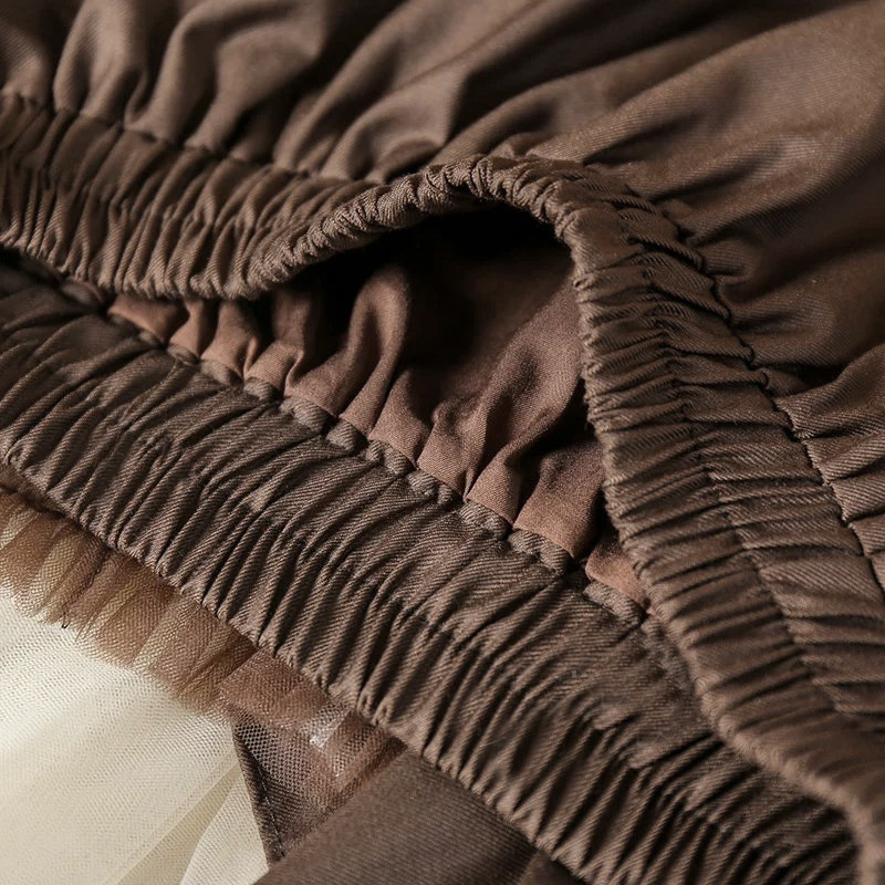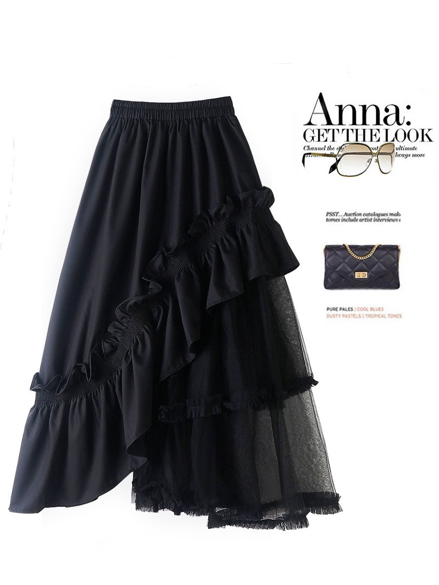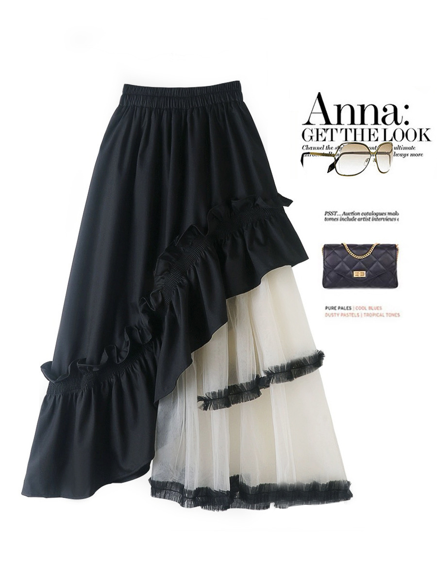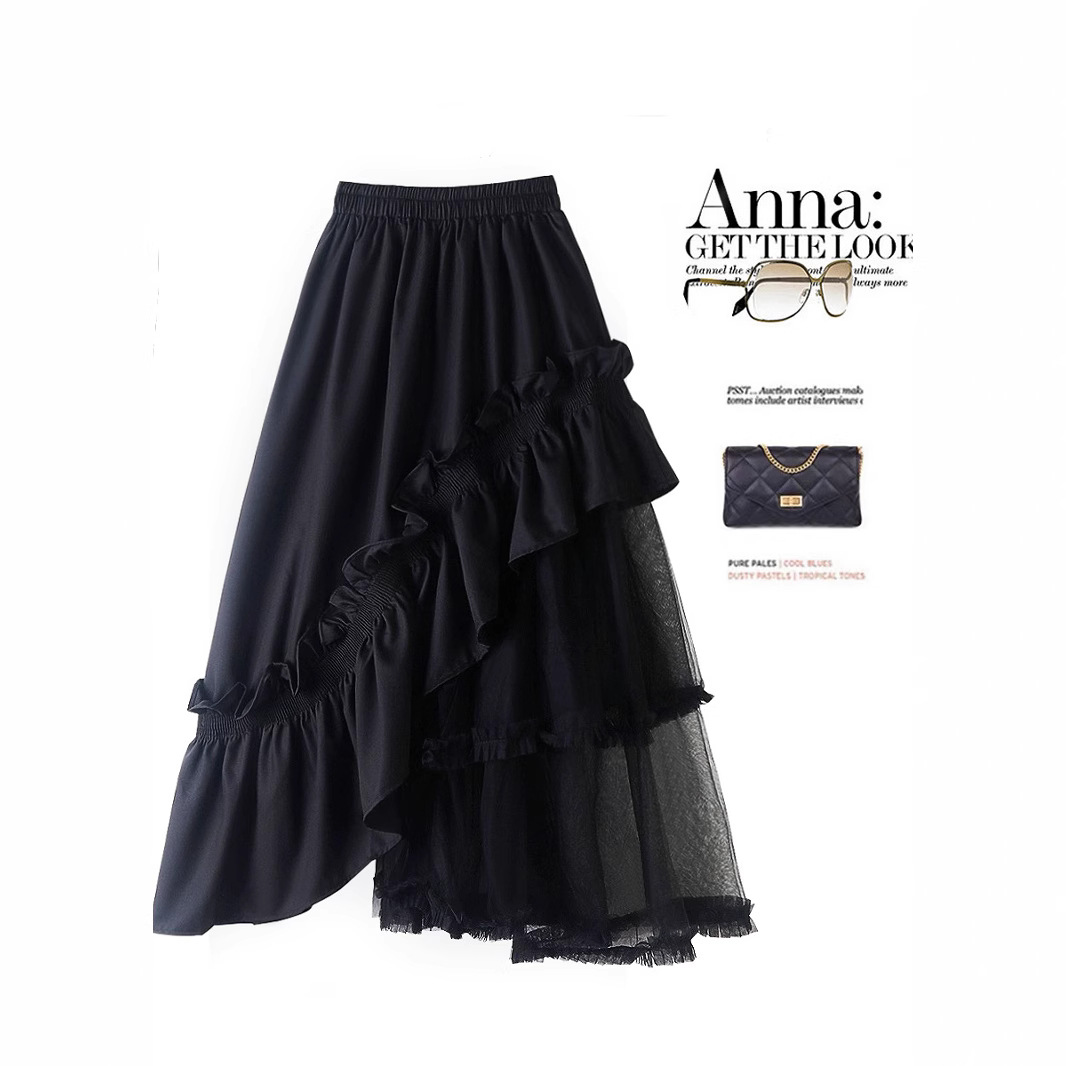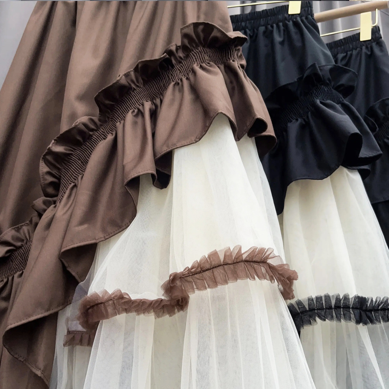 Французский стиль уличного ветра контактный цвет деревянный грибок, сшитая юбка из сетки, юбка, летняя новая ниша дизайн, модная юбка среднего и длинного