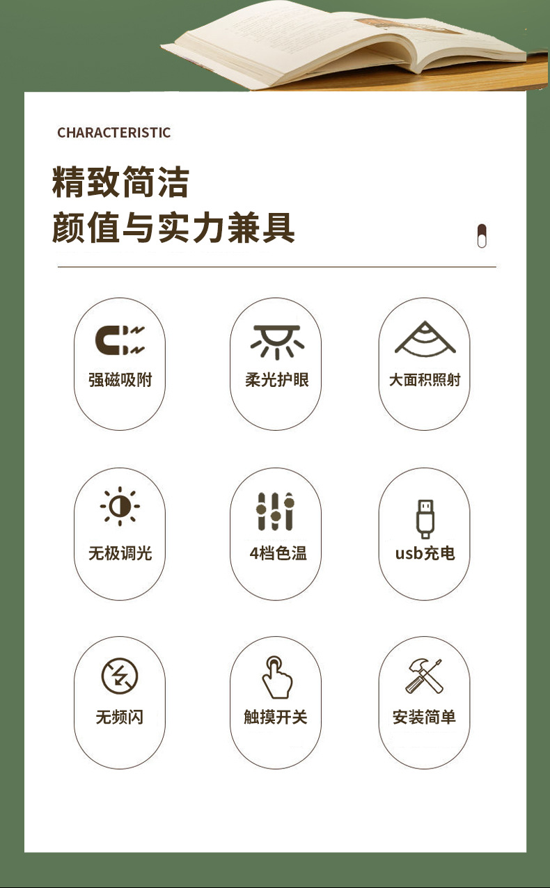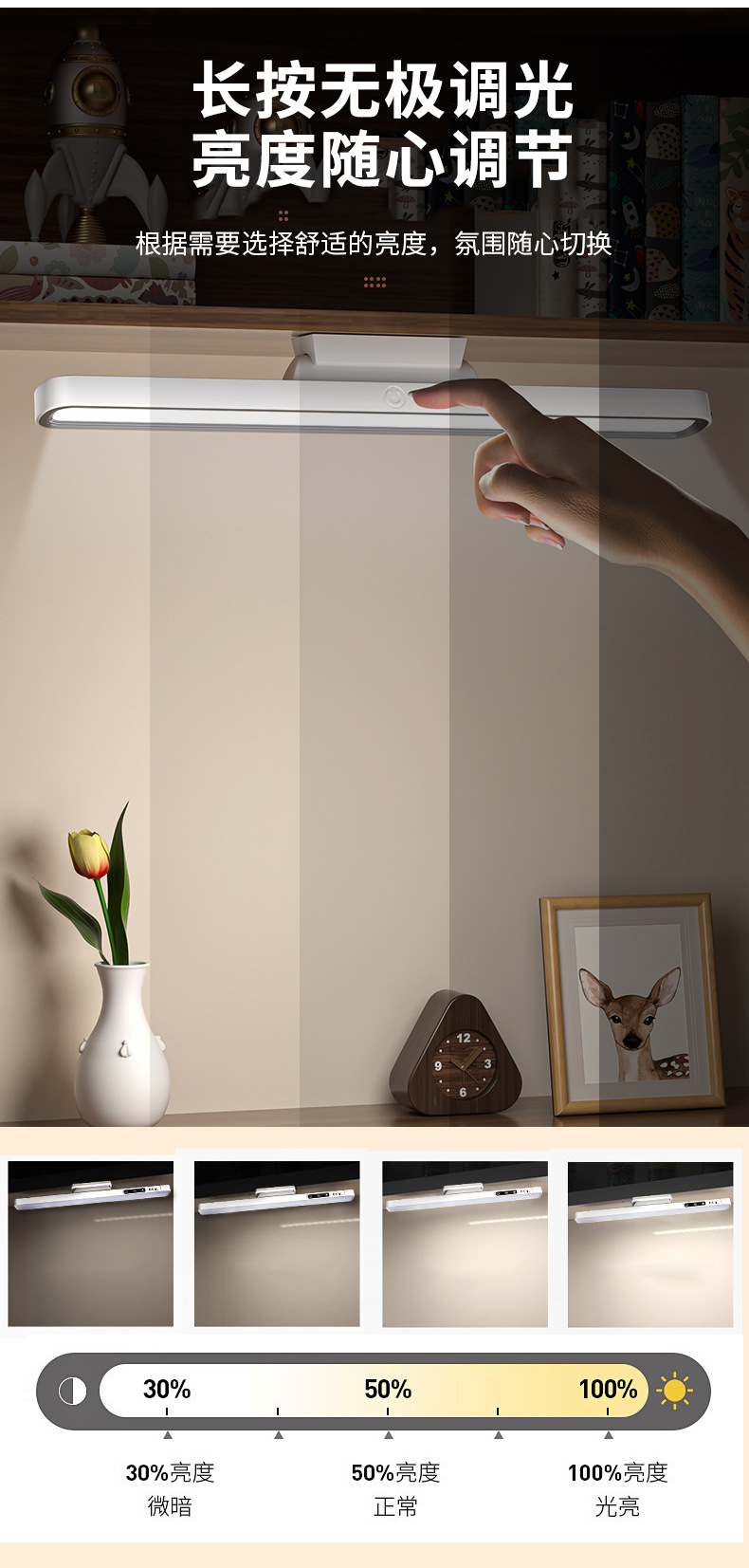 Настольная лампа для защиты глаз общежития перезаряжаемая магнитная лампа