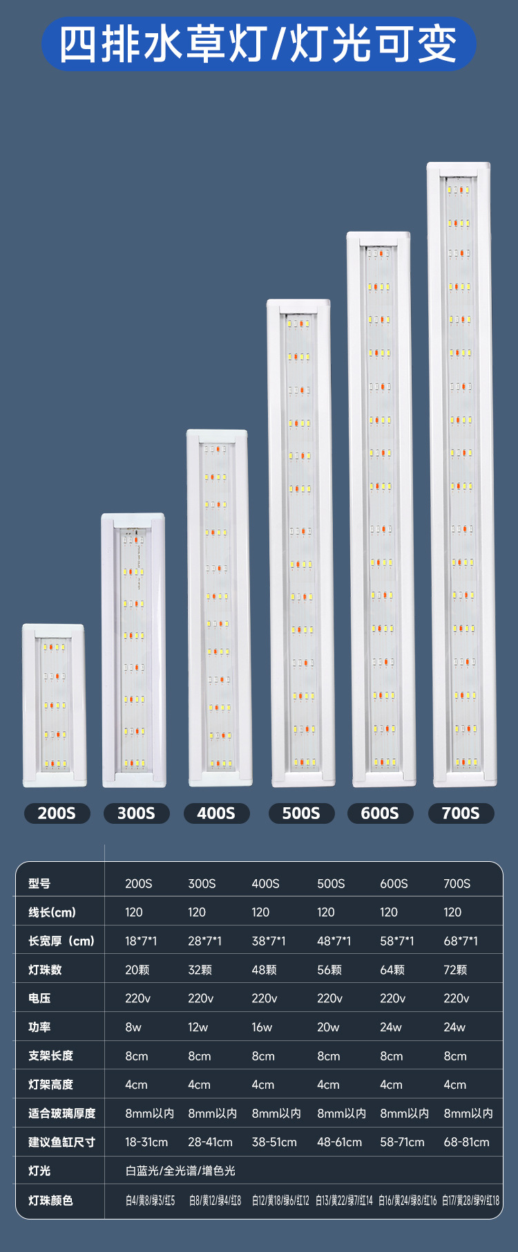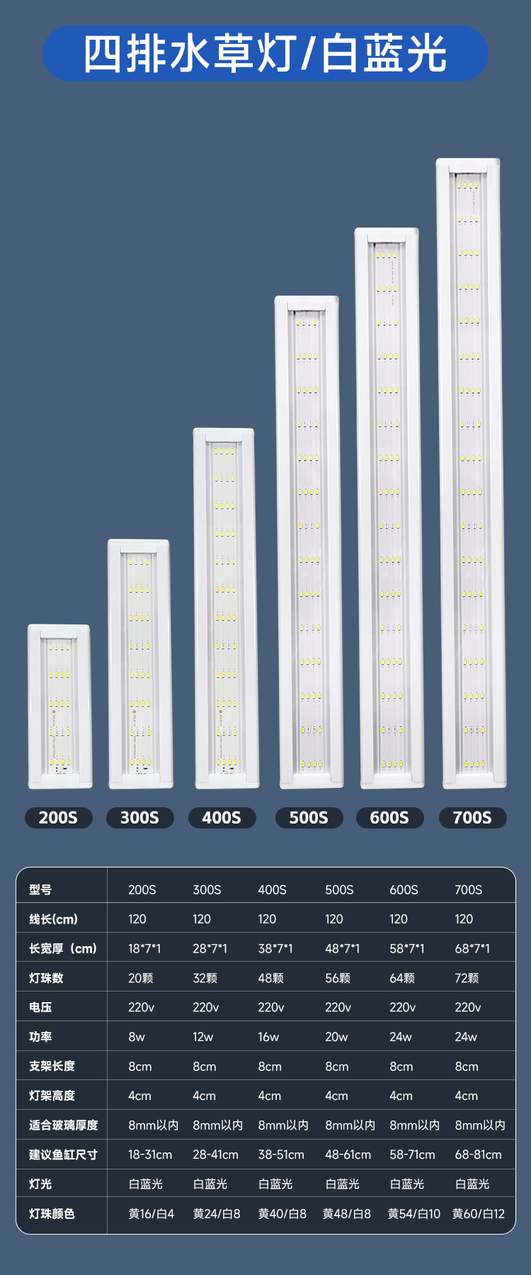 Три ряда светильников для аквариума белый и синий свет 200 с.; Четыре ряда аквариумов огни белого и синего света 200 с.; Четыре ряда аквариумов огни белого и синего света 300 с.; Четыре ряда аквариумов огни белого и синего света 400 с.; Четыре ряда аквариумов огни белого и синего света 500 с.; Четыре ряда аквариумов огни белого и синего света 600 с.; Четыре ряда аквариумов огни белого и синего света 700 с.; Четыре ряда выключателя света аквариума затемнение 200 с.; Четыре ряда выключателя света аквариума затемнение 300 с; Четыре ряда выключателя света аквариума затемнение 400 с; Четыре ряда выключателя света аквариума с затемнением 500 с; Четыре ряда выключателя света аквариума затемнение 600 с; Четыре ряда выключателя света аквариума затемнение 700 с; Шесть рядов фонарей для аквариумов с полным спектром 200 с.; Шесть рядов фонарей для аквариумов с полным спектром 300 с.; Шесть рядов фонарей для аквариумов с полным спектром 400 с.; Шесть рядов фонарей для аквариумов с полным спектром 500 с.; Шесть рядов фонарей для аквариумов с полным спектром 600 с.; Шесть рядов фонарей для аквариумов полного спектра 700 с.