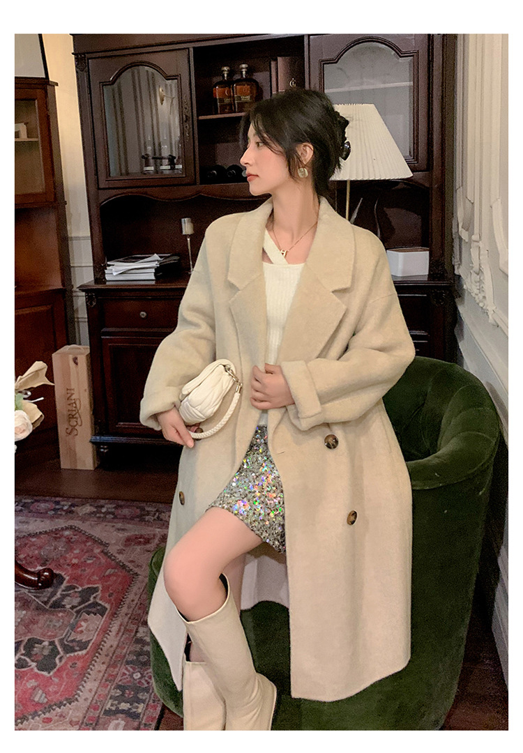 Черного цвета кашемир из альпака среднего и длинного пальто