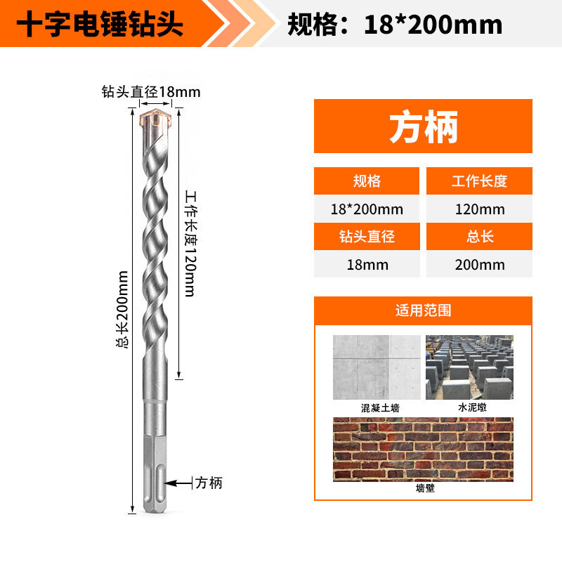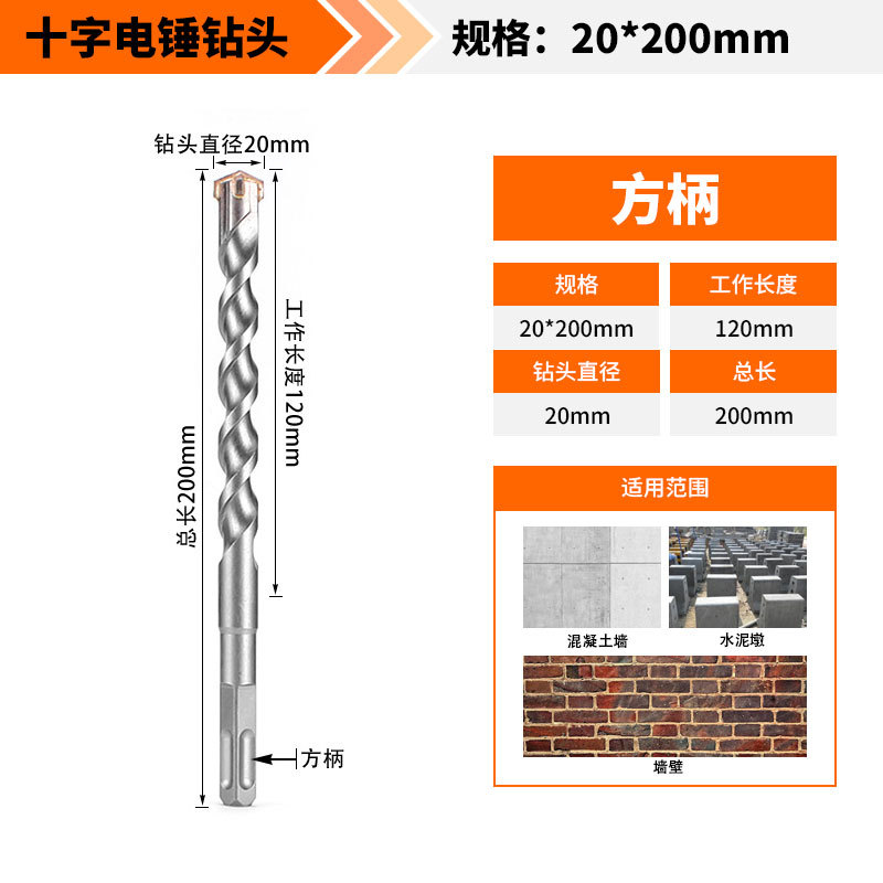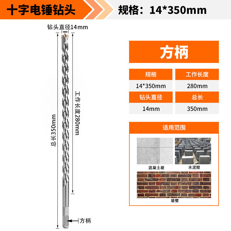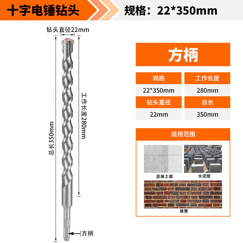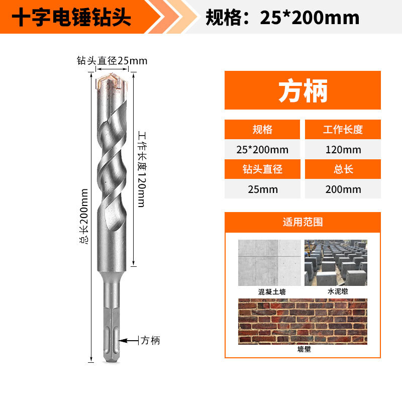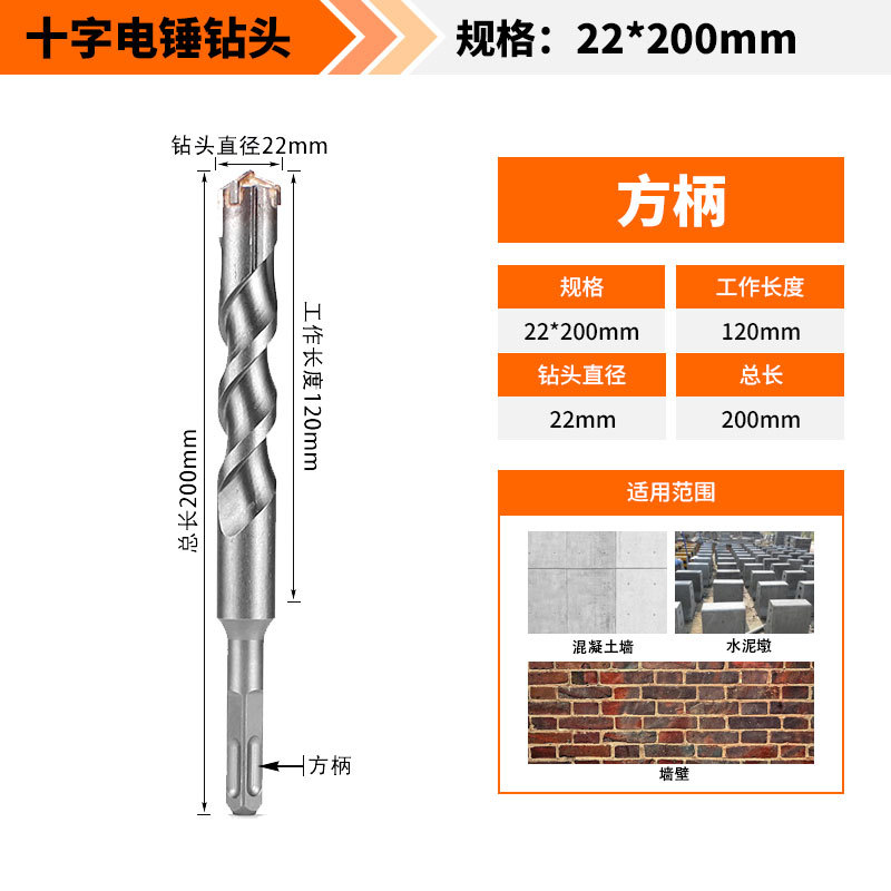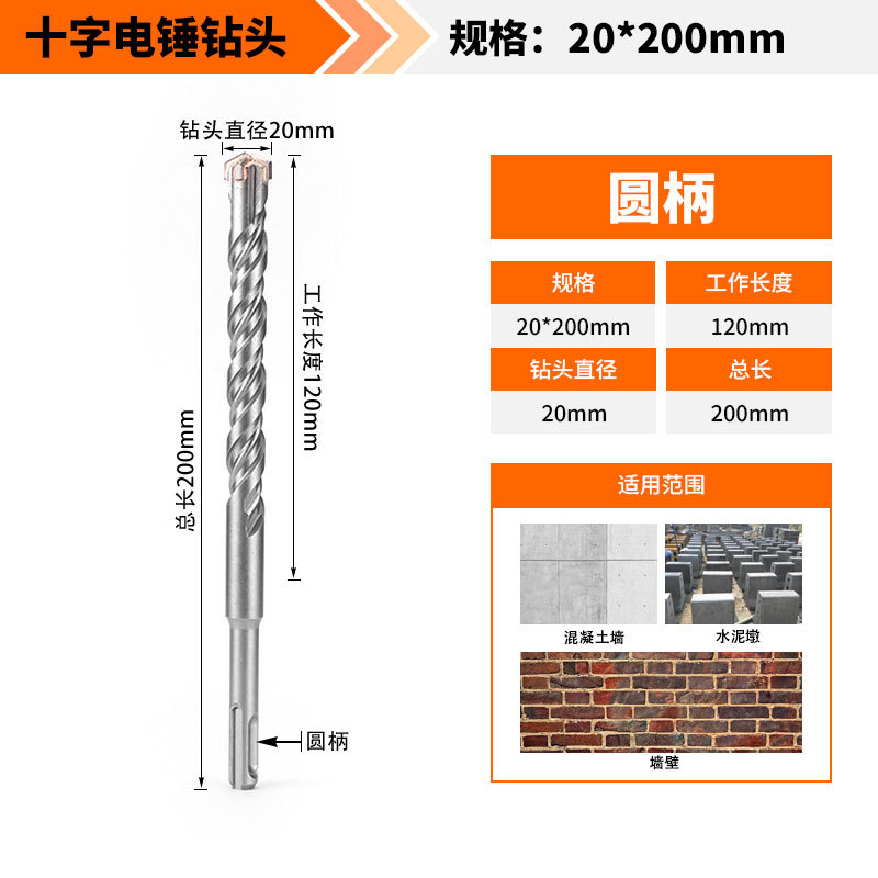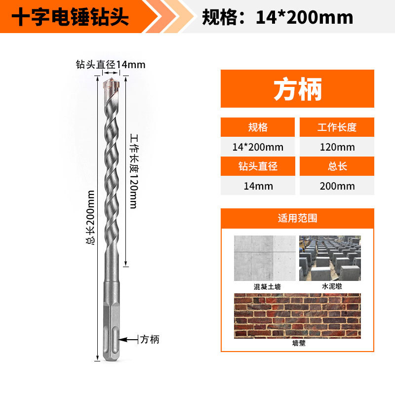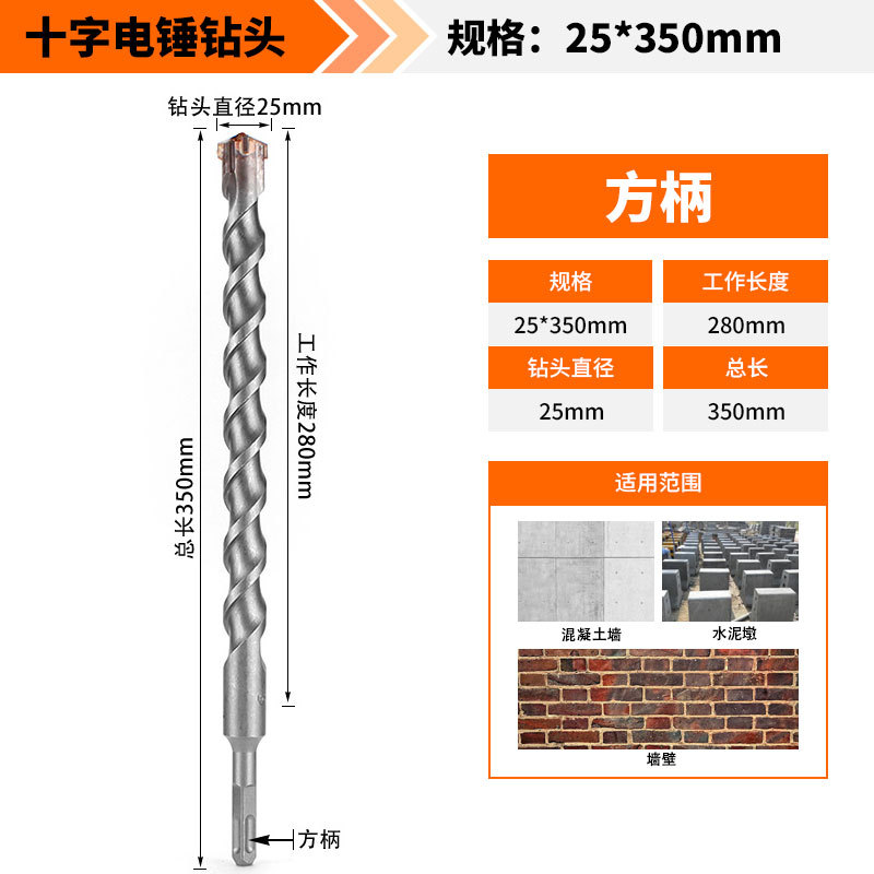 Крест-молот ударный сверло бетон пробивает отверстия Квадратная ручка через стену Круглая ручка через стену вращает сплав с длинным четырехлезвием