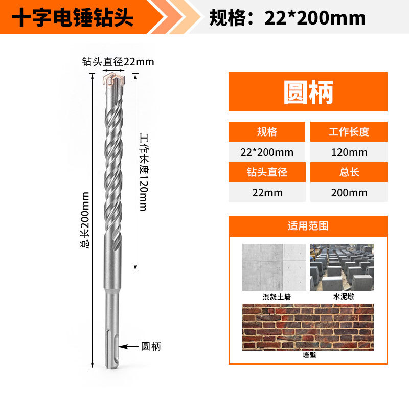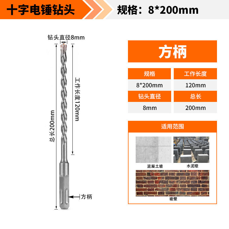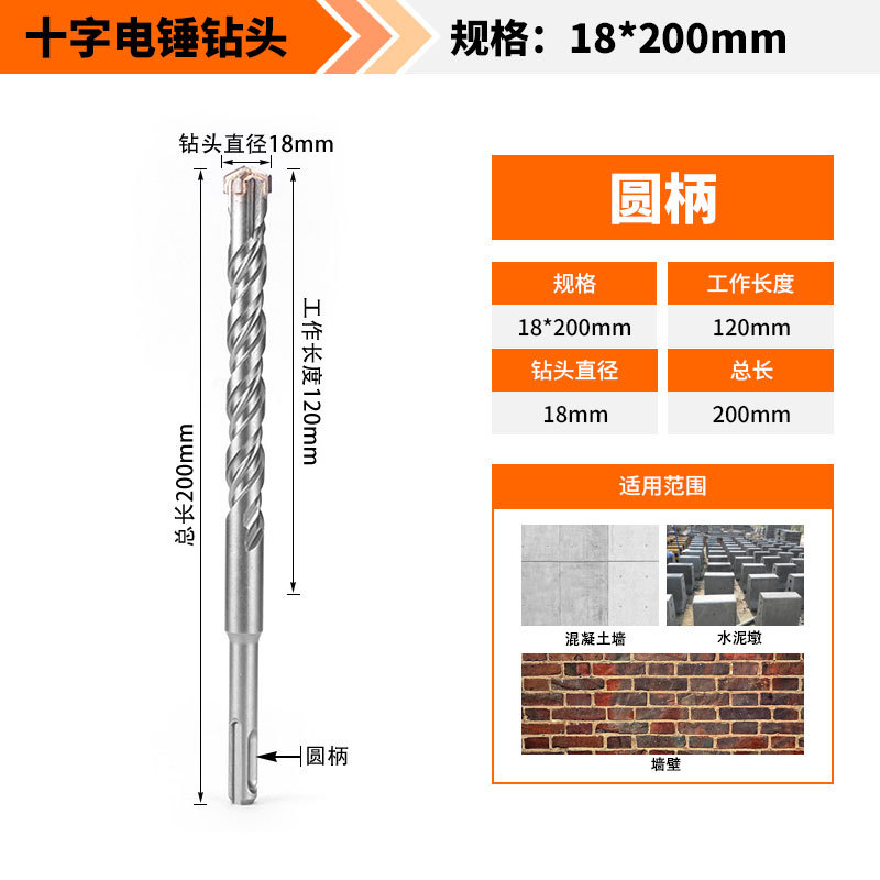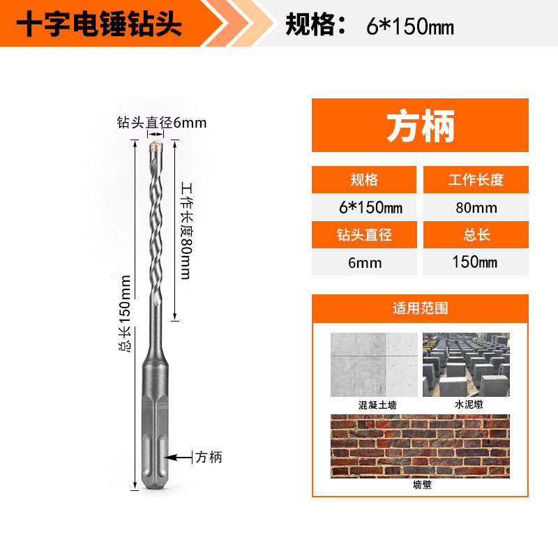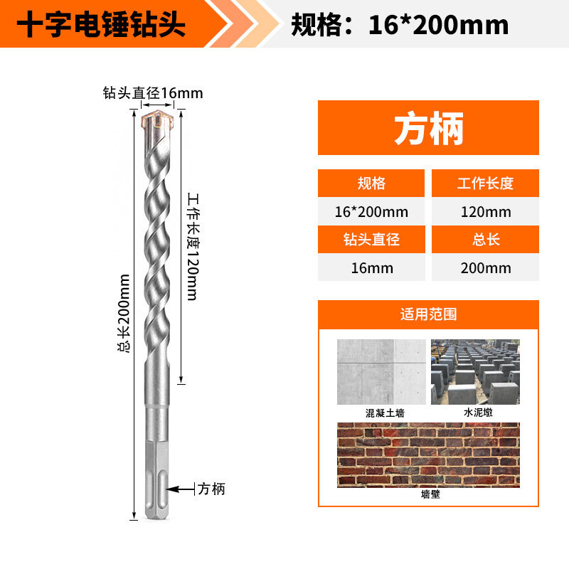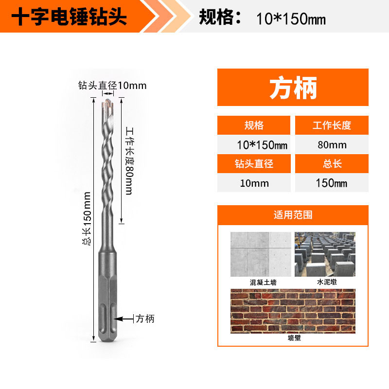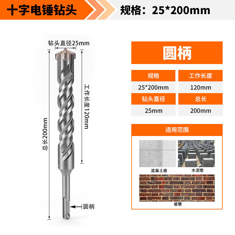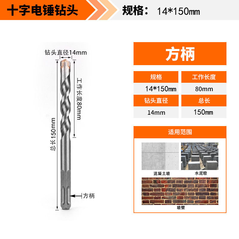 Крест-молот ударный сверло бетон пробивает отверстия Квадратная ручка через стену Круглая ручка через стену вращает сплав с длинным четырехлезвием