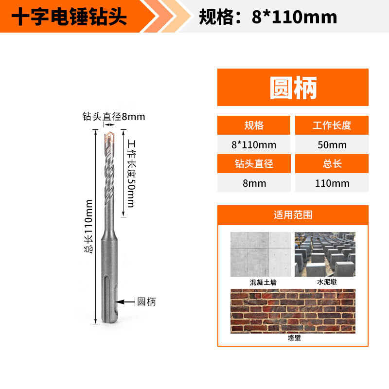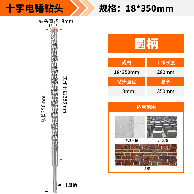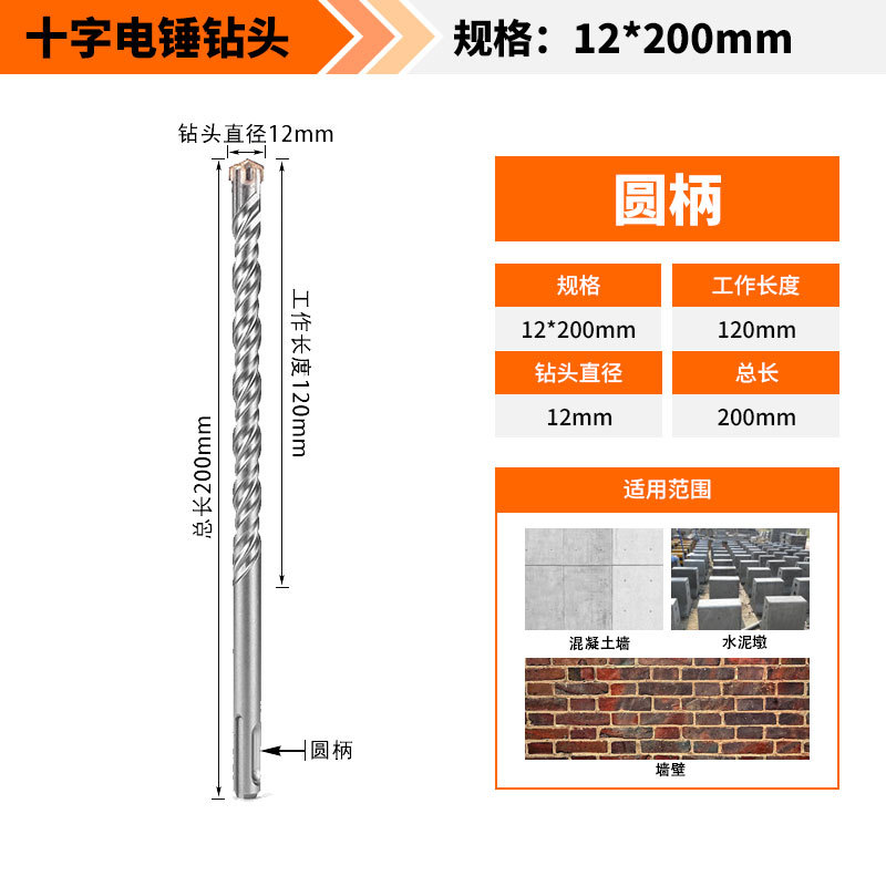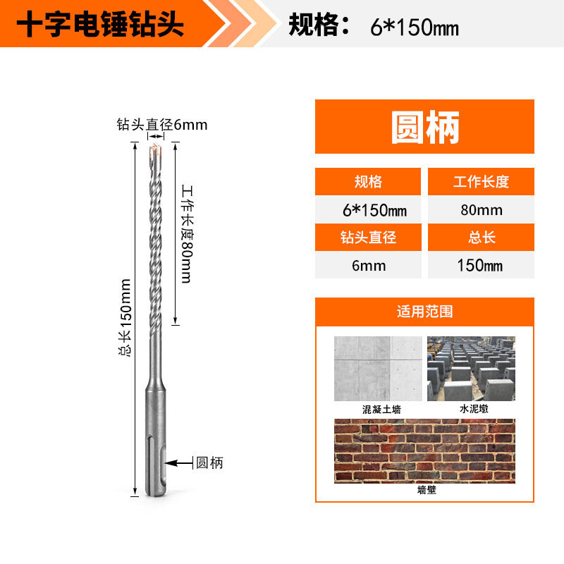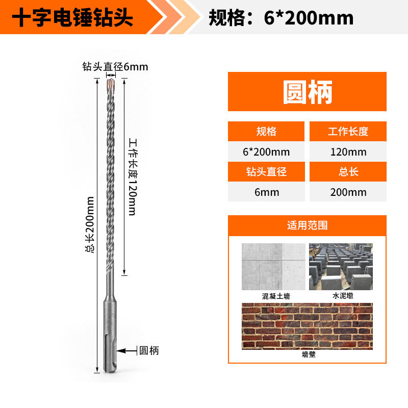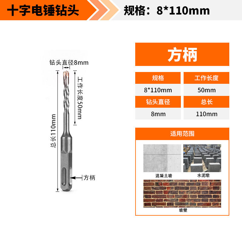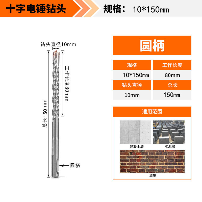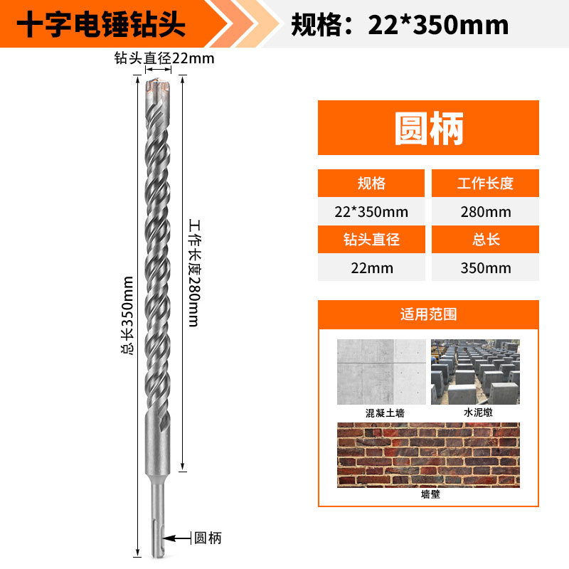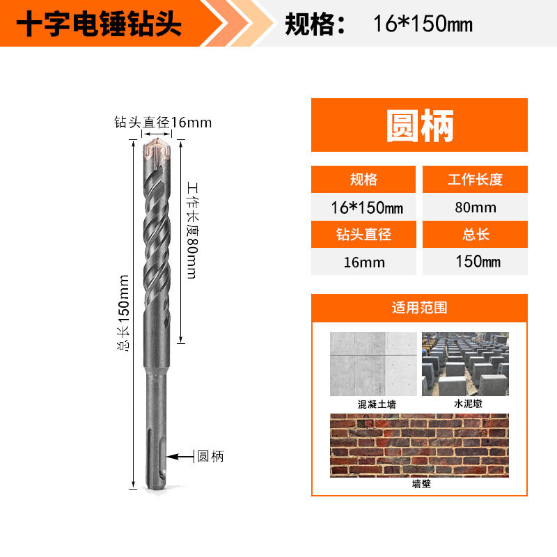 Крест-молот ударный сверло бетон пробивает отверстия Квадратная ручка через стену Круглая ручка через стену вращает сплав с длинным четырехлезвием