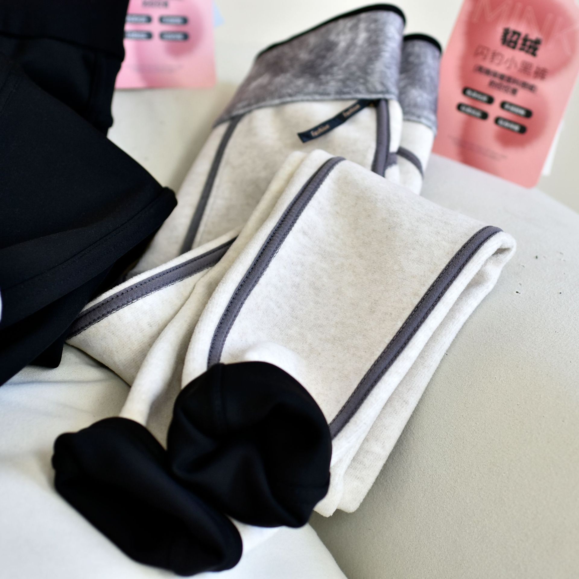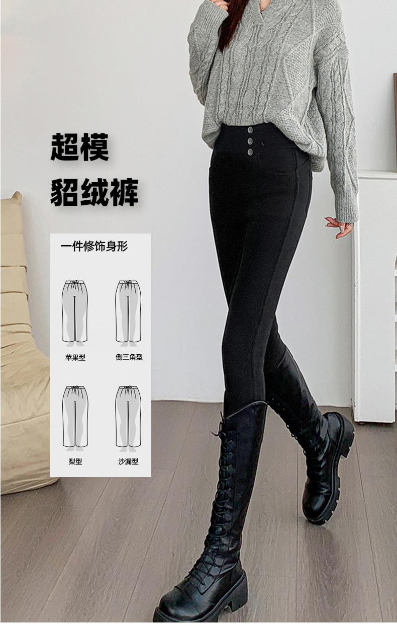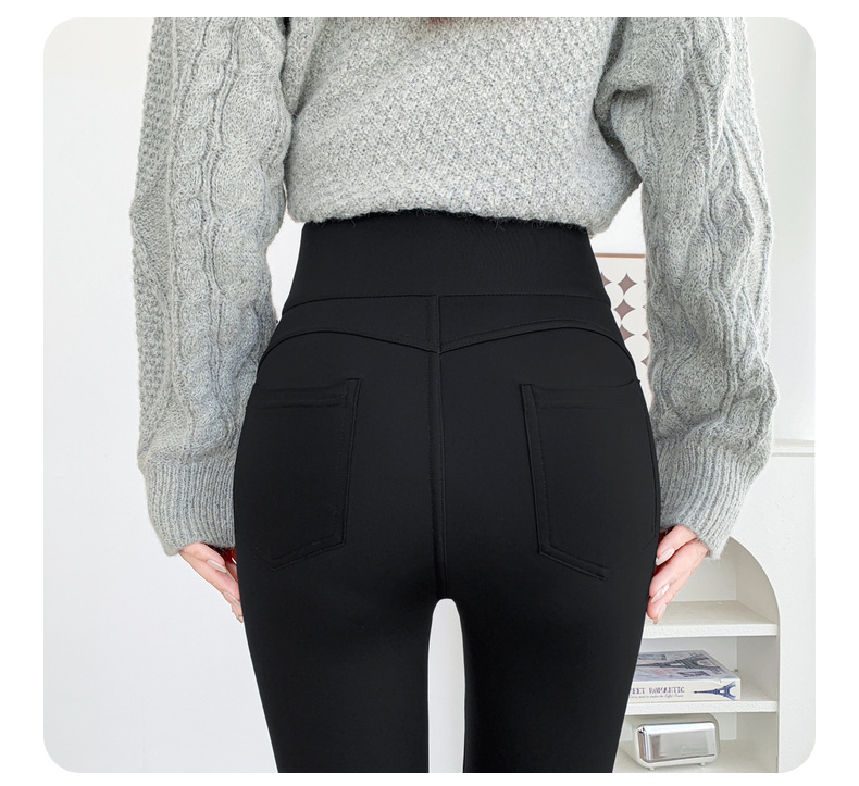 Черные брюки из норкового бархата с высокой талией для женщин, новые зимние облегающие брюки с высокой талией на флисовой подкладке, утолщенные черные брюки для контроля живота, верхняя одежда Барби
