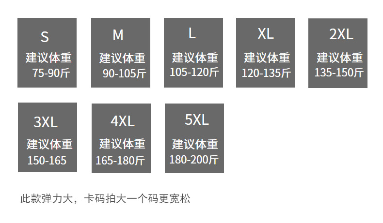 S(75-90); М( 45-52.5kg ); Л( 52.5-60kg ); XL( 60-67.5kg ); 2XL( 67.5-75kg ); 3XL( 75-82.5kg ); 4XL( 82.5-90kg ); 5XL( 90-100kg )