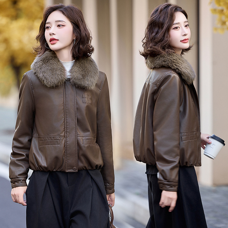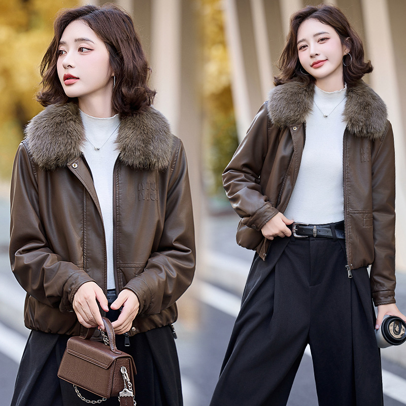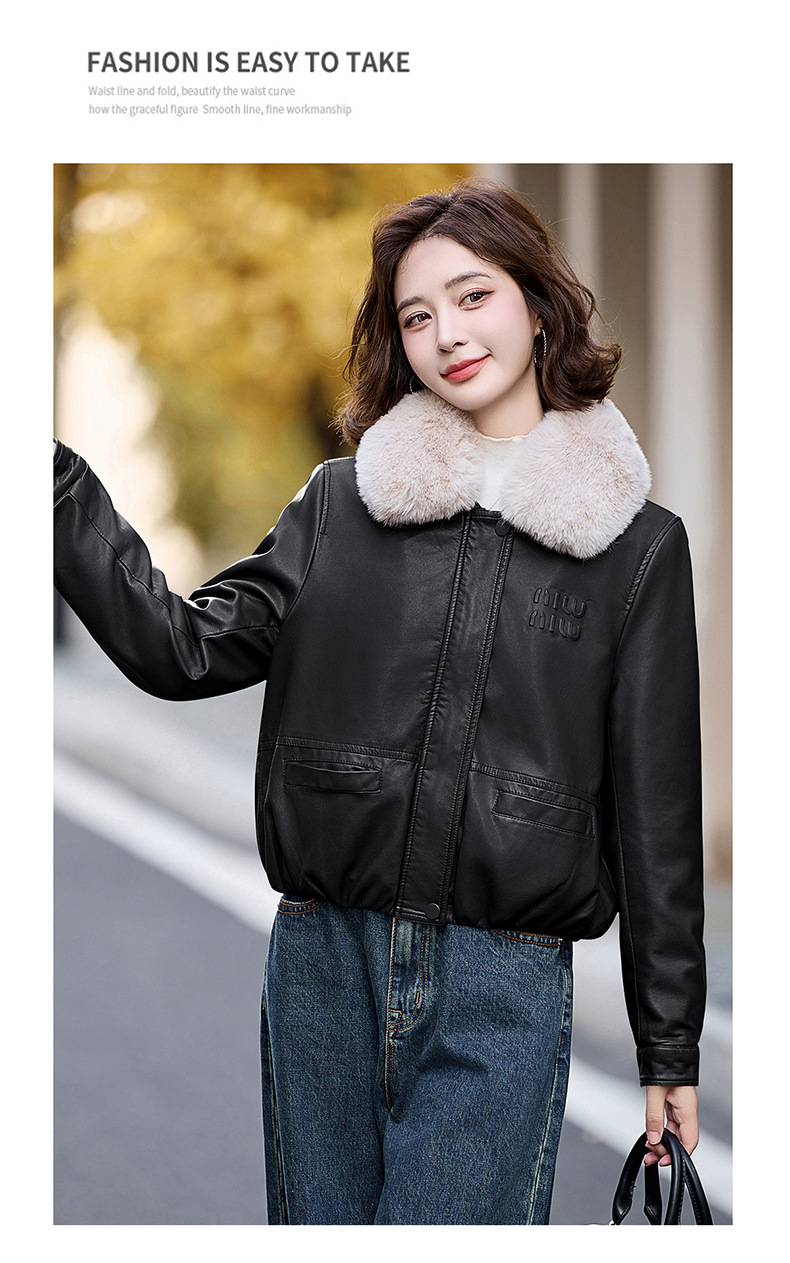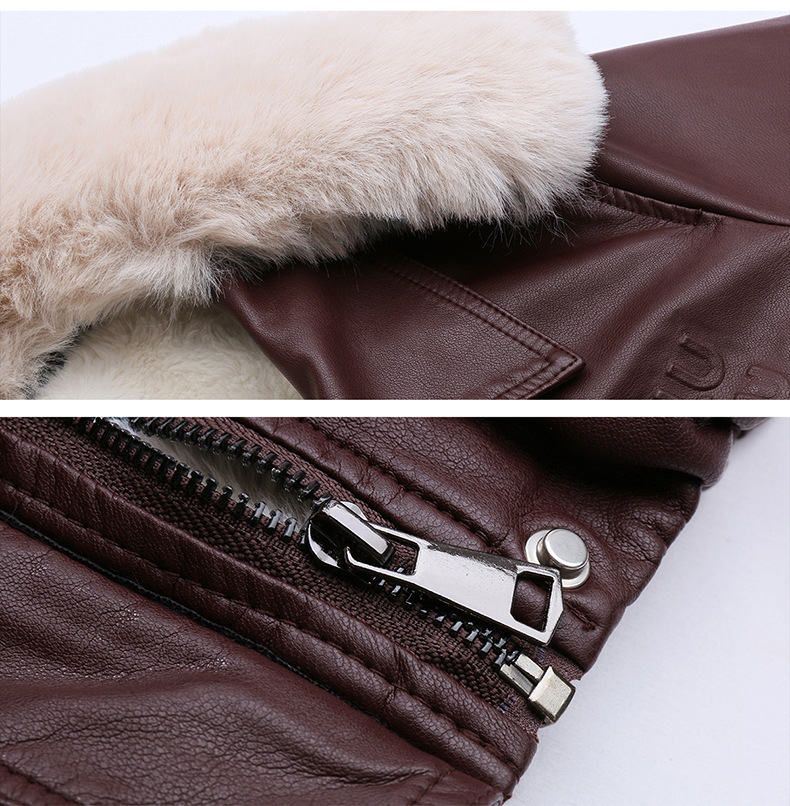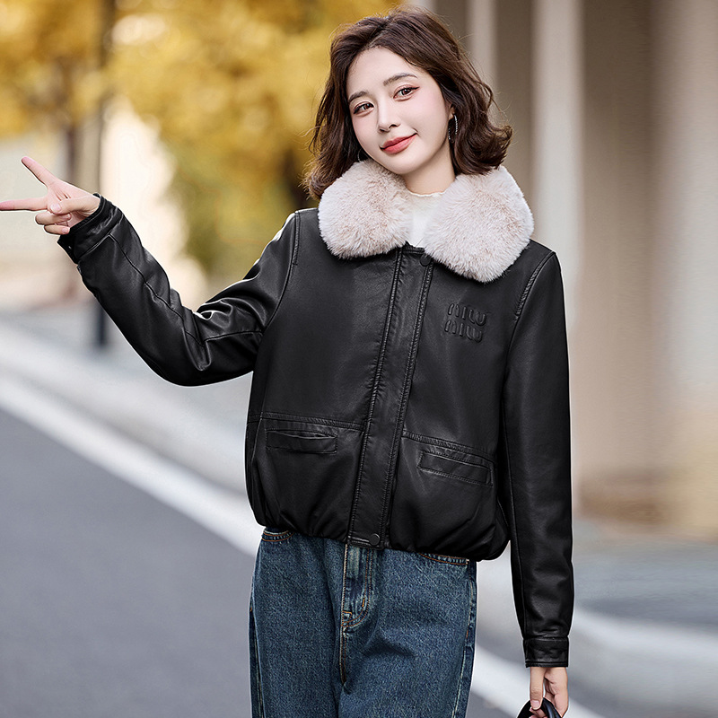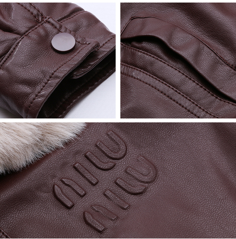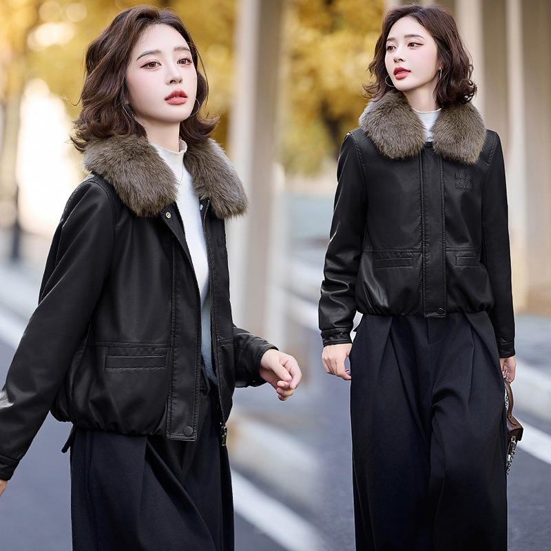 Зима 2024 новый спот высокого качества плюшевый воротник с меховой воротник теплая кожаная куртка с меховой воротник съемный