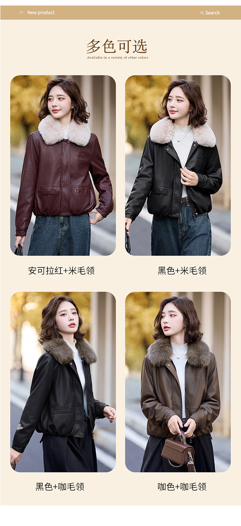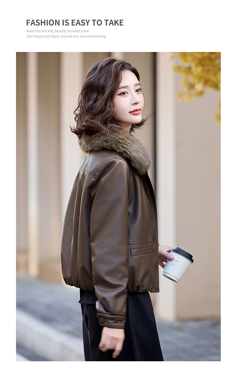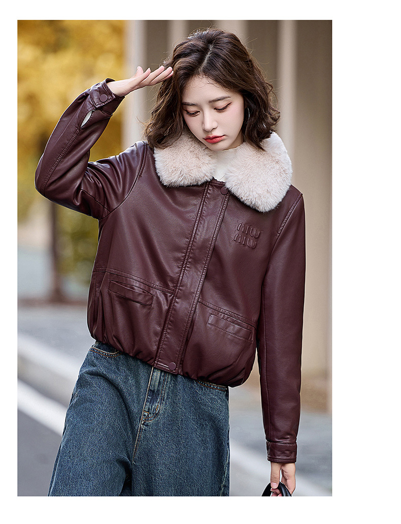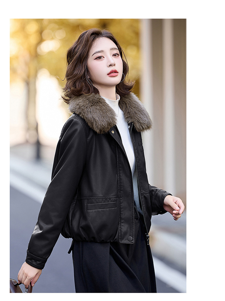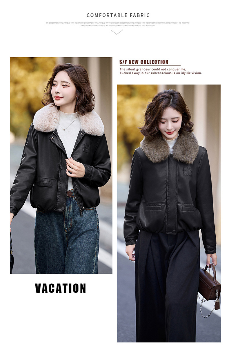 Зима 2024 новый спот высокого качества плюшевый воротник с меховой воротник теплая кожаная куртка с меховой воротник съемный