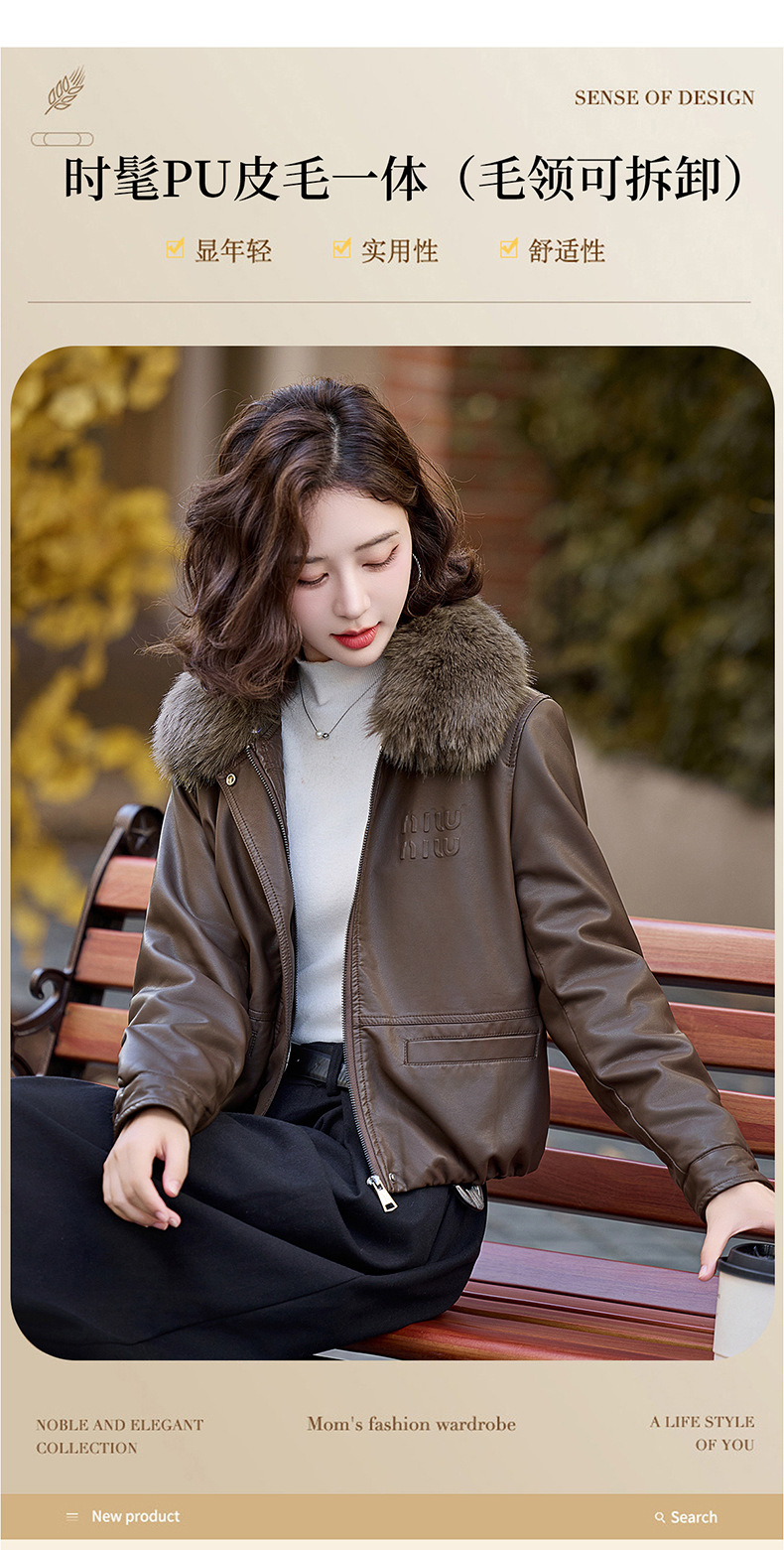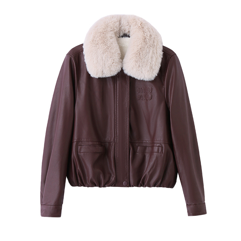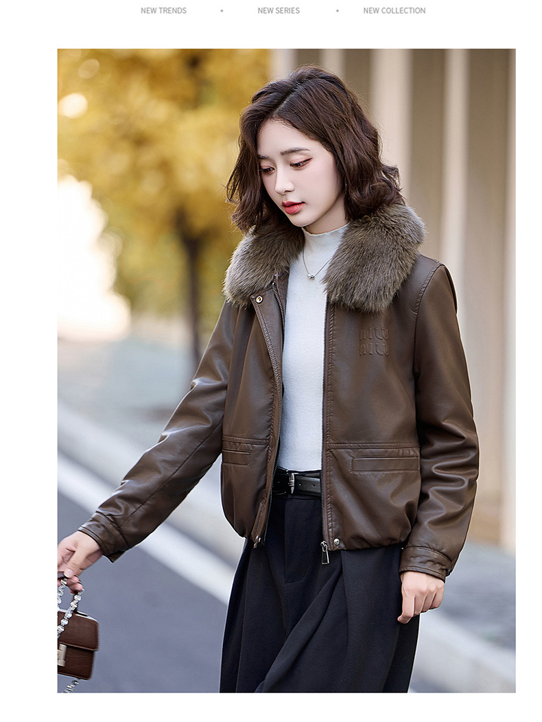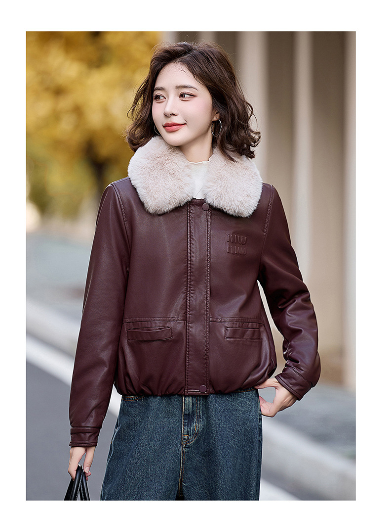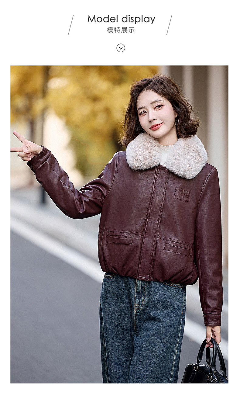 Зима 2024 новый спот высокого качества плюшевый воротник с меховой воротник теплая кожаная куртка с меховой воротник съемный