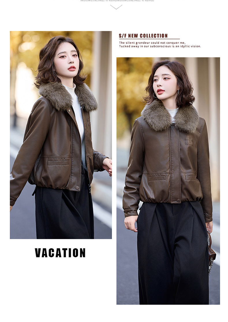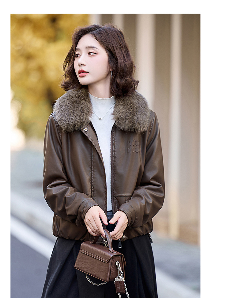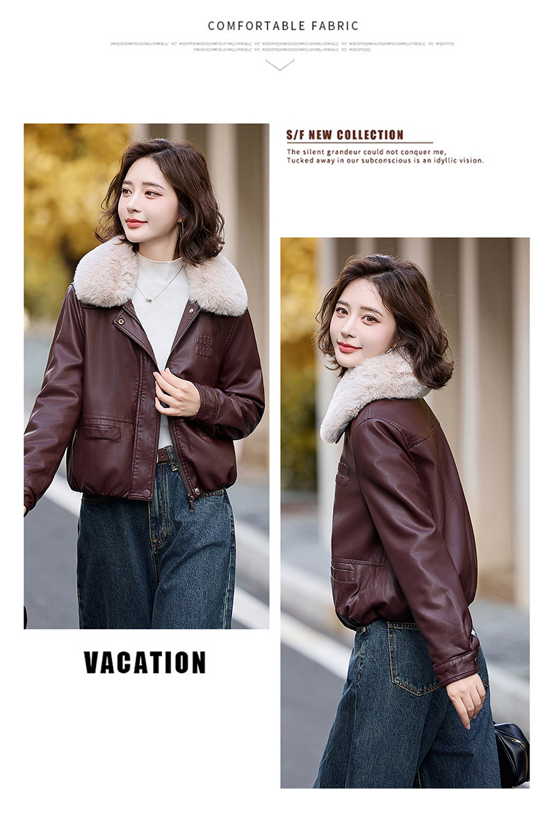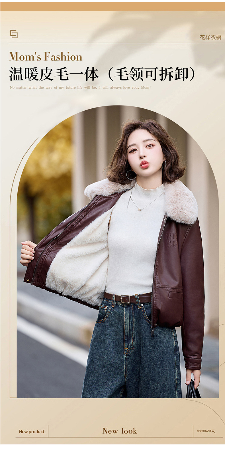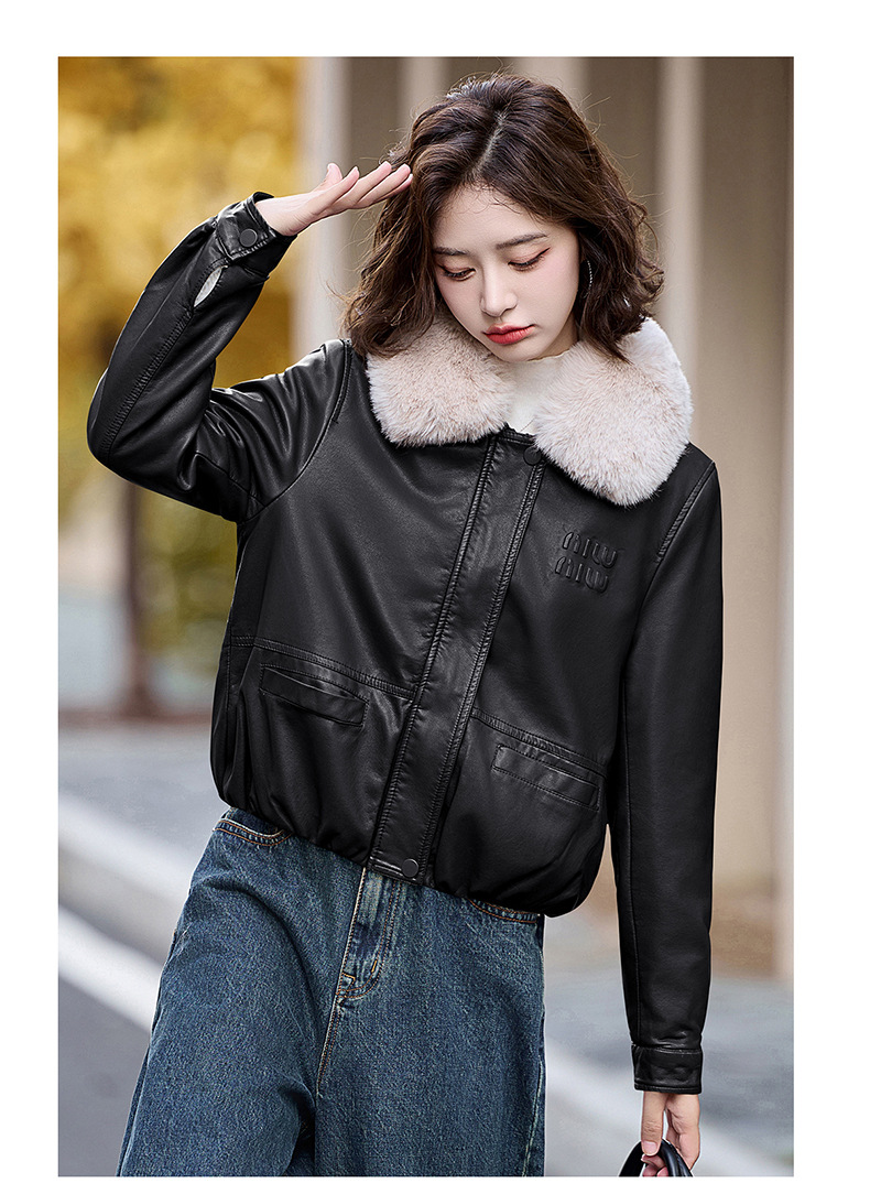 Зима 2024 новый спот высокого качества плюшевый воротник с меховой воротник теплая кожаная куртка с меховой воротник съемный