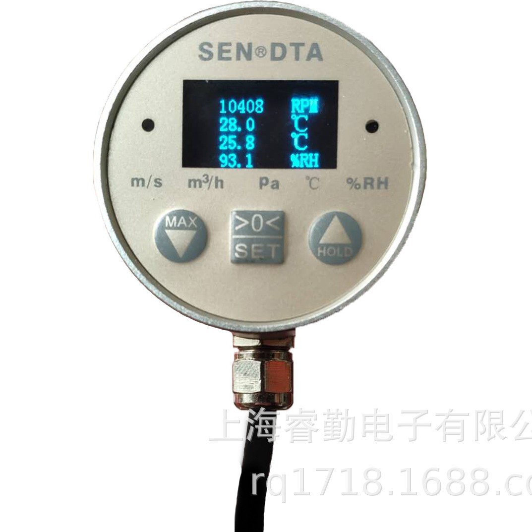 超高速高精度在线式专业测量转速温湿度控制分析仪非接触通过激光反射测得转体的转速,同时通外红外非接触测得转体温度,同时测量环境温湿度激光反射测转速可以远距离测得小目标转体,可以在7米内测量转速同步测得转体温度和环境温湿度,对高速转体的材料及结构综合分析具有专业研究的意义通过测得转速同步触发频闪灯,闪灯可以是内置也可以是外置,一体化测头自带修正功能 变送输出,数字输出及控制输出,还可以人工输入相应转速触发频闪灯.四行显示器显示转速,温度(温差),湿度及计算显示露点, 线速度, 长度等,定制想要显示的内容探头具有控制输出和模拟输出及数字输出,可插入4G移动卡实现数据同步上云探头技术参数