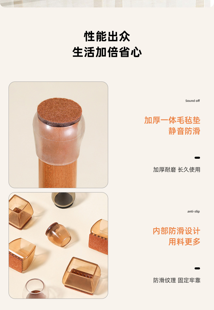Бесшумные высокопрозрачные чехлы для ножек стола и стула, нескользящие защитные чехлы для стульев, ножки стола, фетровые бесшумные подушечки для ног стула