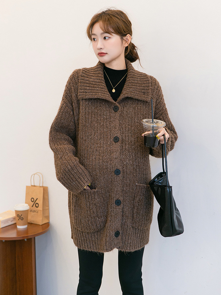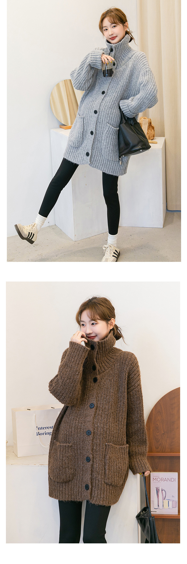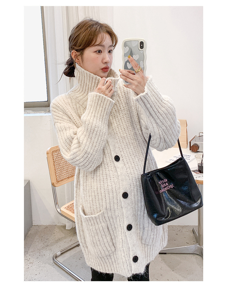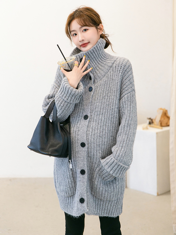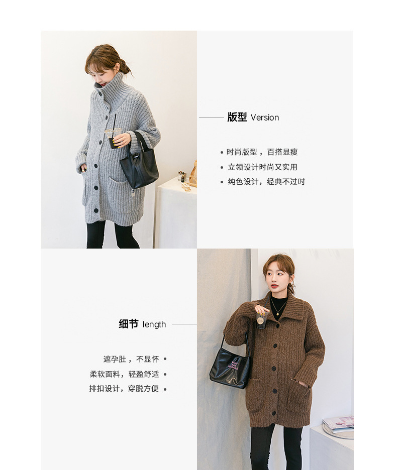 Осенняя и зимняя одежда для беременных Корейская версия кардиган с высоким воротником для беременных куртка свободная средняя длинная повседневная трикотажная топ