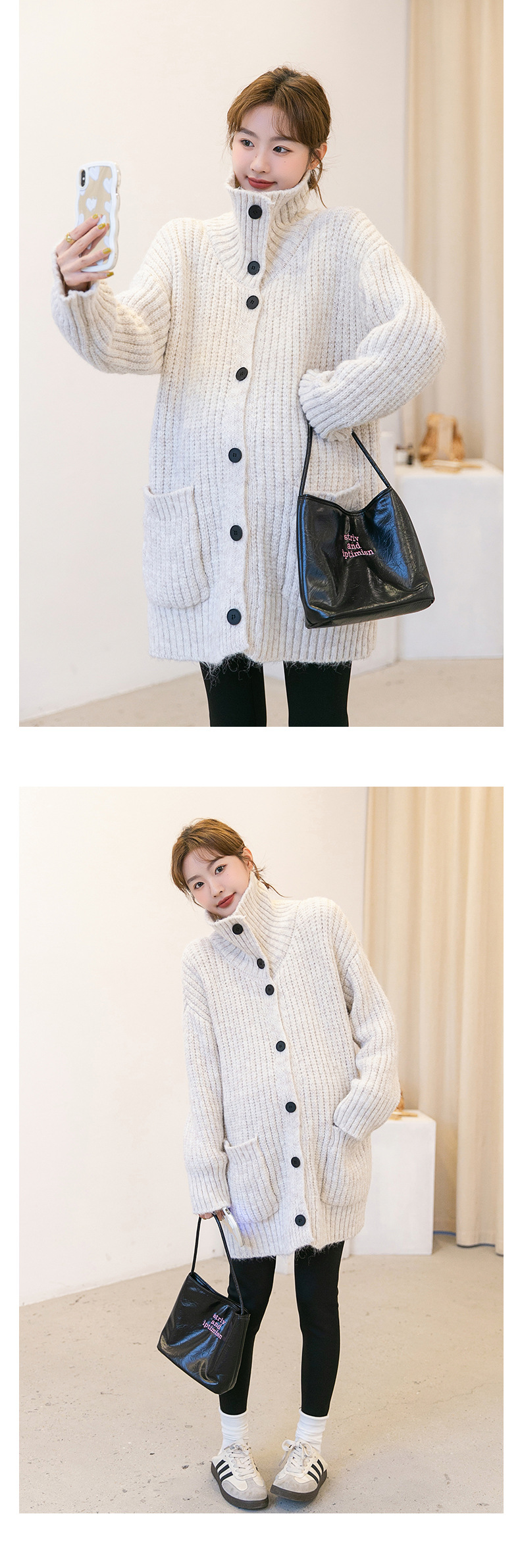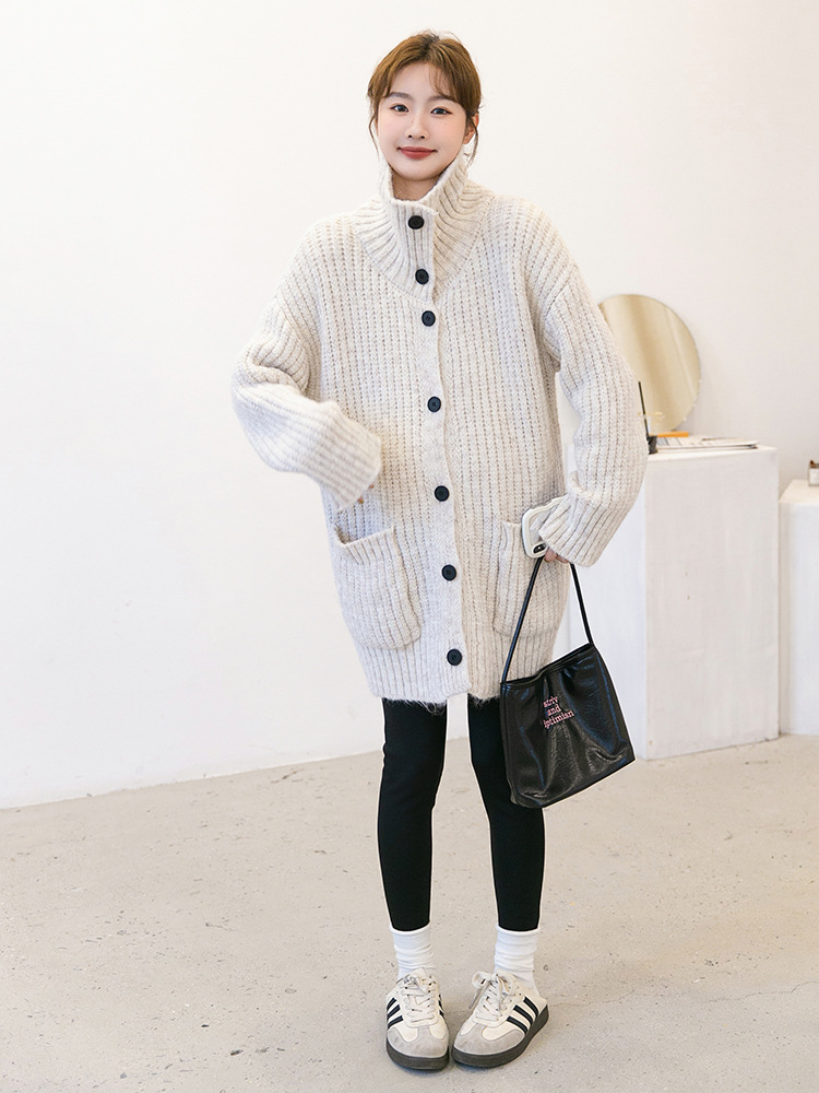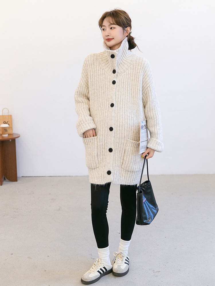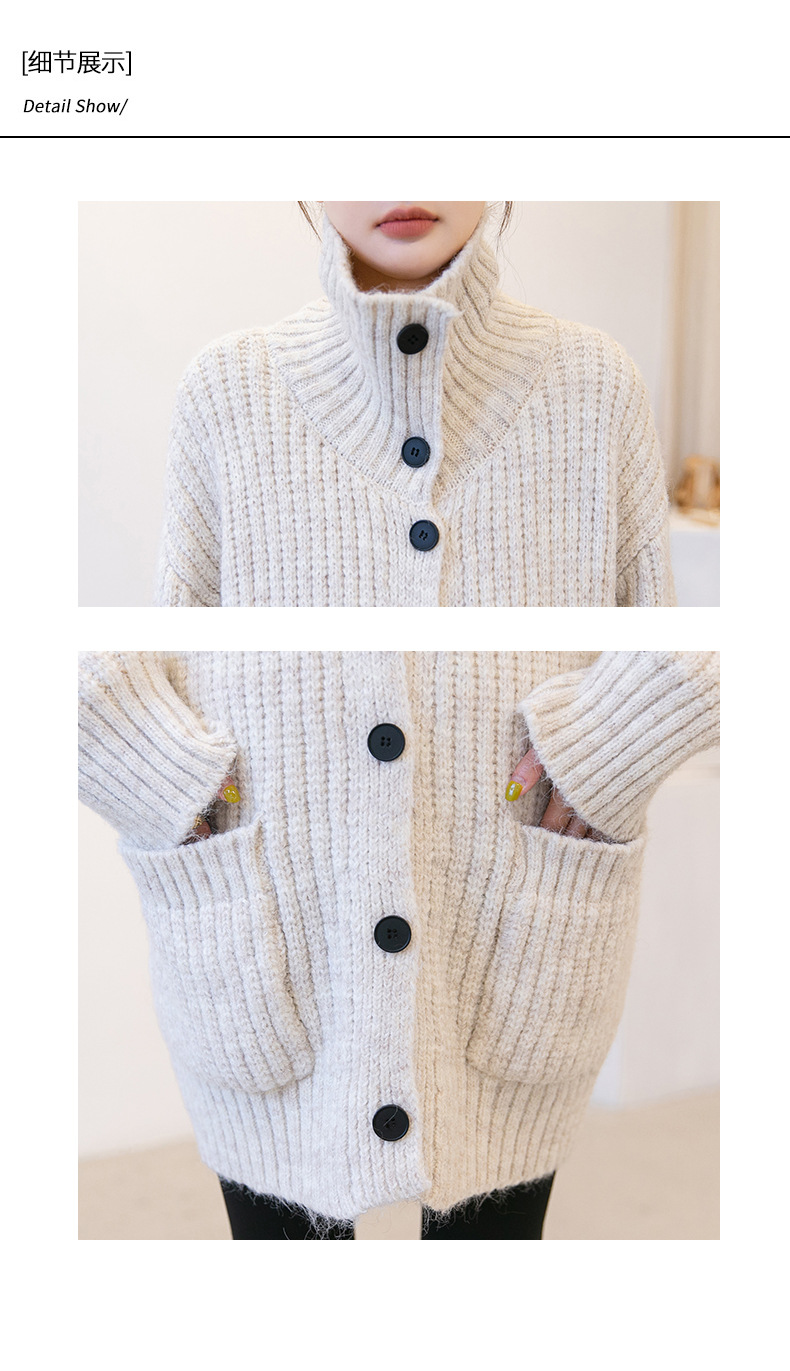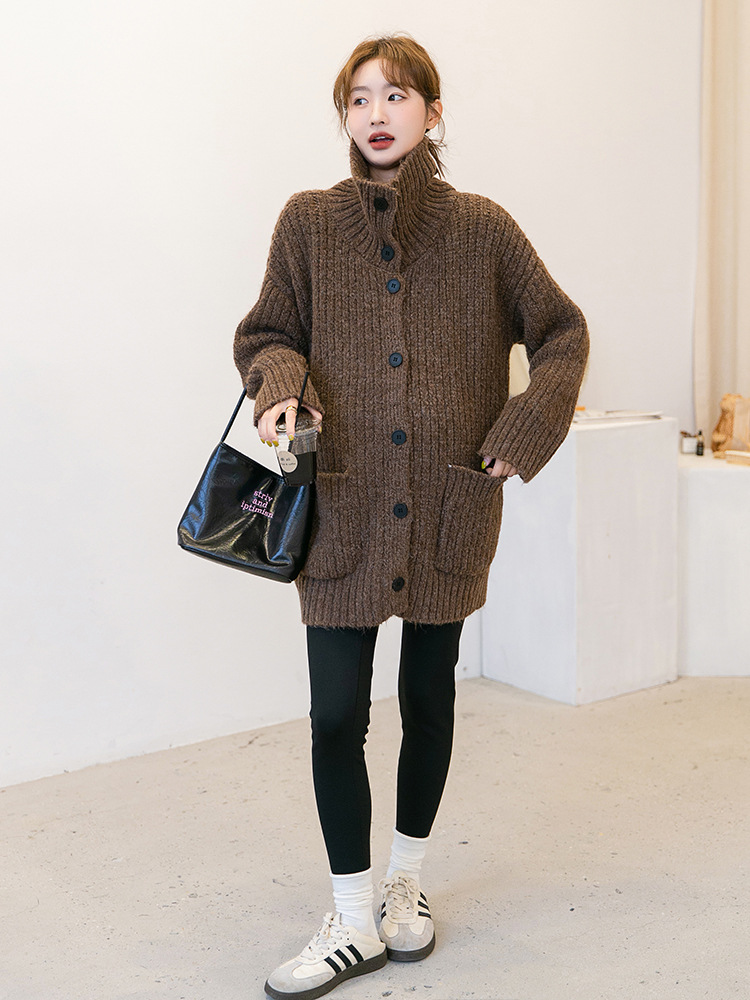 Осенняя и зимняя одежда для беременных Корейская версия кардиган с высоким воротником для беременных куртка свободная средняя длинная повседневная трикотажная топ