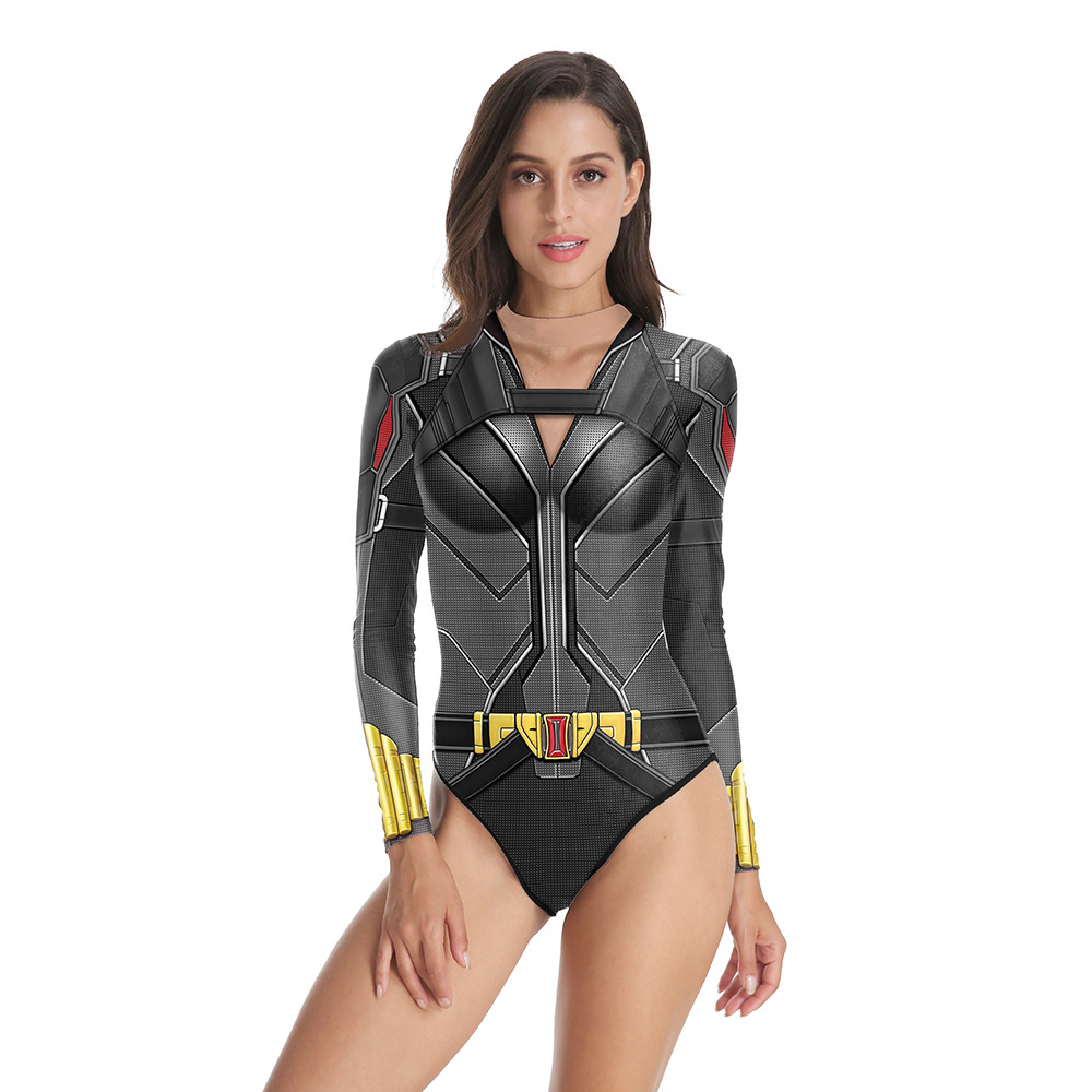 Европейская и американская летняя женская цельный солнцезащитный купальник с длинным рукавом 3D Пляжный купальник с принтом