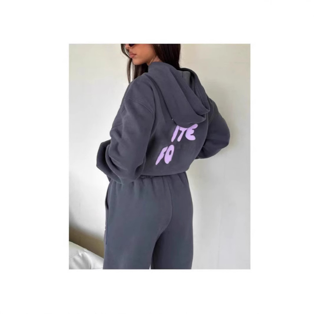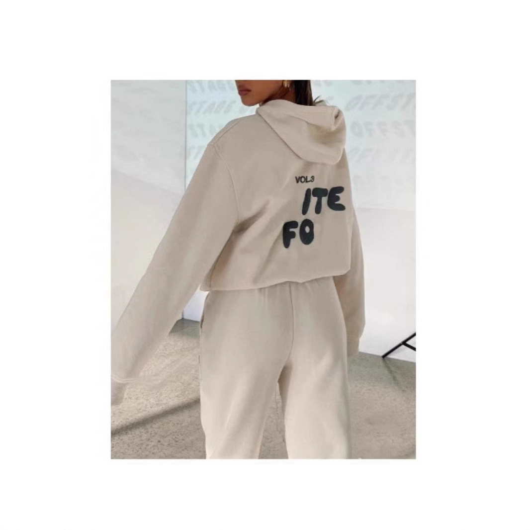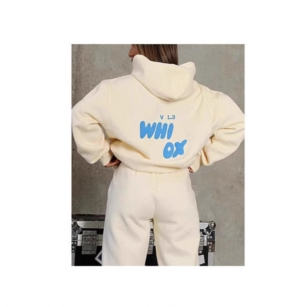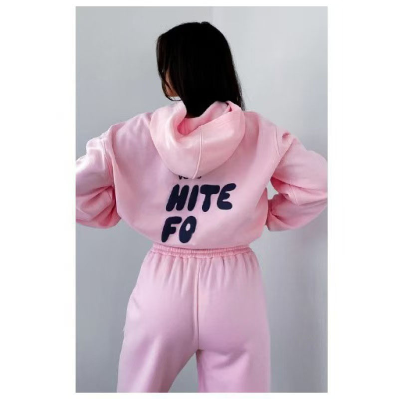 Новинка 2024: женский спортивный костюм (толстовка с капюшоном и брюки) из флиса с логотипом в европейско-американском стиле, повседневный