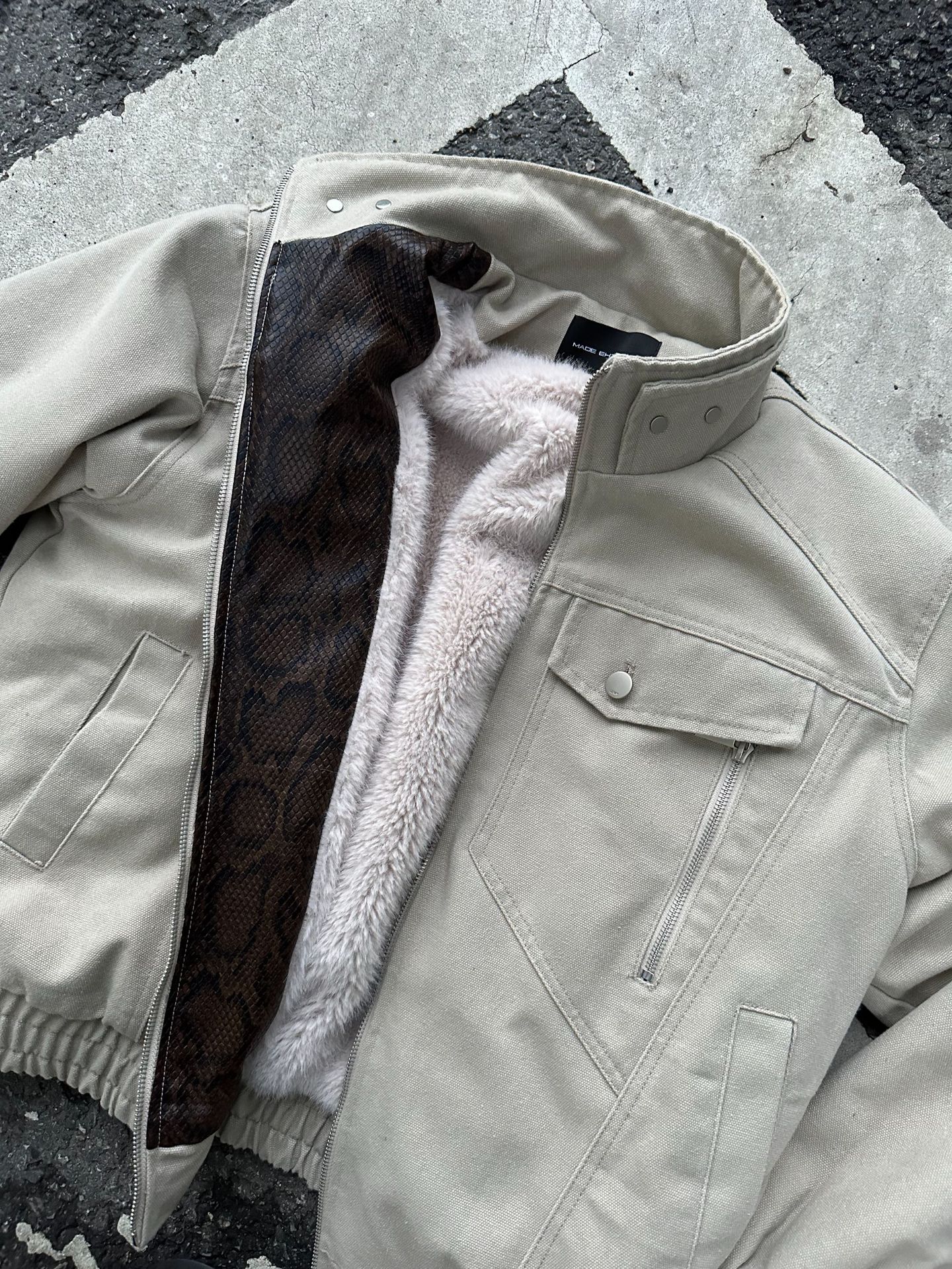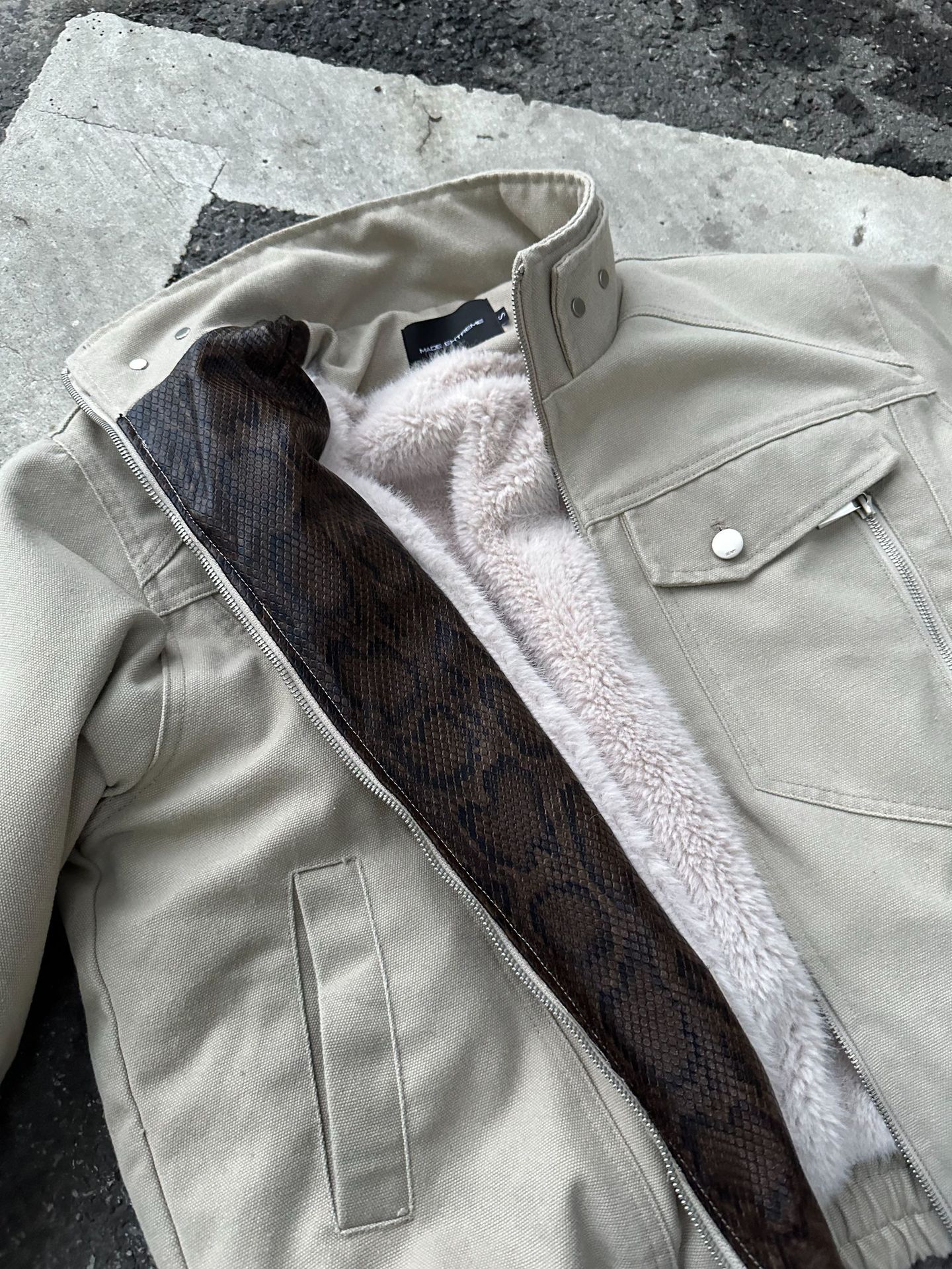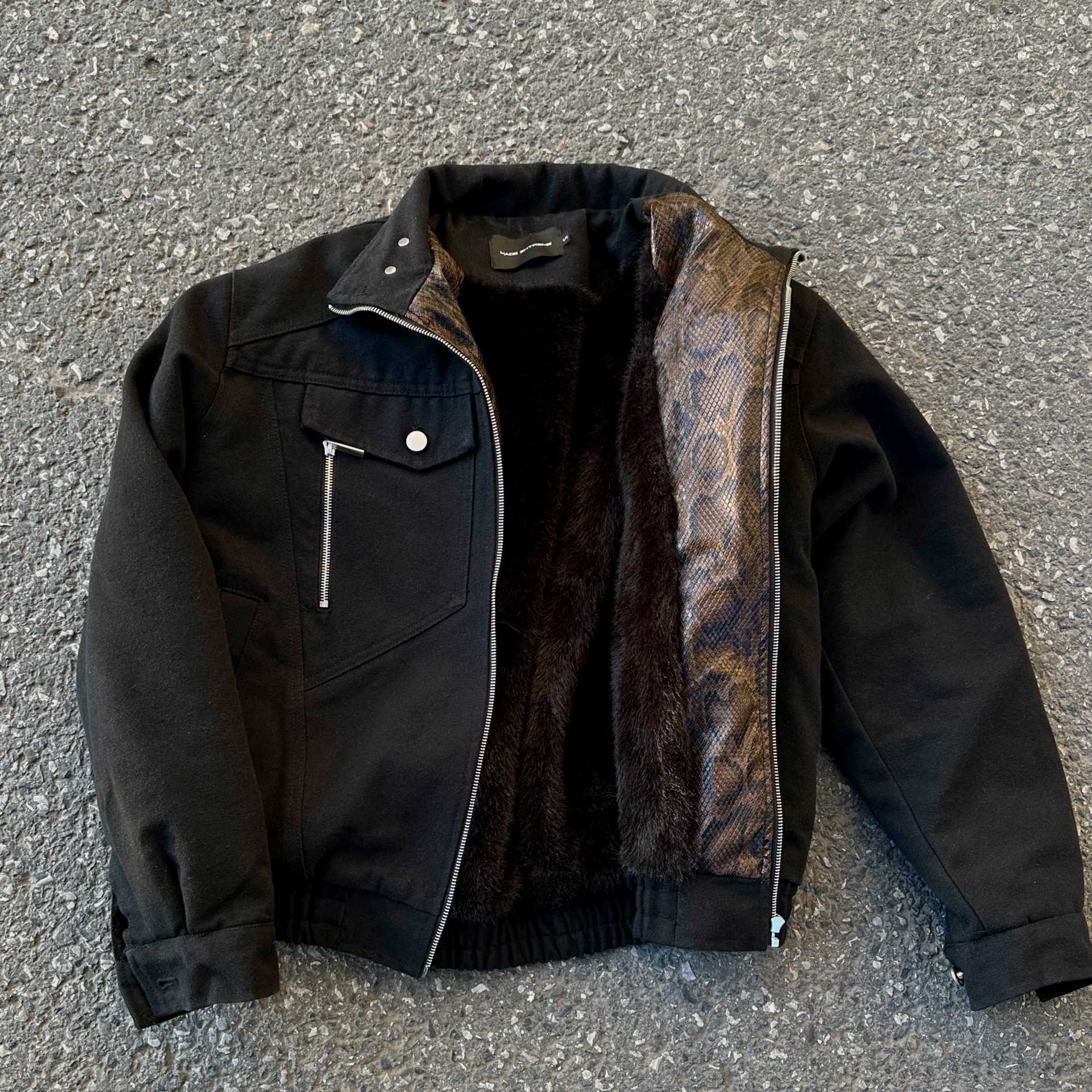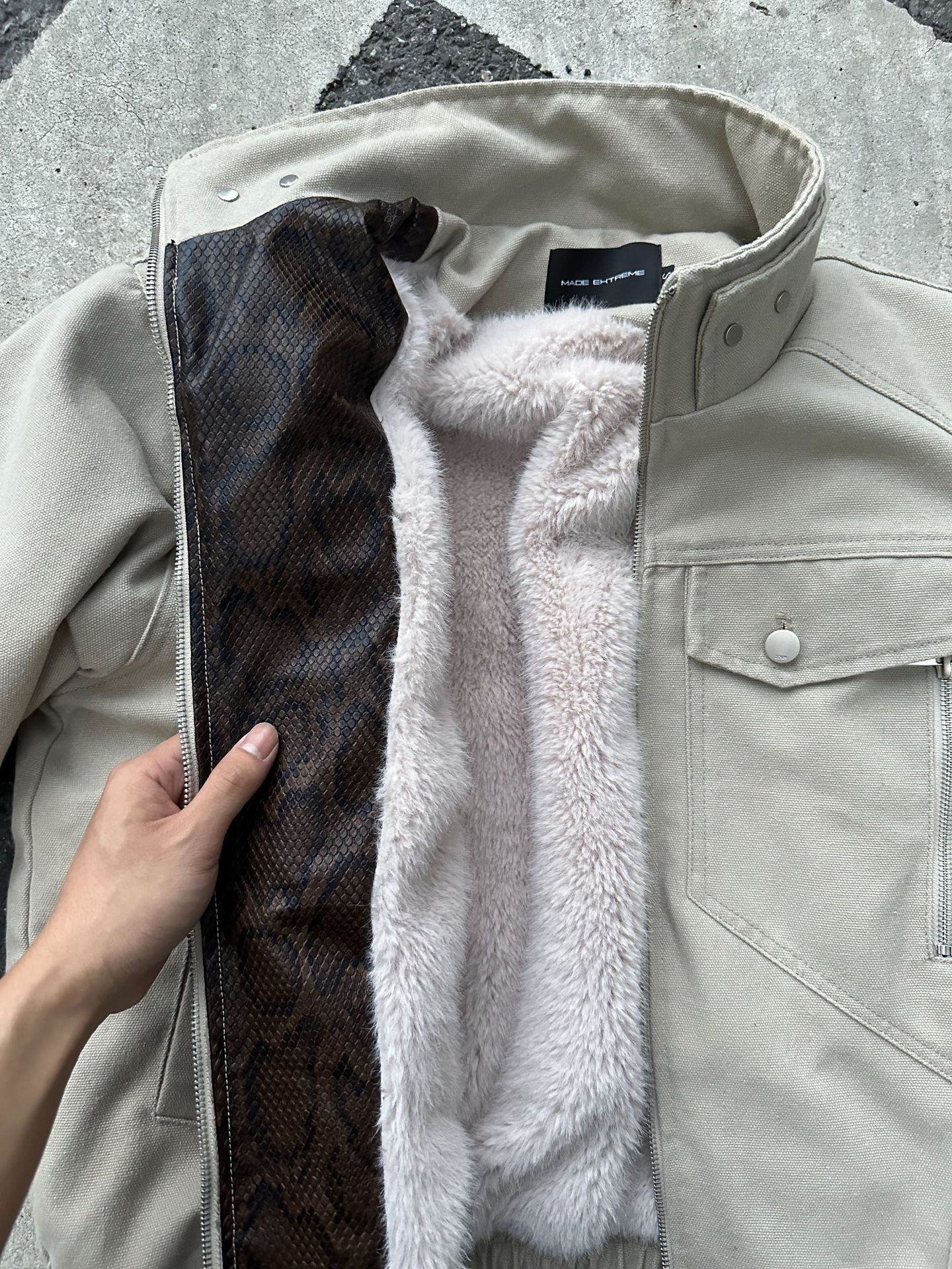 MADEEXTREME Армейская ткань Mountain Python Волосатый Воротник Сшитый осенью и зимой Плюшевый Толстый Теплый Свободный Куртка Куртка Мужской