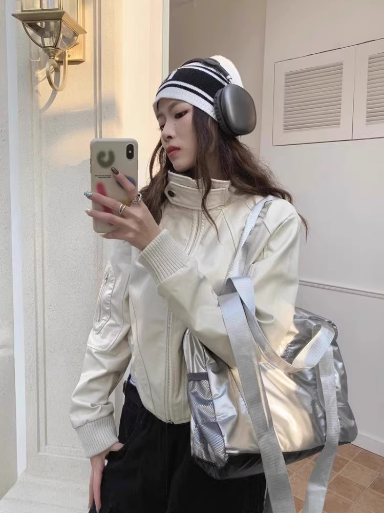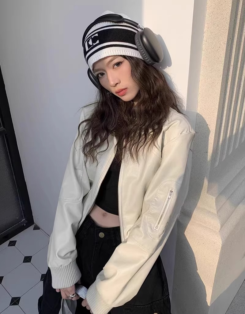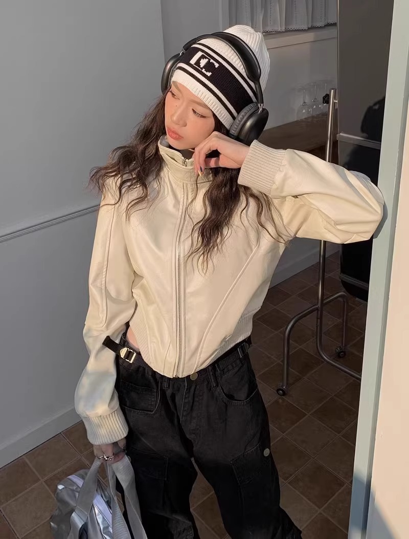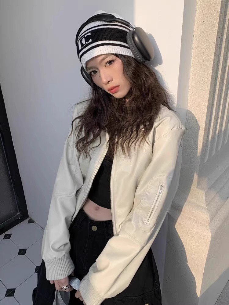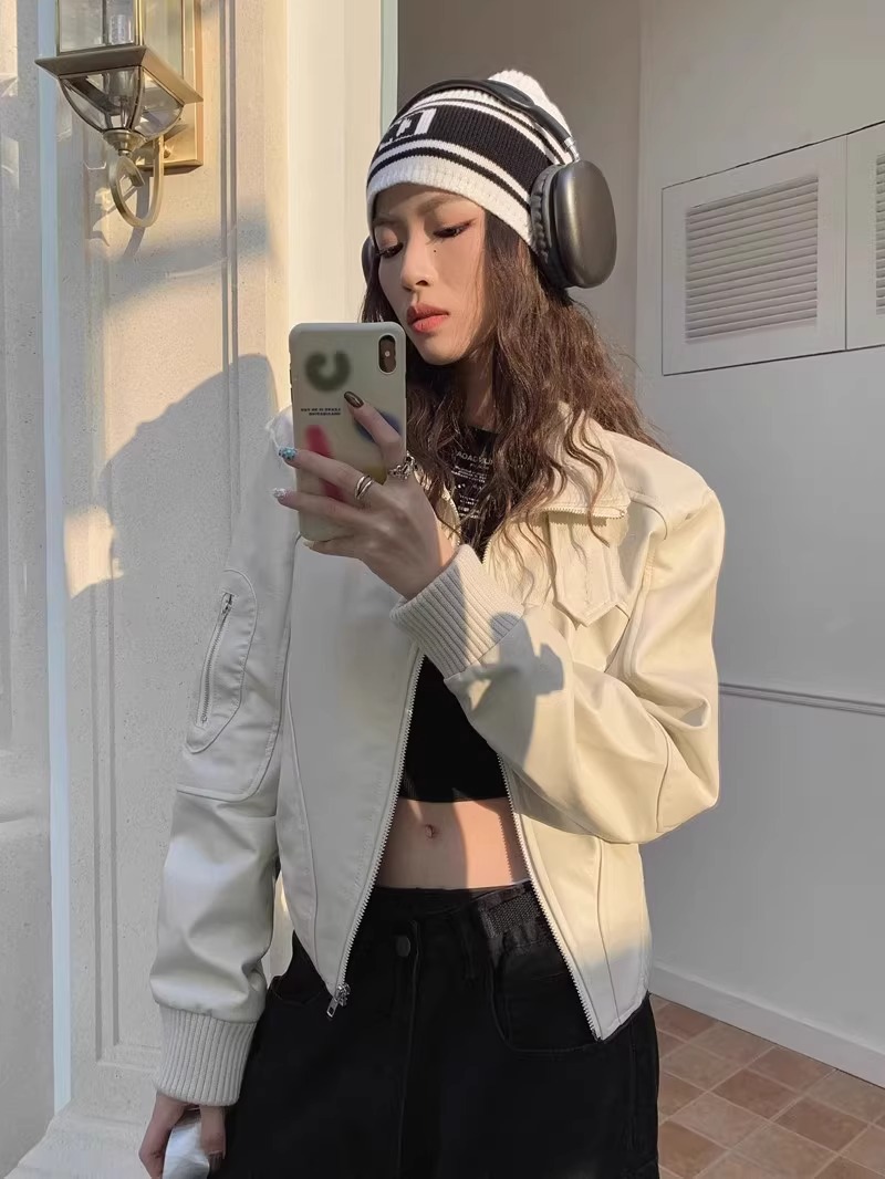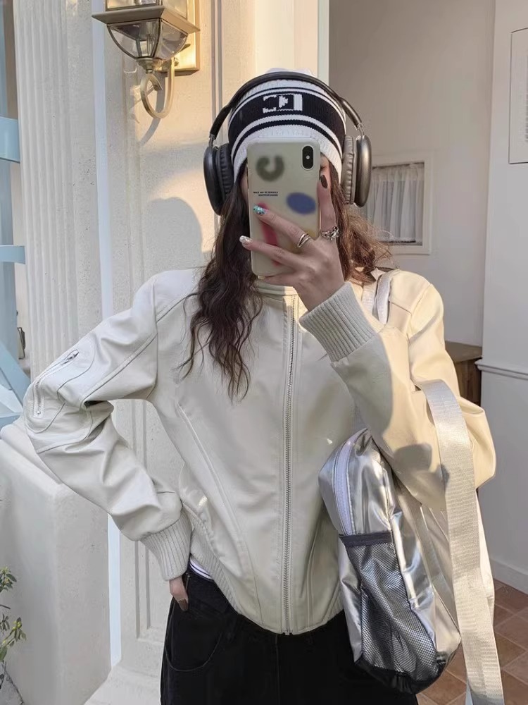 Американский ретро 2025 новая короткая куртка женская осень свободная дикая кожаная одежда дизайн нишевые мотоциклетные кожаные куртки