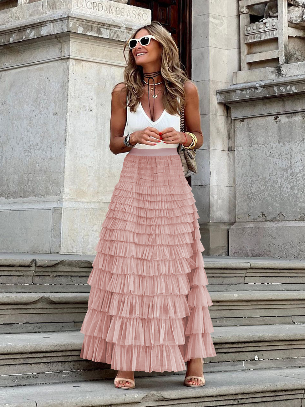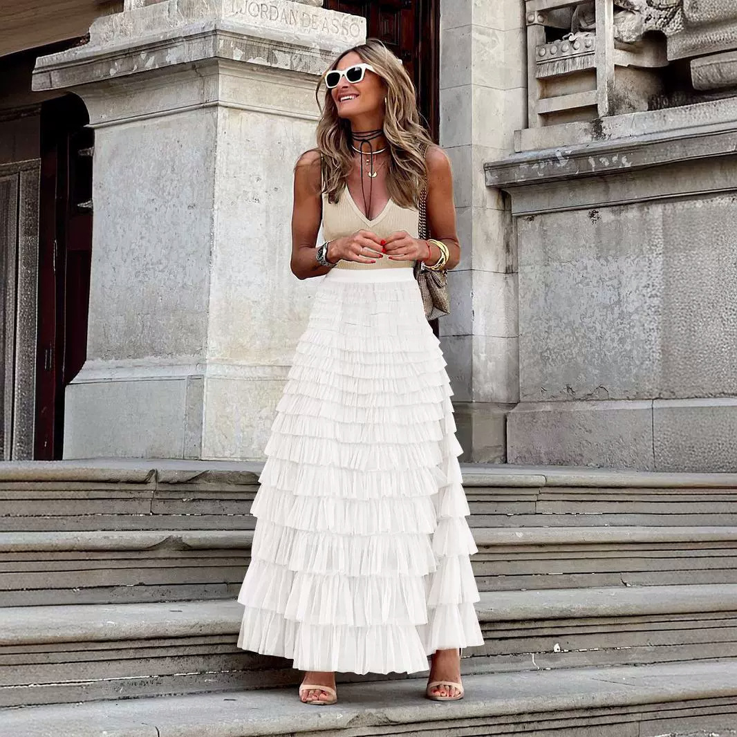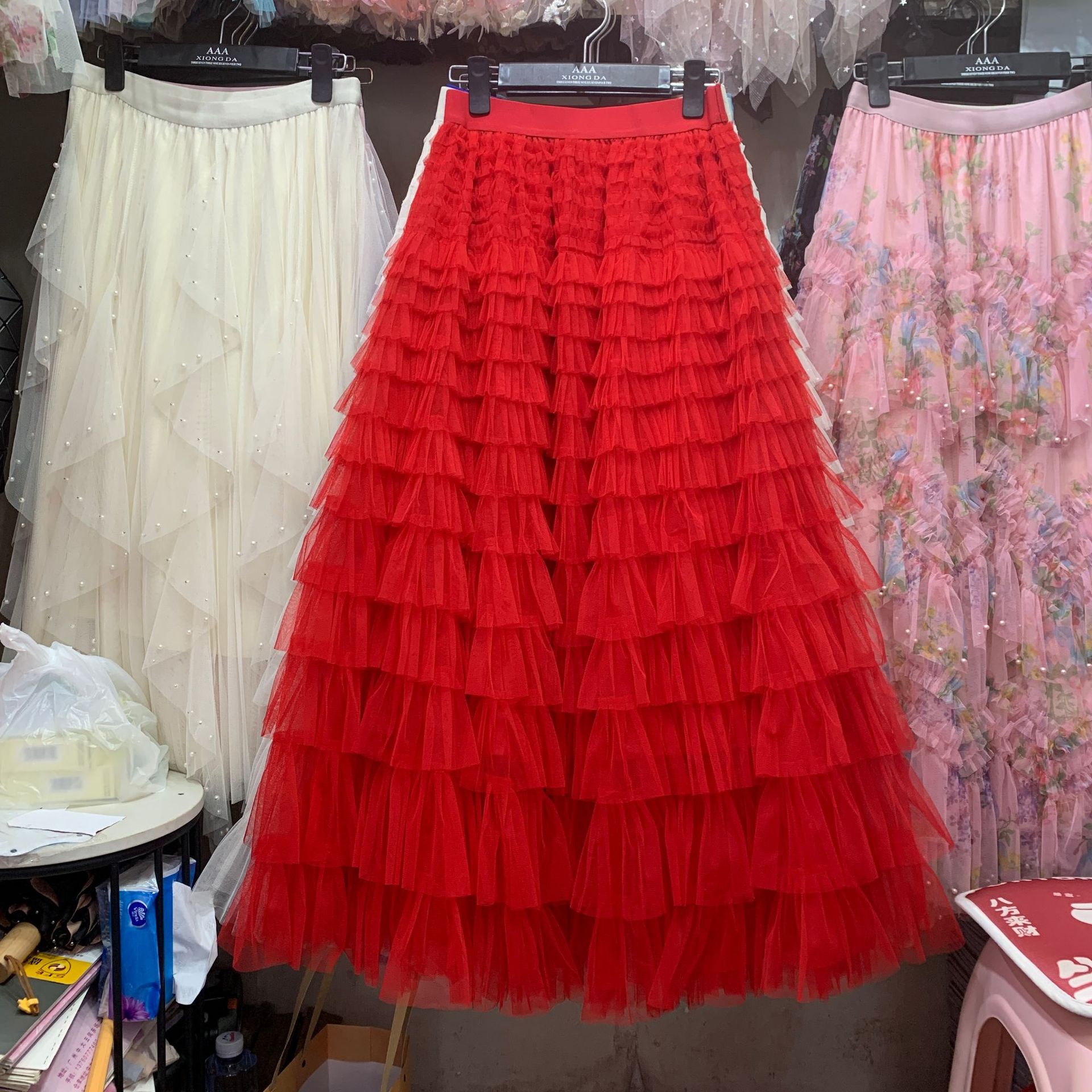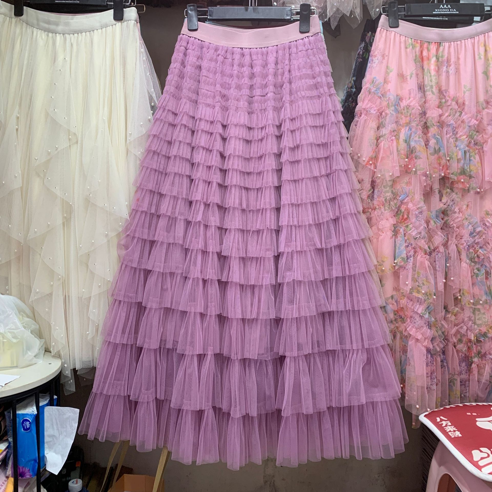 Трансграничная новая французская длинная юбка женская осень европейский и американский темперамент элегантный сплошной цвет с высокой талией