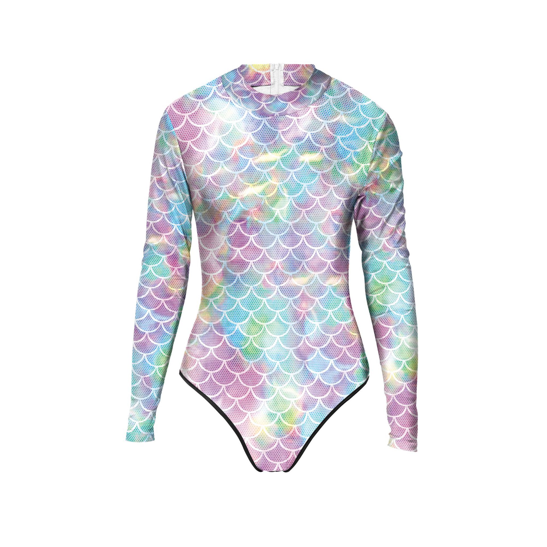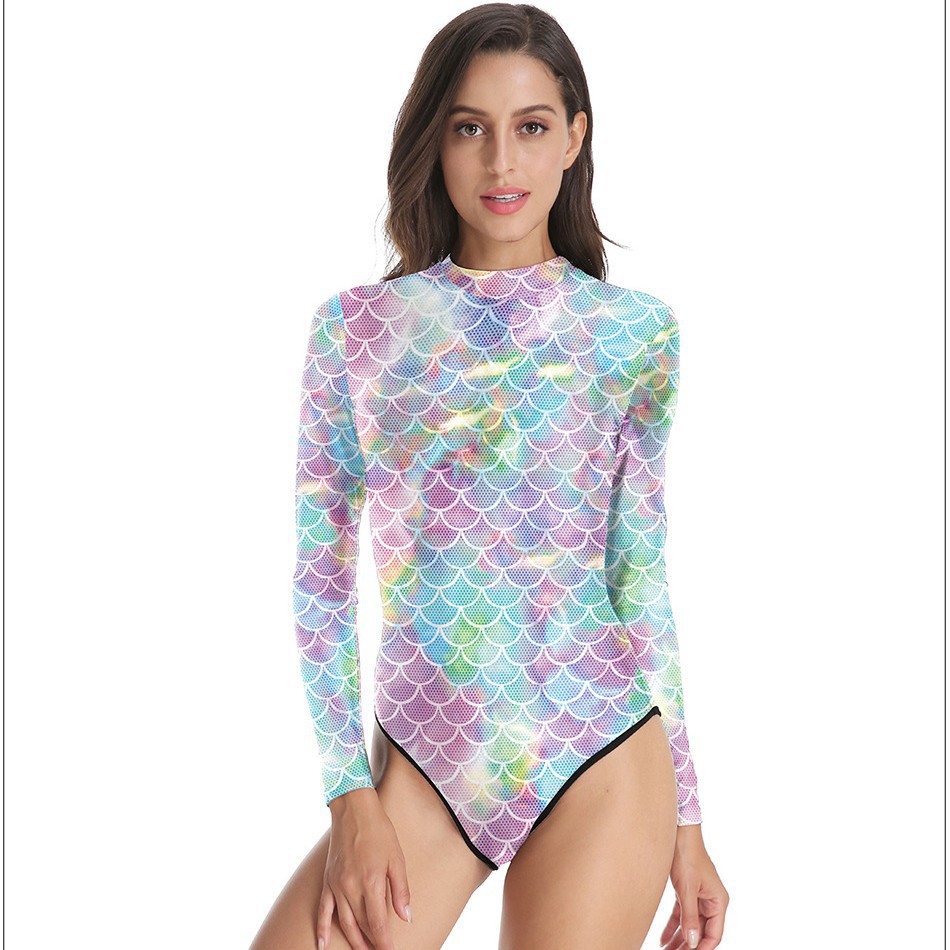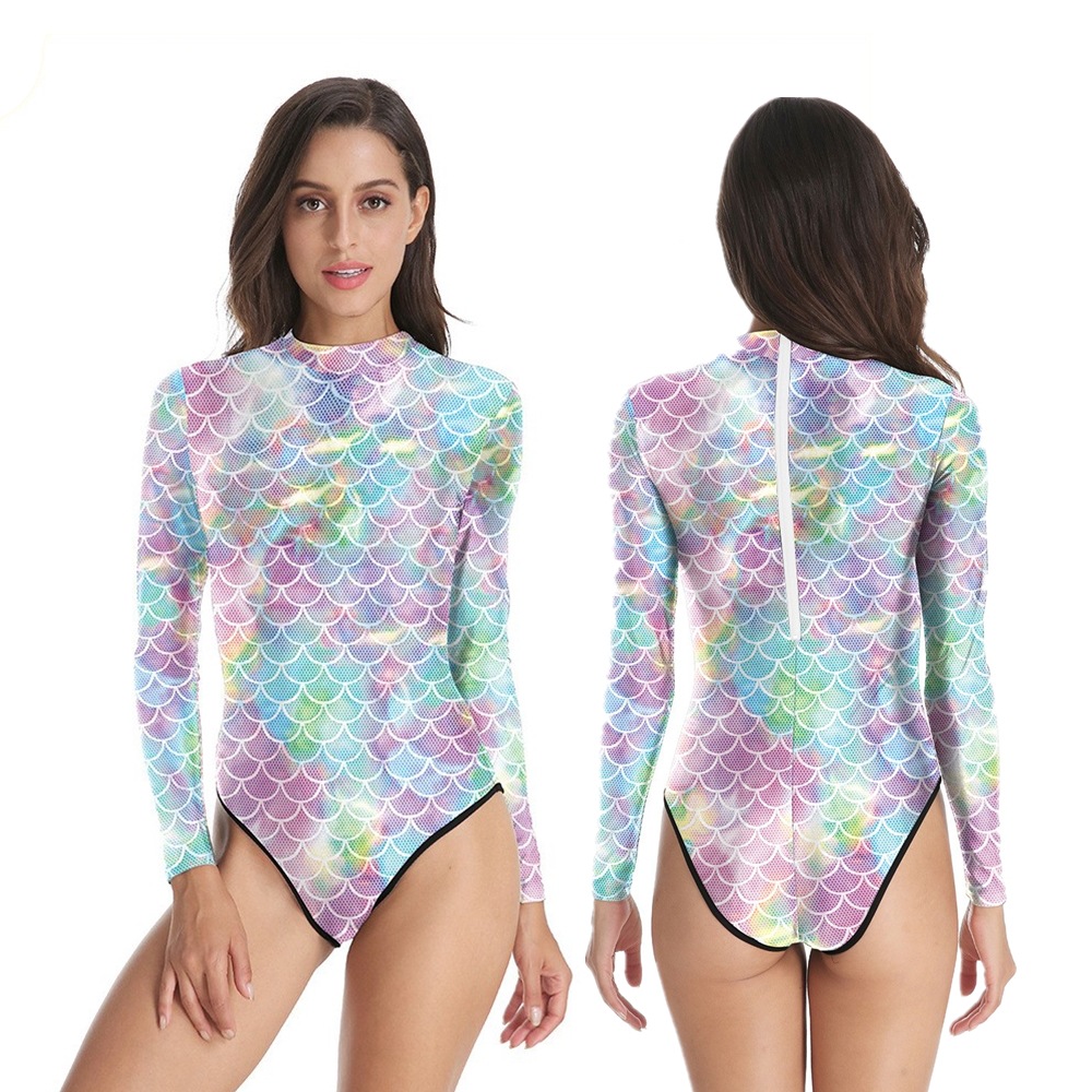 Amazon Ladies Горячая распродажа Летние новые европейские и американские рыбьи чешуи с цифровым принтом русалки спортивный купальник с длинными рукавами