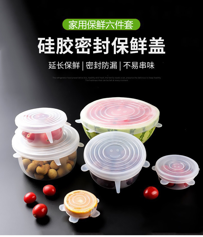 Пищевая силиконовая крышка для хранения свежести, набор из шести предметов, силиконовая крышка для хранения свежести, универсальная миска, силиконовая крышка, универсальная крышка, трансграничная поставка