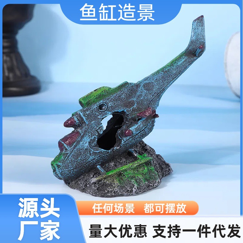 Аквариум ландшафтное подводное крушение вертолета смолы украшения аквариума