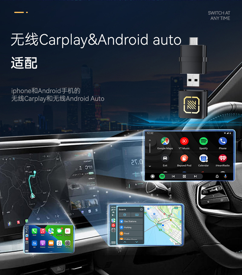 Q1T двухразъемный беспроводной Carplay плюс Android Auto 2-в-1 подходит только для зарубежных систем