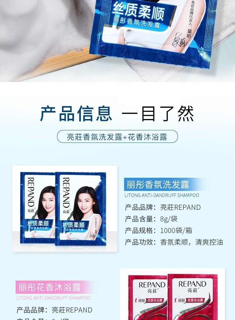 Шампунь Liangsong 8г в мешке; Гель для душа Liangsong 8г в пакете; Кондиционер в пакете Liangsong 8г